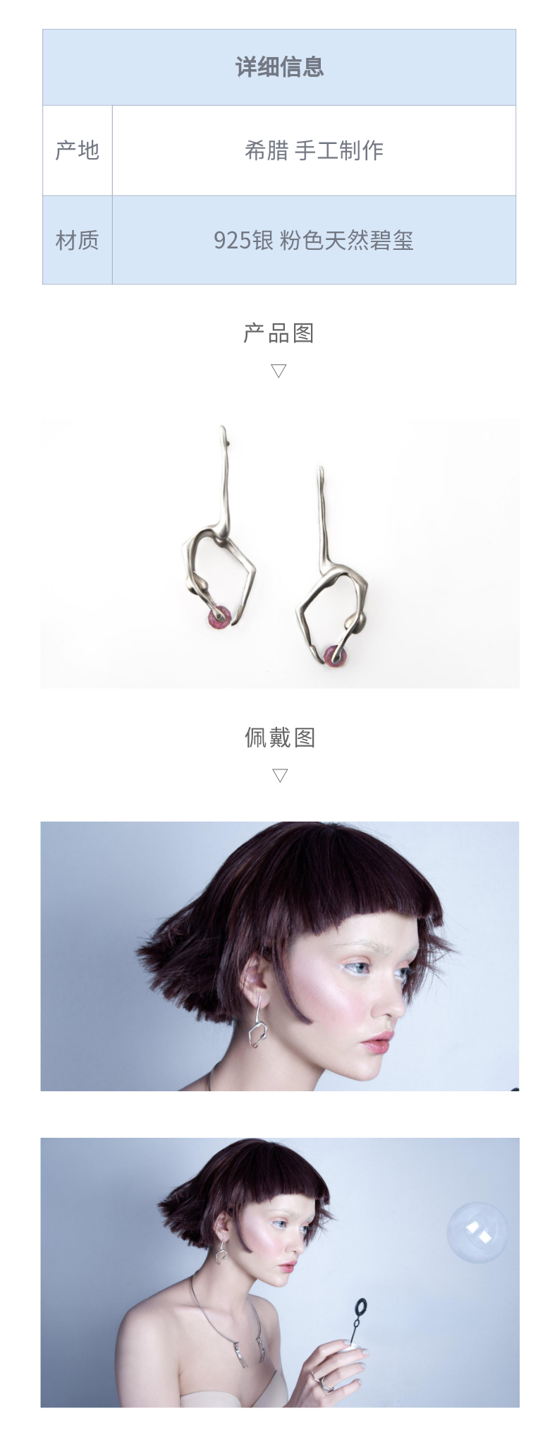 北京仓|Ariadni Kypri-Valerie-粉色碧玺 耳环[希腊设计师]