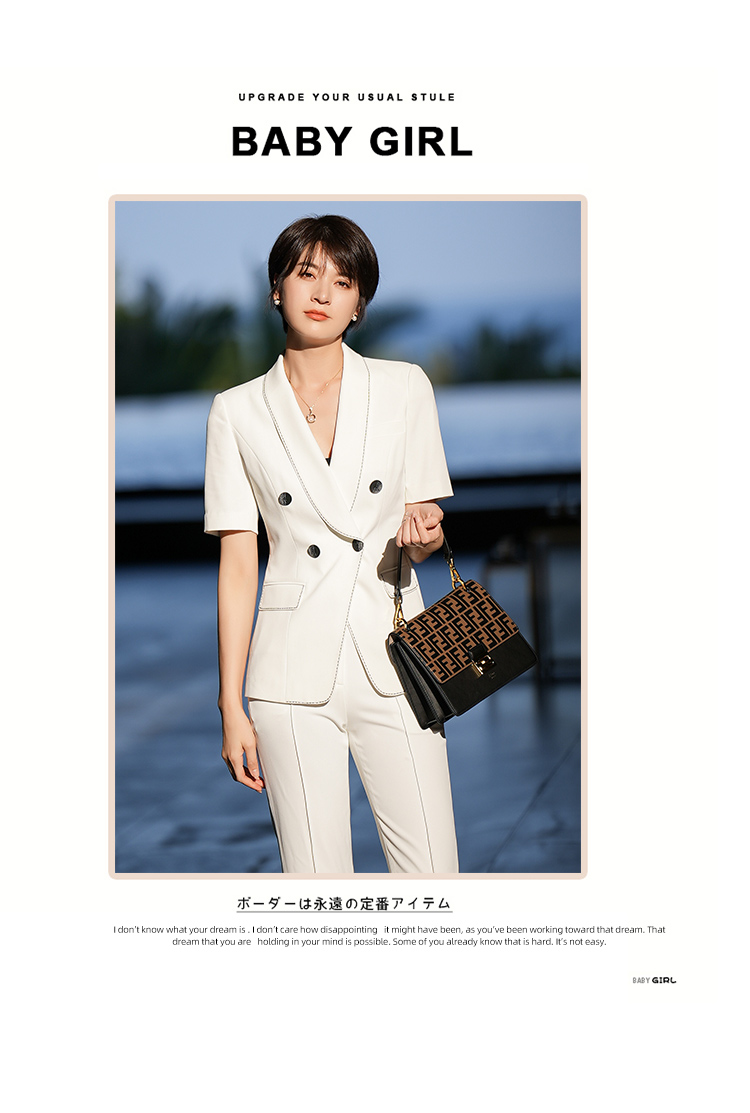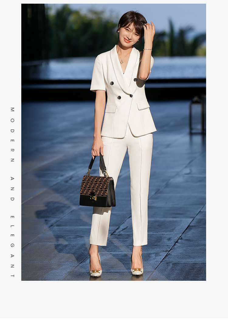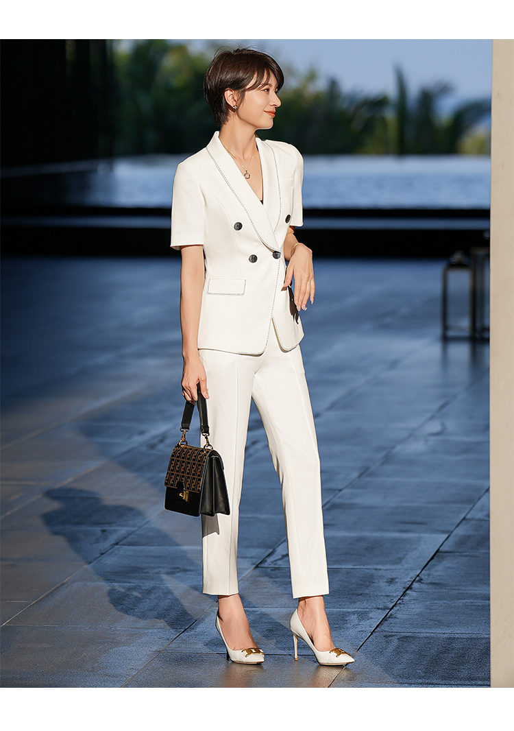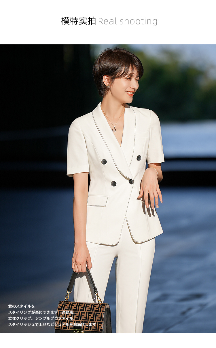 白色西装套装女夏短袖双排扣工作服高端职业装气质西服正装