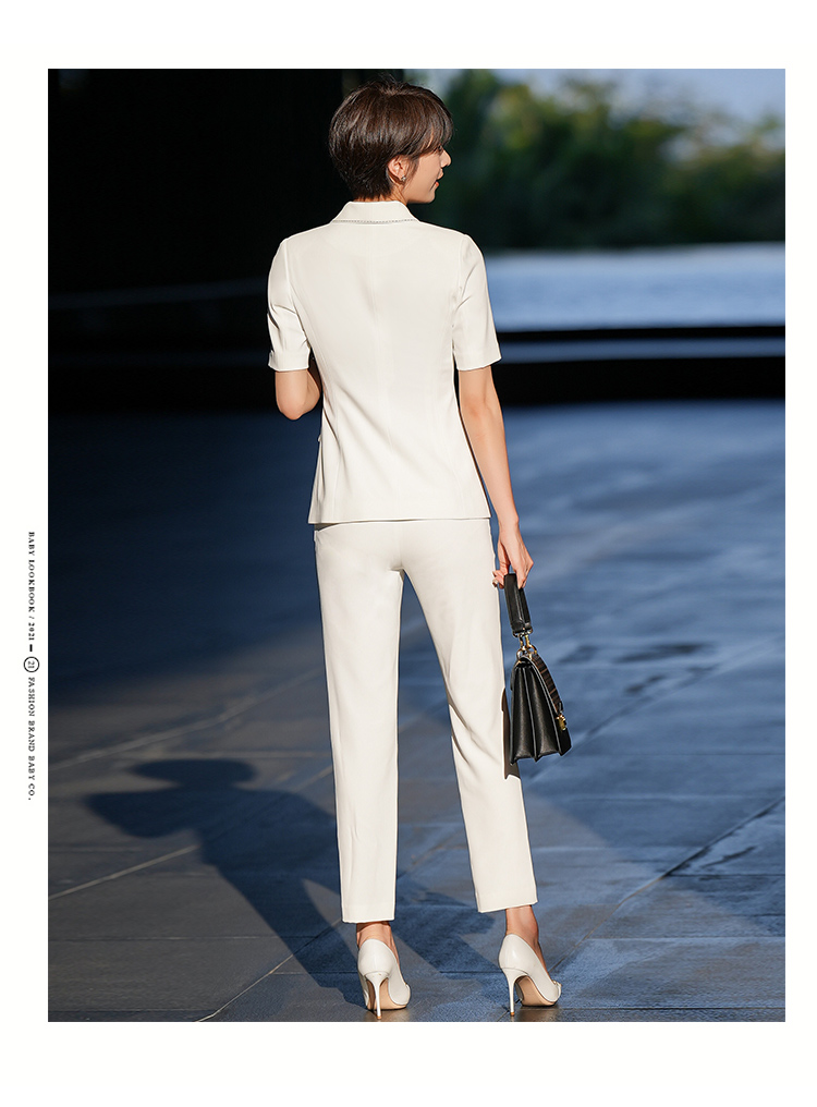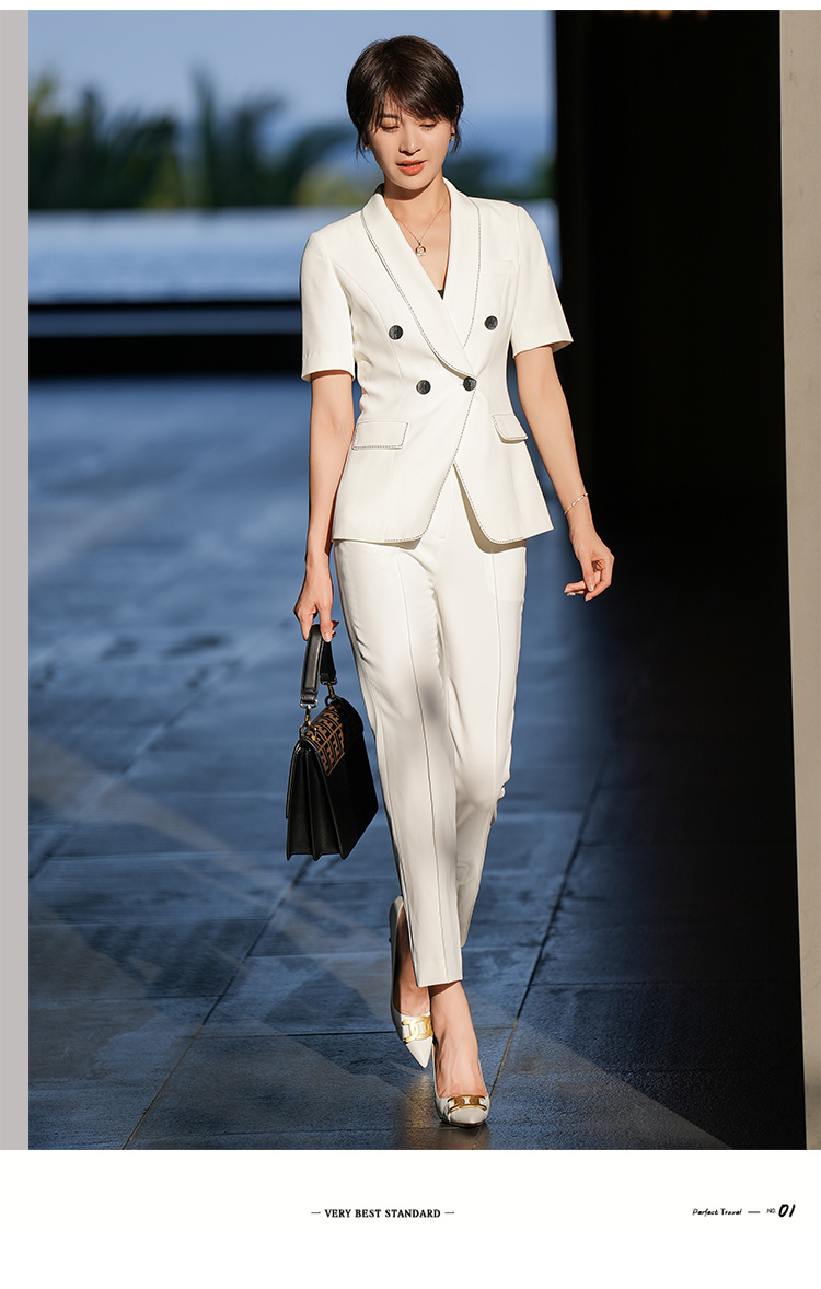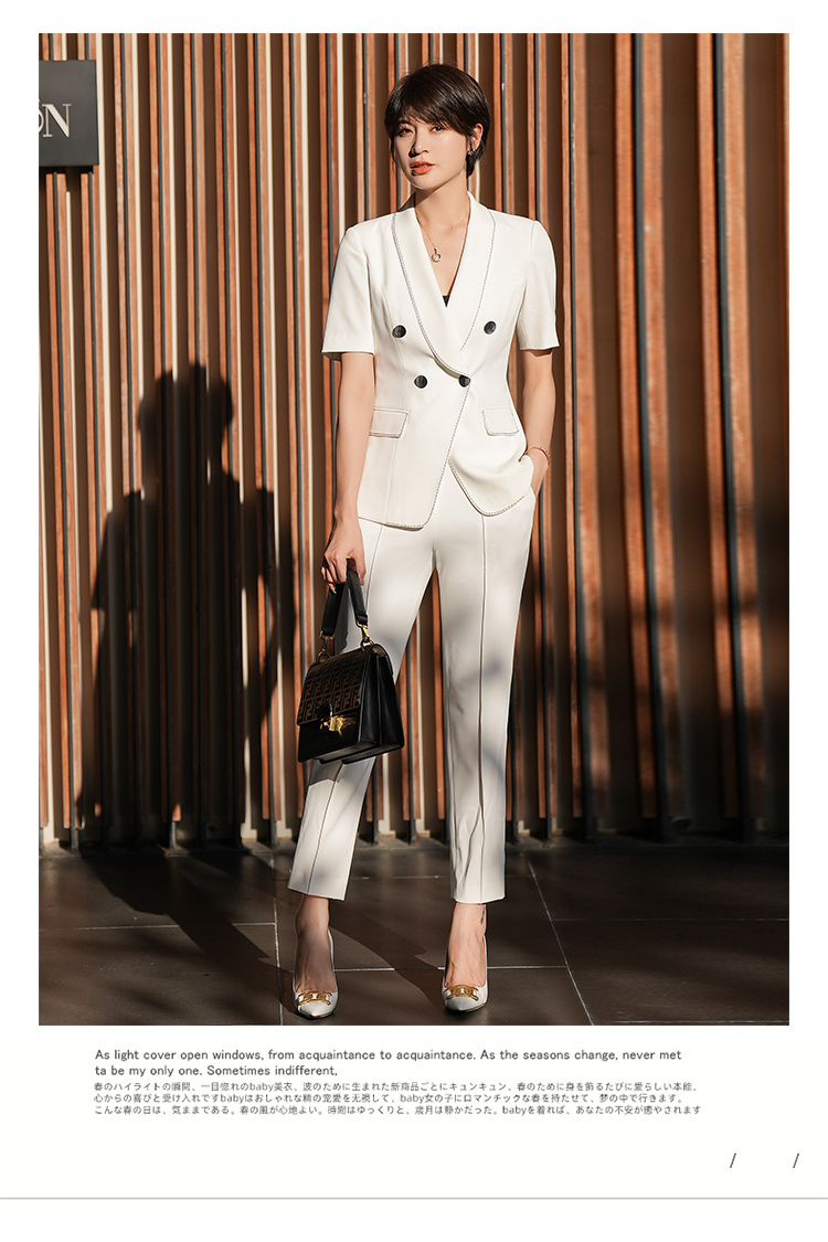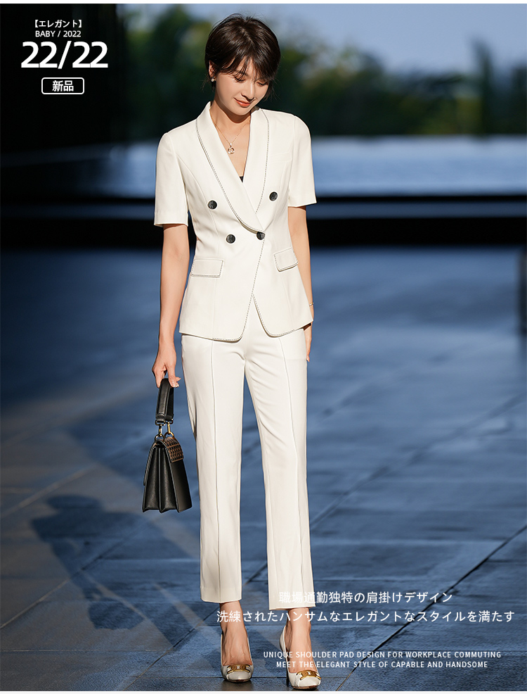 白色西装套装女夏短袖双排扣工作服高端职业装气质西服正装