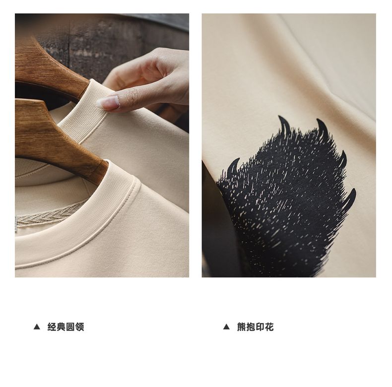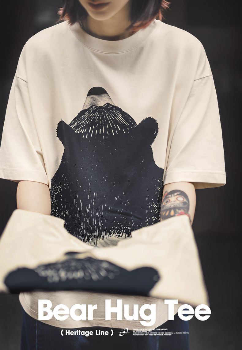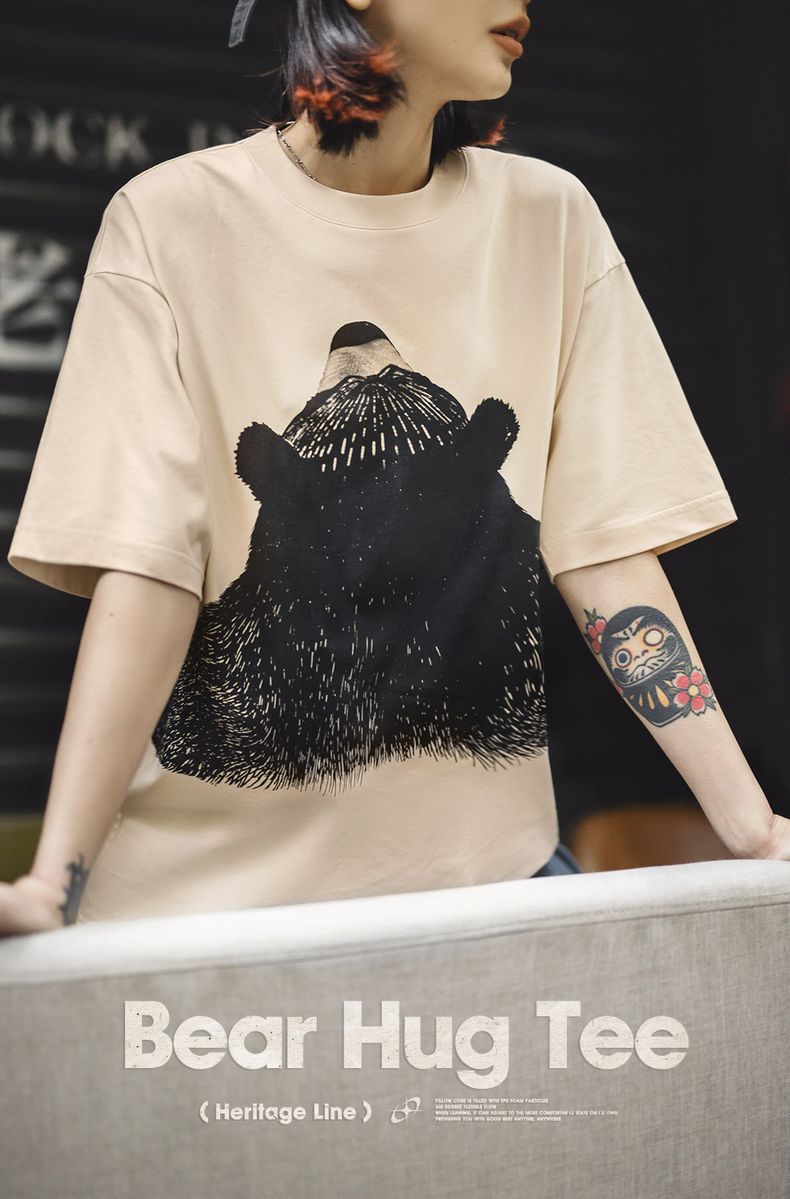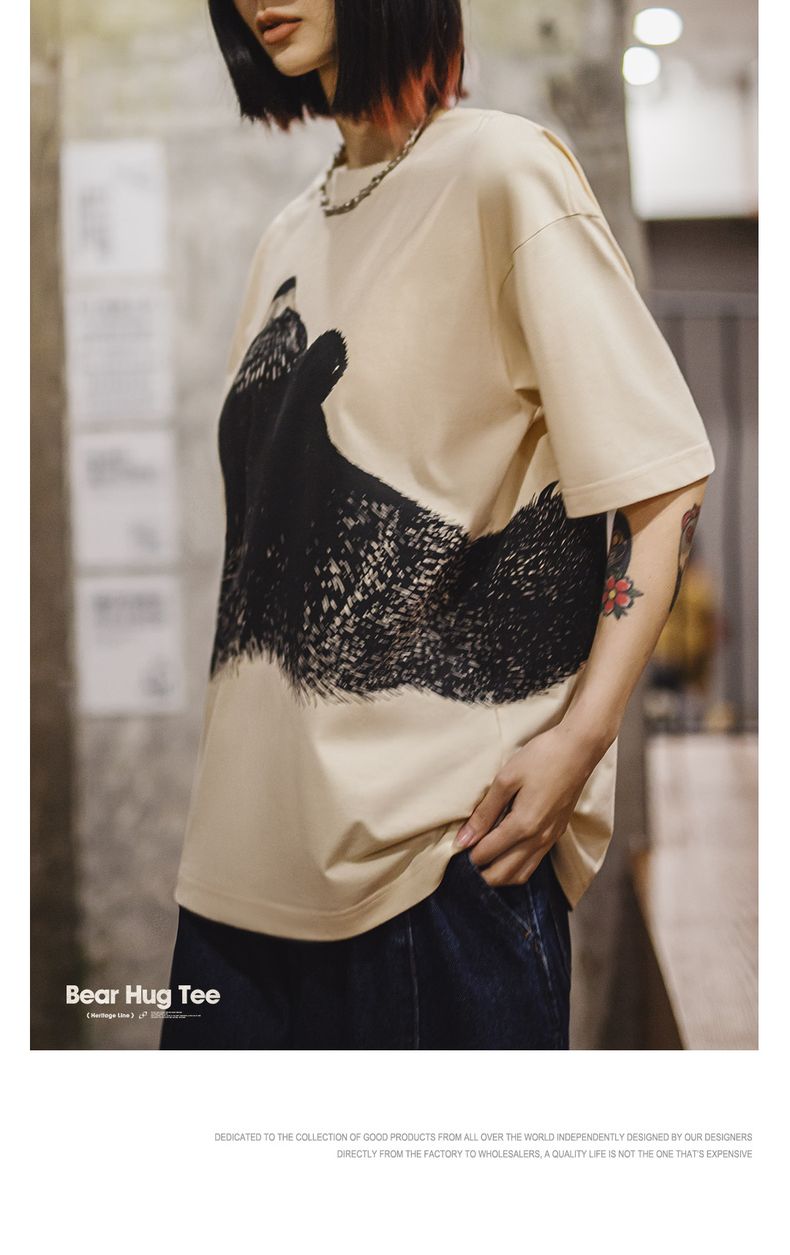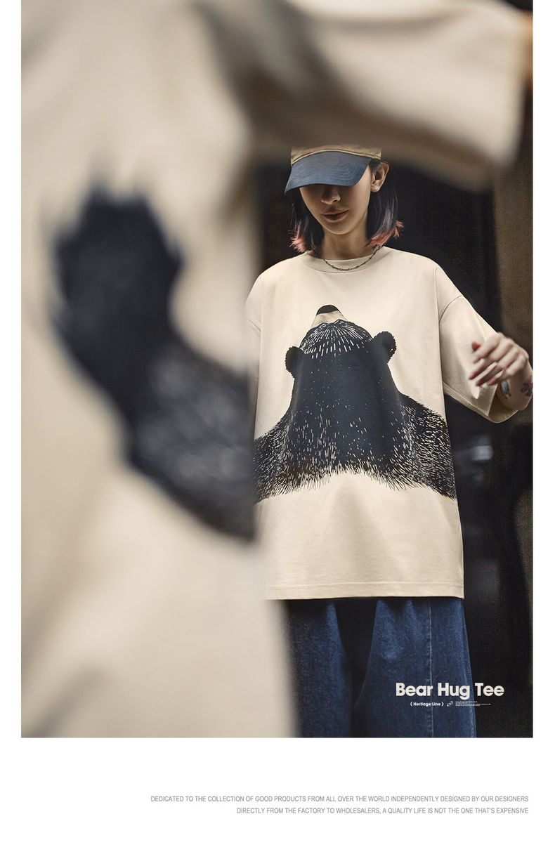 马登oversize慵懒小熊插画圆领T恤日系小众设计显瘦落肩短袖夏女