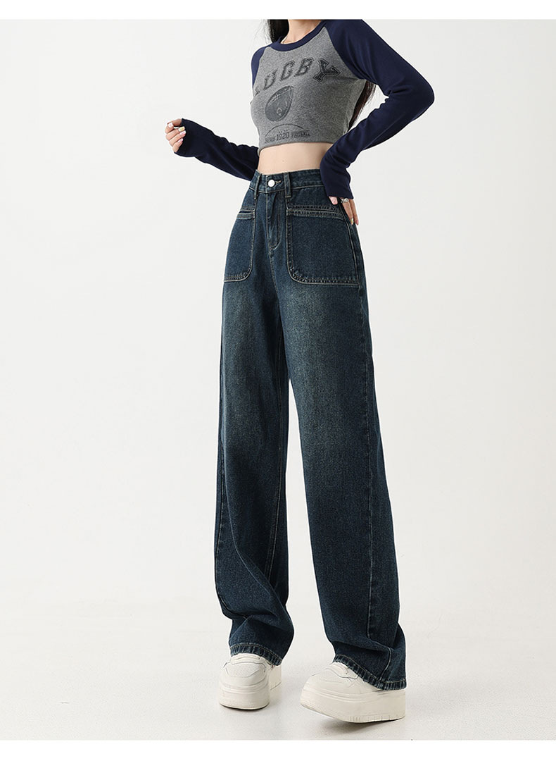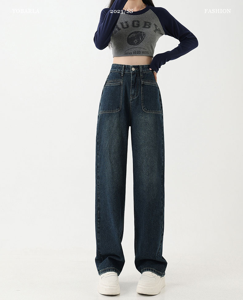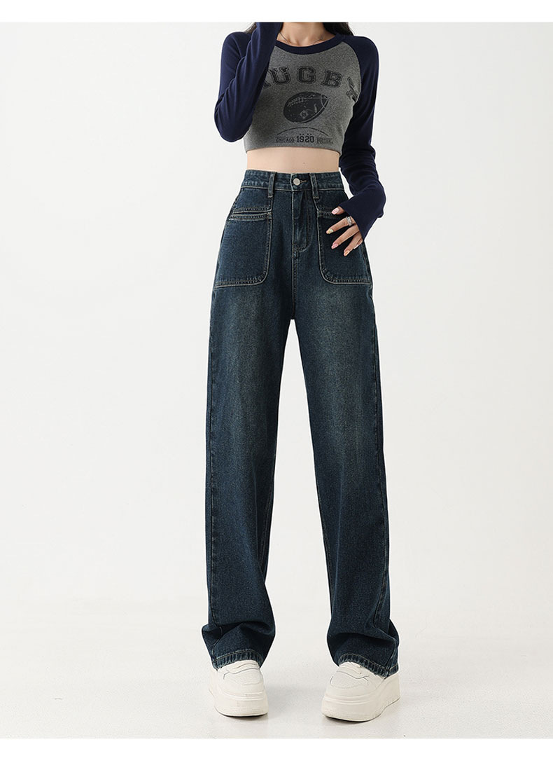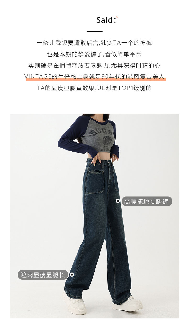 【一条过冬】 加绒款高腰拖地牛仔裤 高街垂感 加绒保暖 高腰收腹显腿长