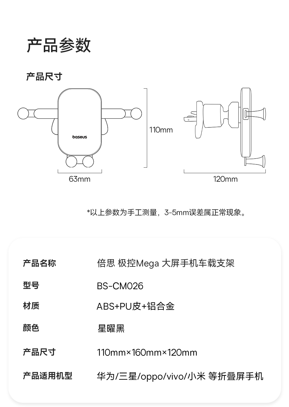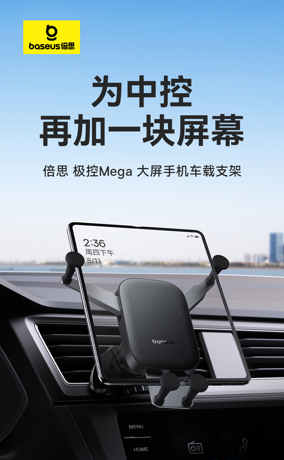 倍思 极控Mega 大屏折叠手机手机车载支架(三星/华为/oppo/vivo/小米折叠手机车载支架)