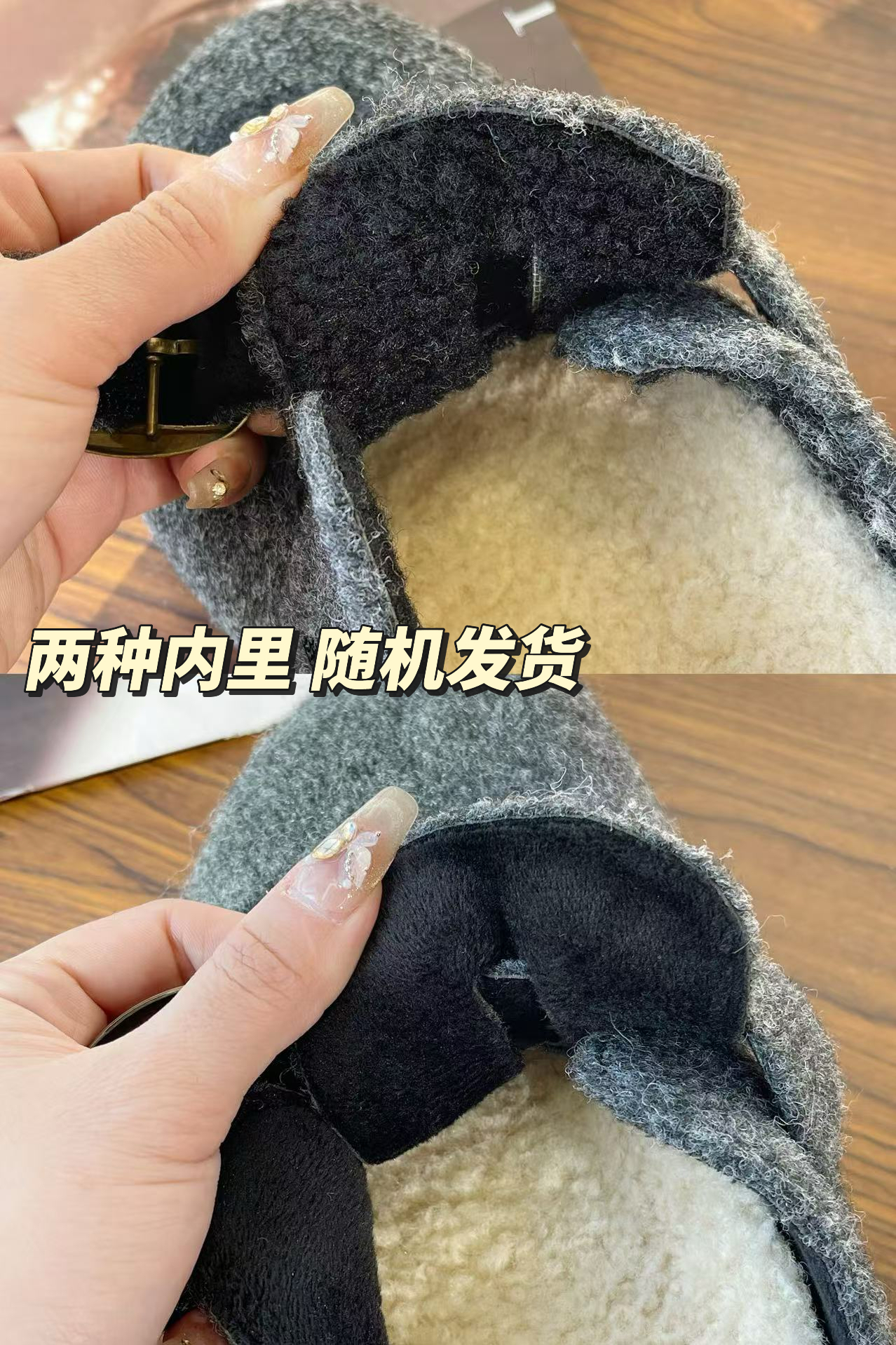 注意:加绒款咖褐色、迷雾灰因面料不同,是固定金属扣设计,其余款为魔术贴设计。