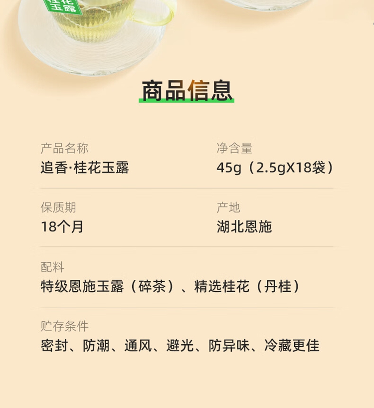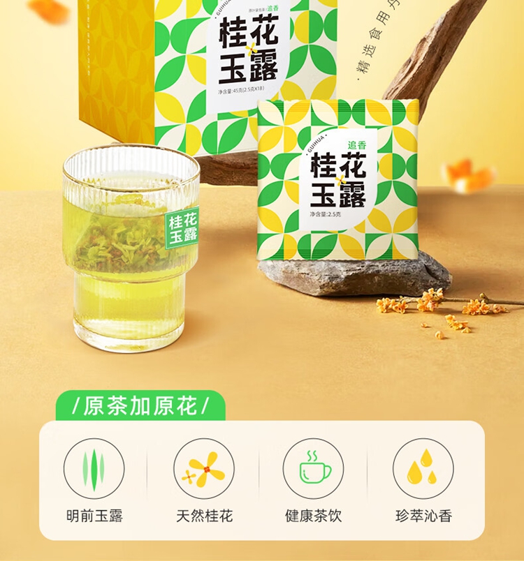 茶马世家丨桂花玉露 花茶 茶马世家桂花玉露(追香)盒装 45g(2.5g*18袋)桂花绿茶
