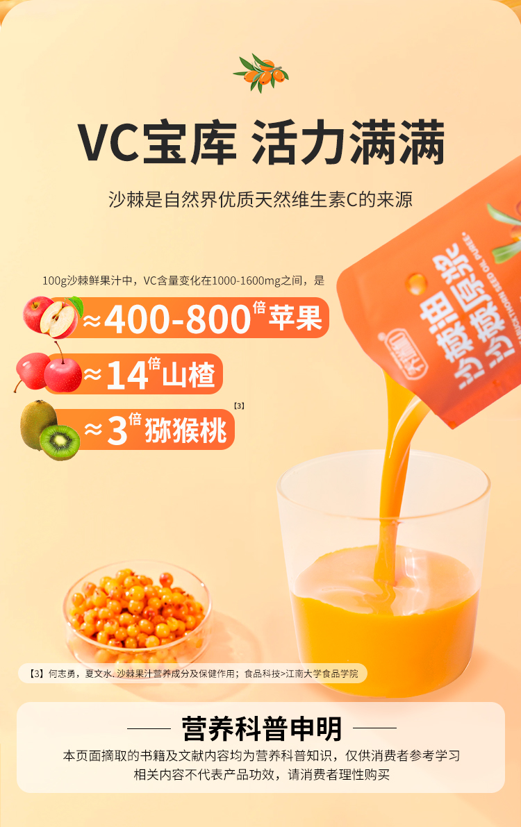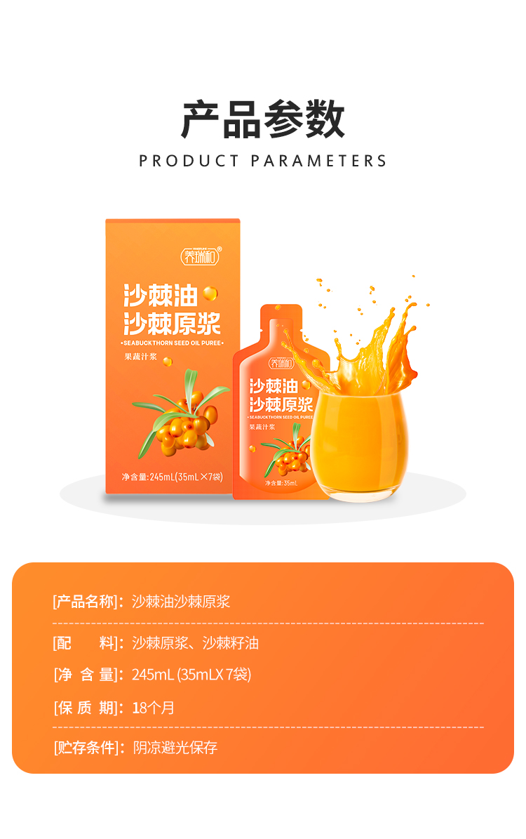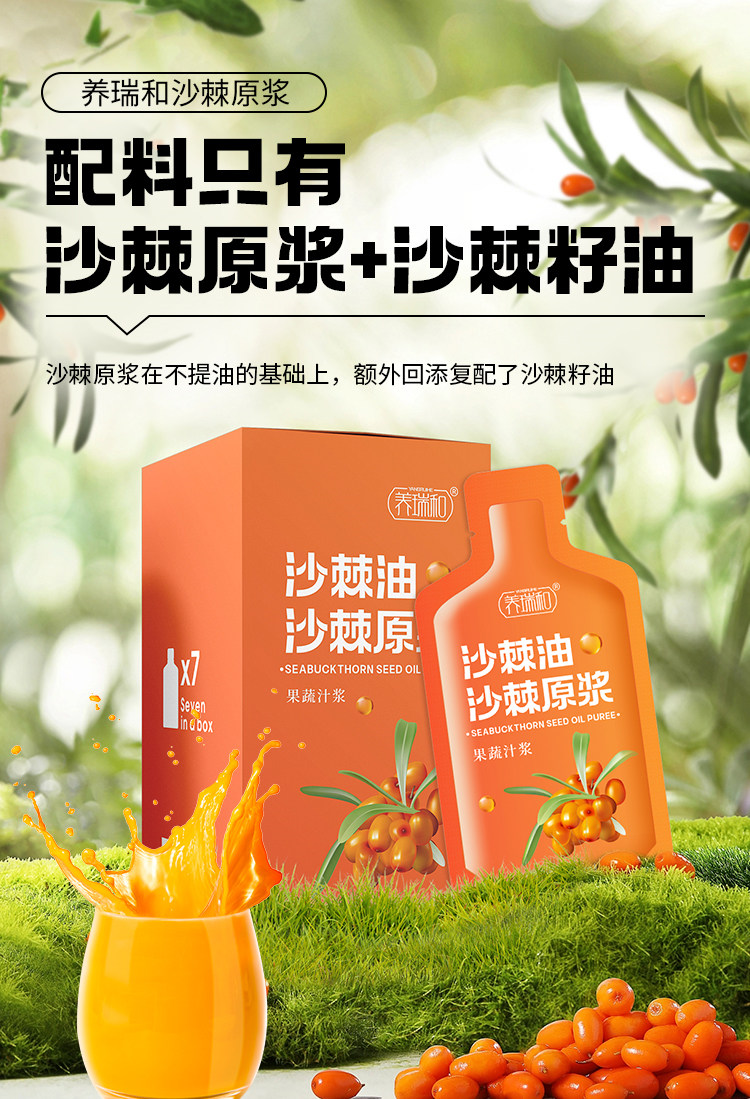 养瑞和丨沙棘原浆·35ml*7袋·配料只有沙棘原浆·沙棘籽油·不提油·VC新疆小果好好喝!