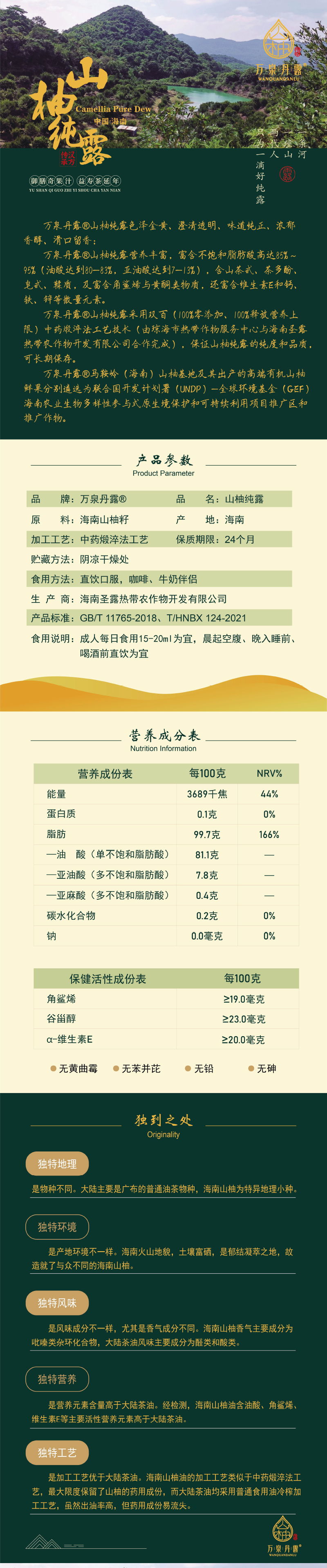 万泉丹露 有机山柚纯露山柚茶油 (中药煅淬法工艺) (直饮,一级, 75m1) 5ml*15支/盒
