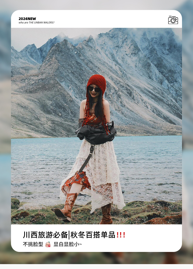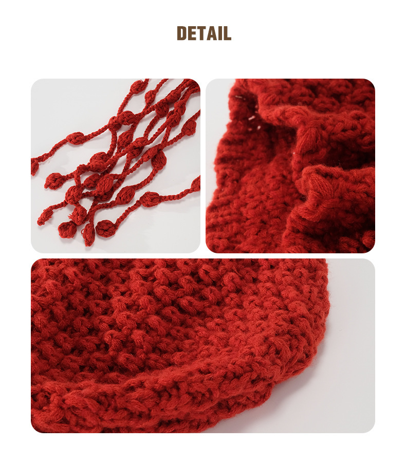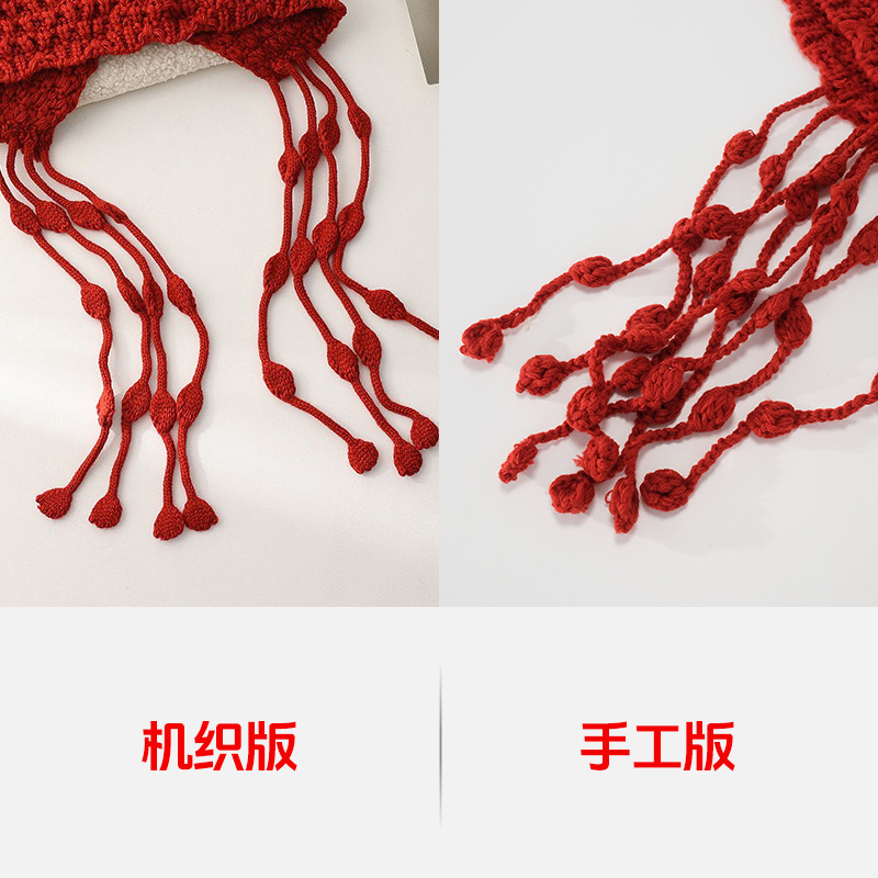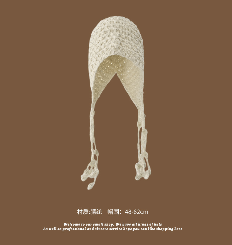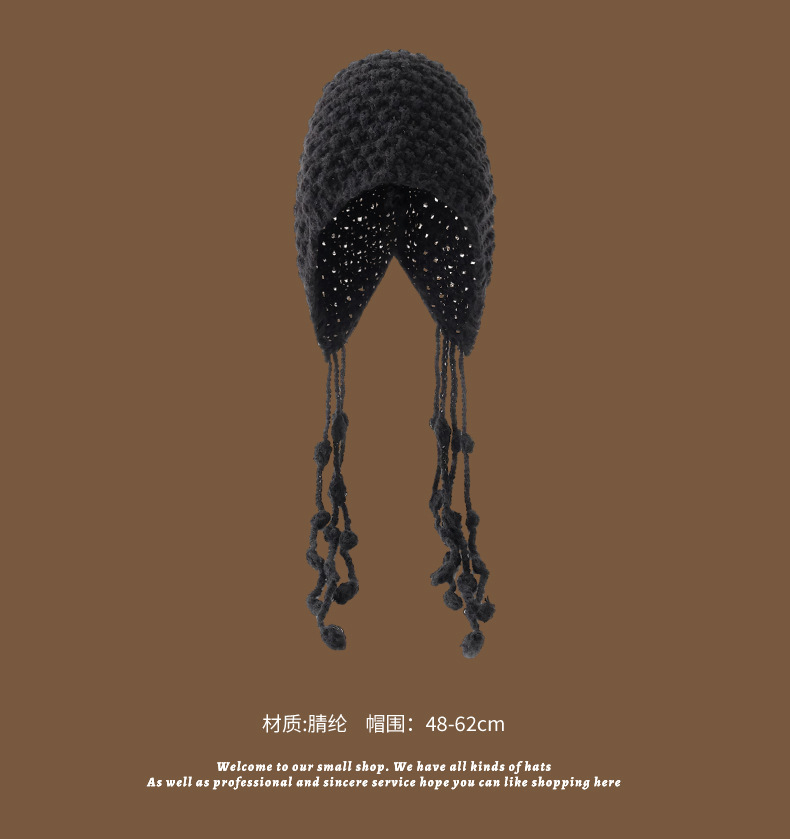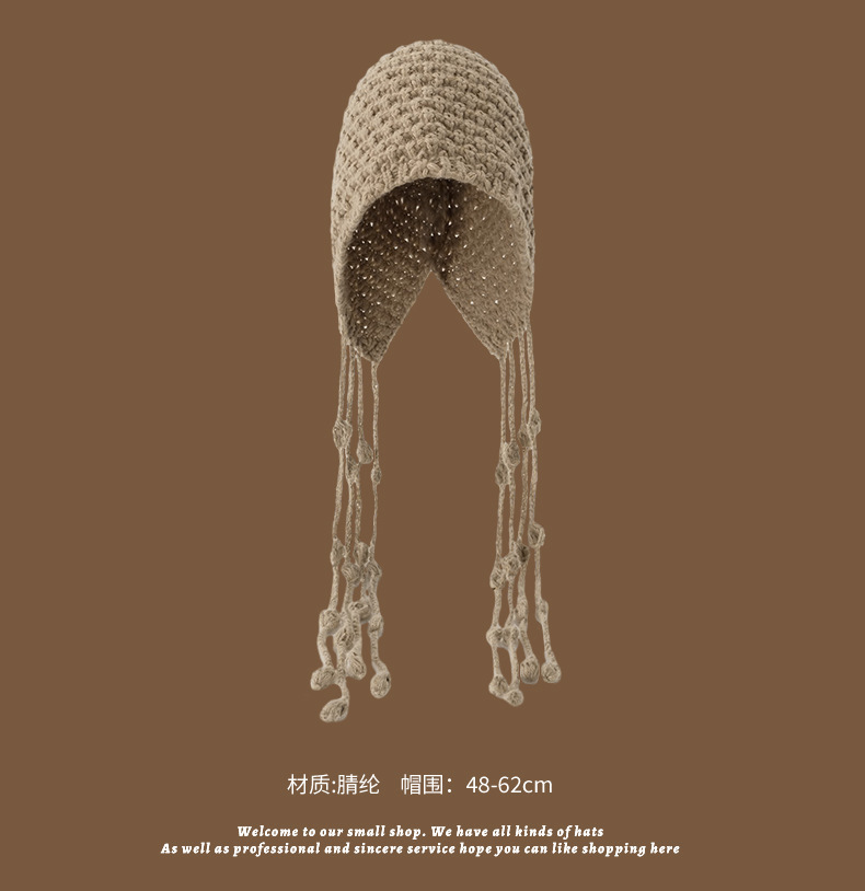 【旅游穿搭❗️编织镂空针织帽】随手拍照都出片,秋冬百搭单品,不挑脸型,显白显脸小,川西旅游手工编织镂空针织帽子女秋出游百搭流苏绑带毛线套头冷帽QQ