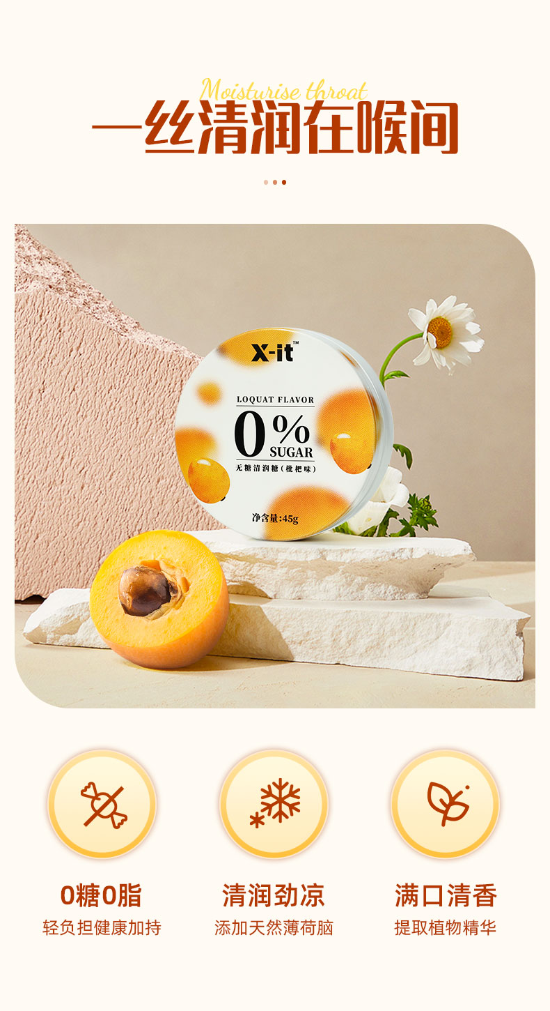 X-it 0糖0脂双效清润糖 无糖枇杷护嗓薄荷糖清新口气清凉硬糖