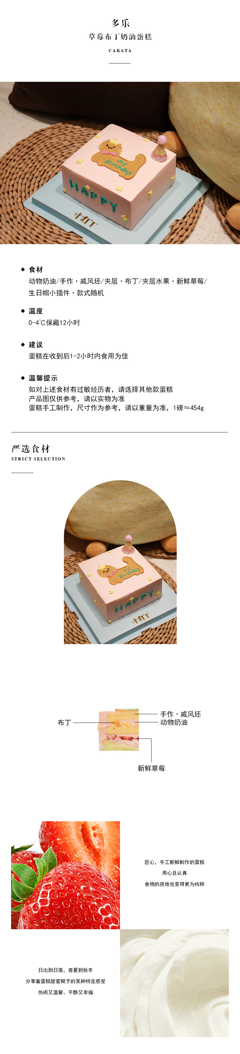 多乐·草莓布丁奶油蛋糕 (可备注少糖)