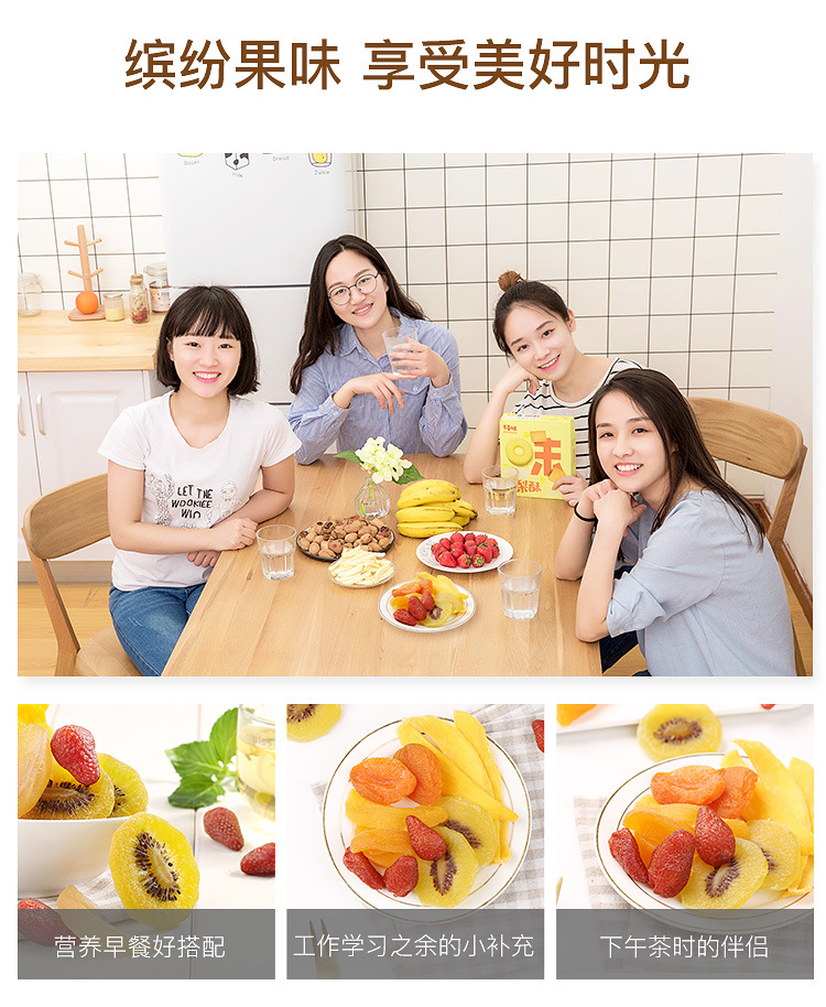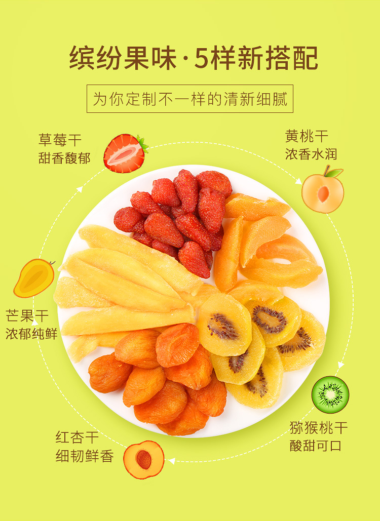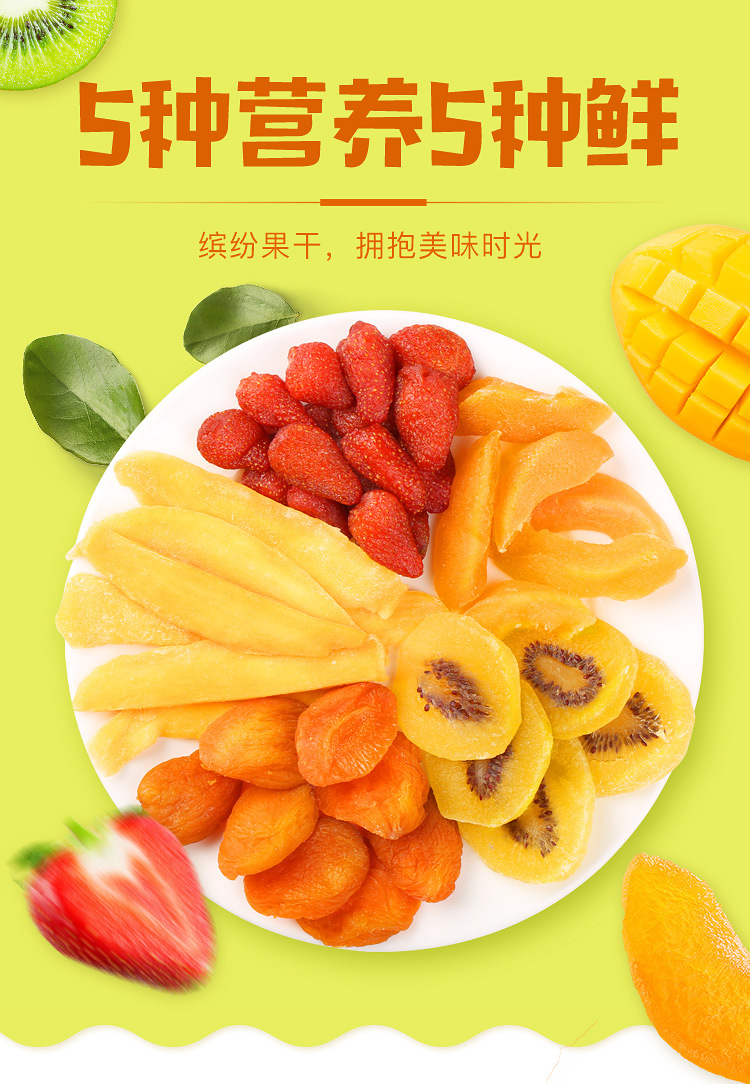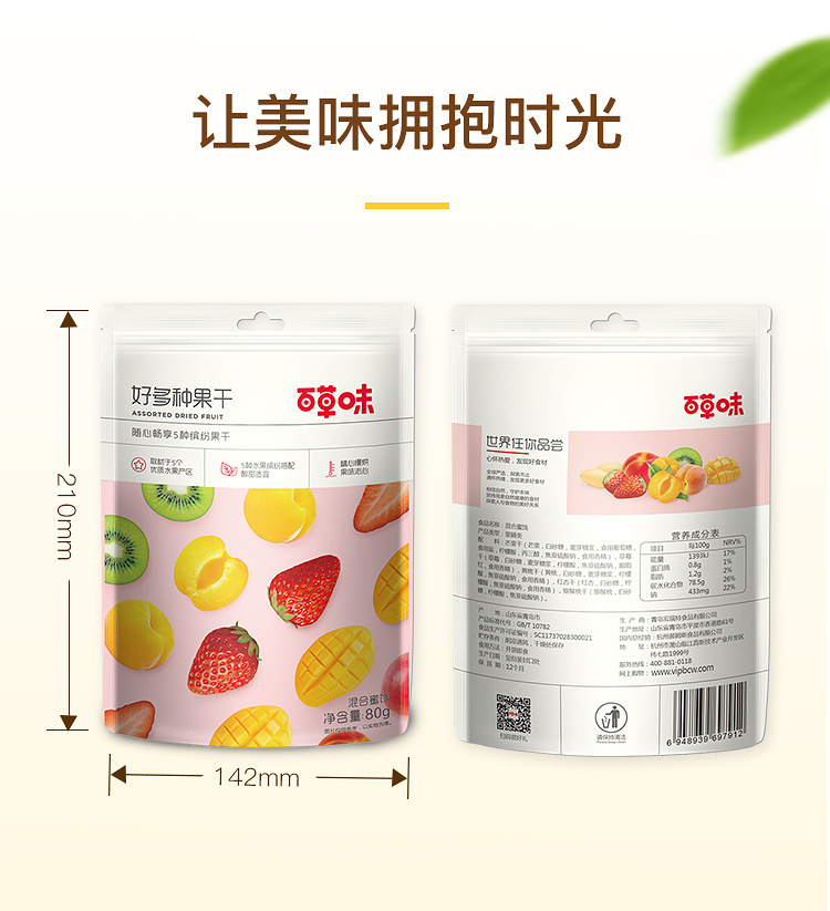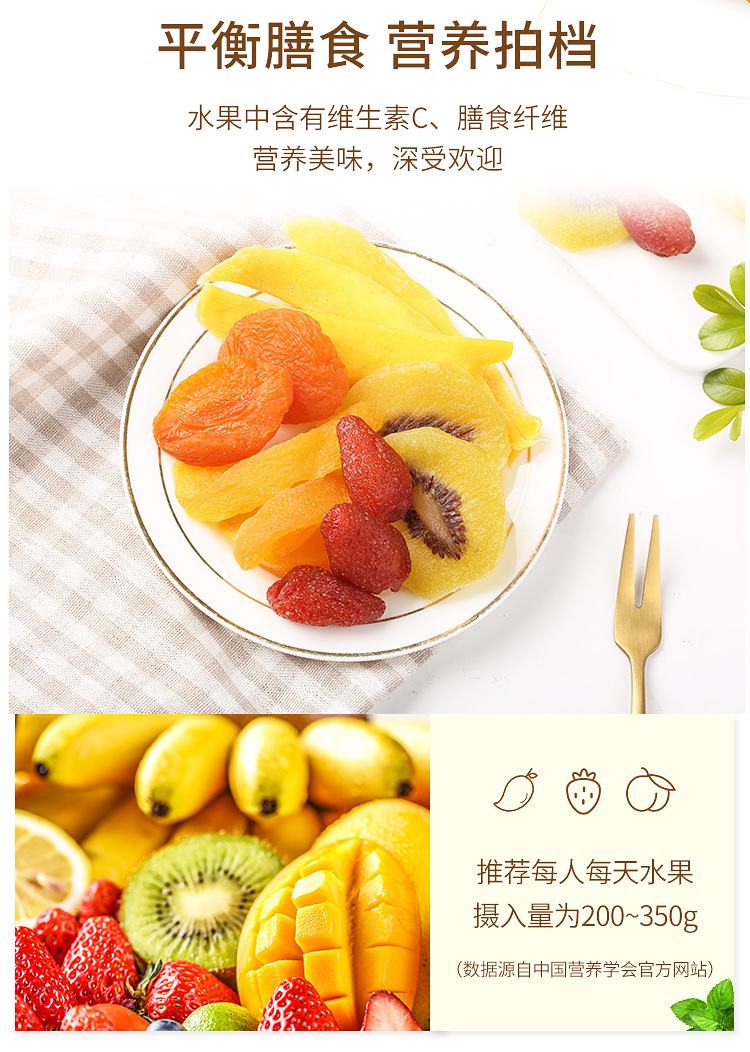 百草味好多种果干80g混合水果干猕猴桃草莓黄桃芒果红杏