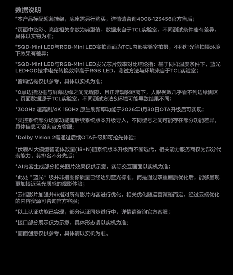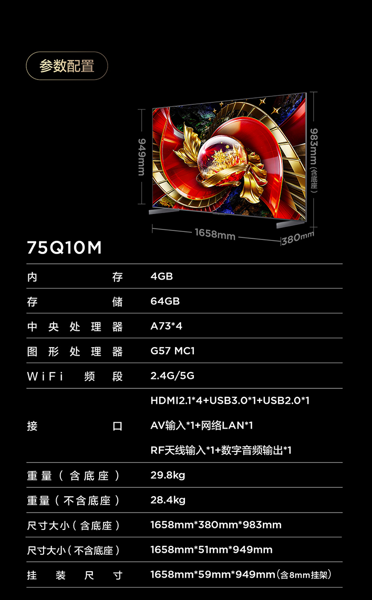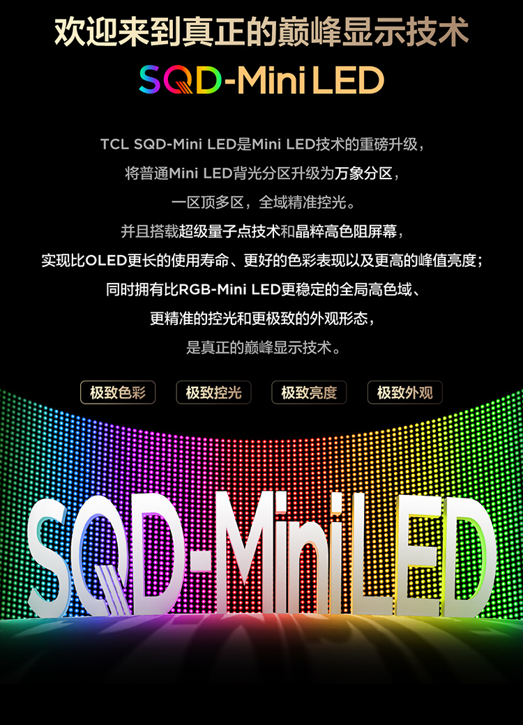 TCL电视 75Q10M 75英寸 SQD-Mini LED 100%全局高色域 超级蝶翼华曜屏 万象分区 绚彩XDR 6000nits