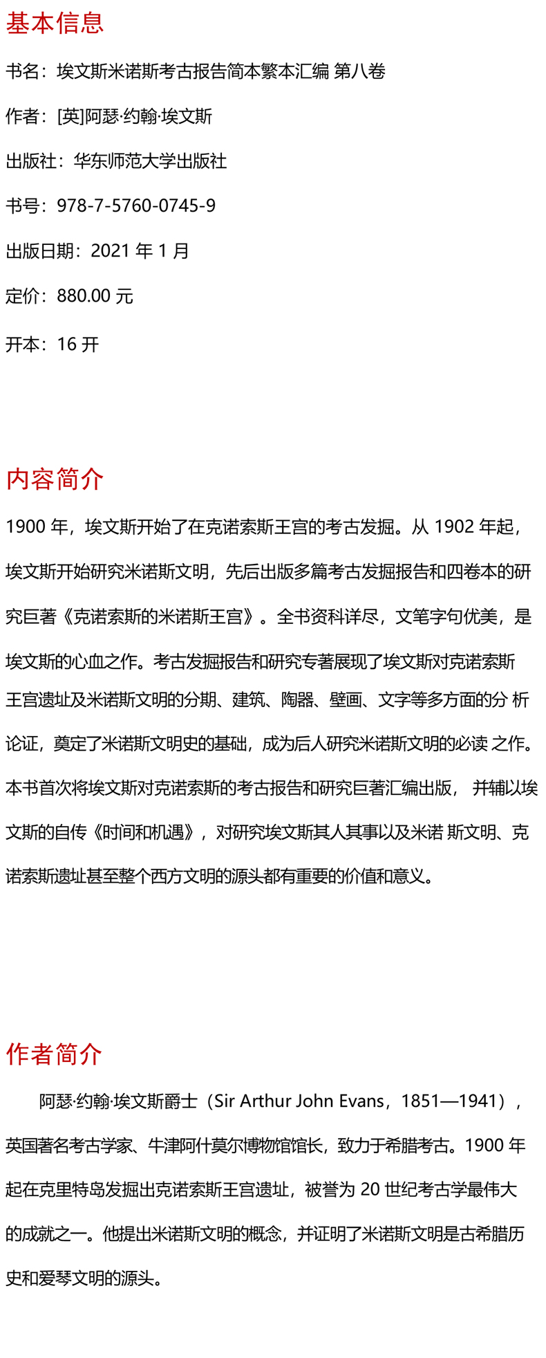 埃文斯米诺斯考古报告简本繁本汇编 第八卷 The Palace of Minos at knossos 英文原版影印 考古系列 精装 华东师范大学出版社