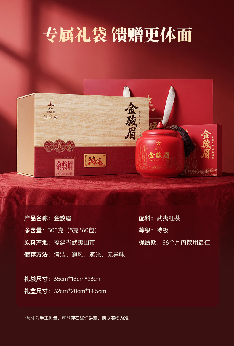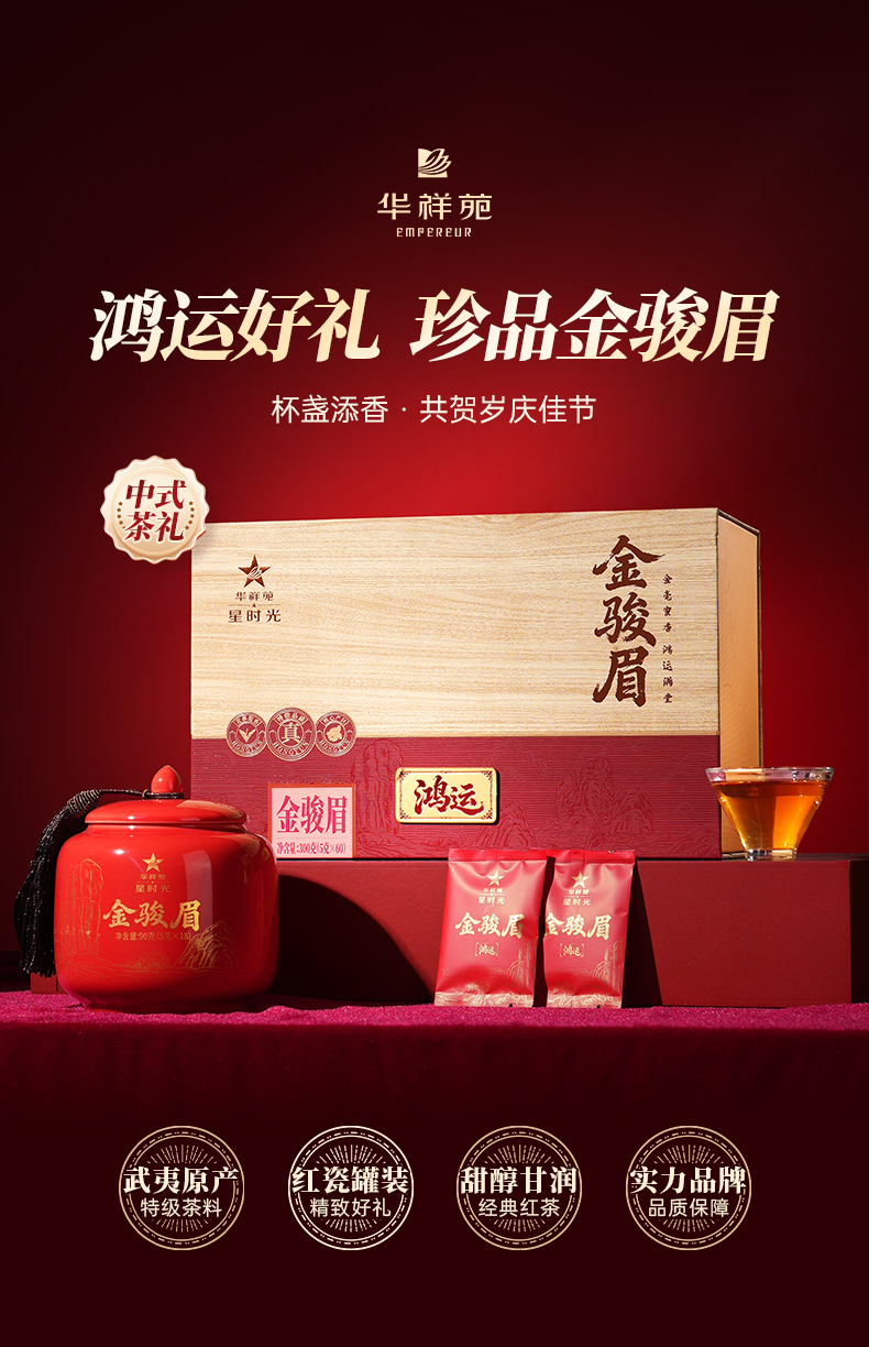 华祥苑-特级武夷红茶鸿运金骏眉300g瓷罐装