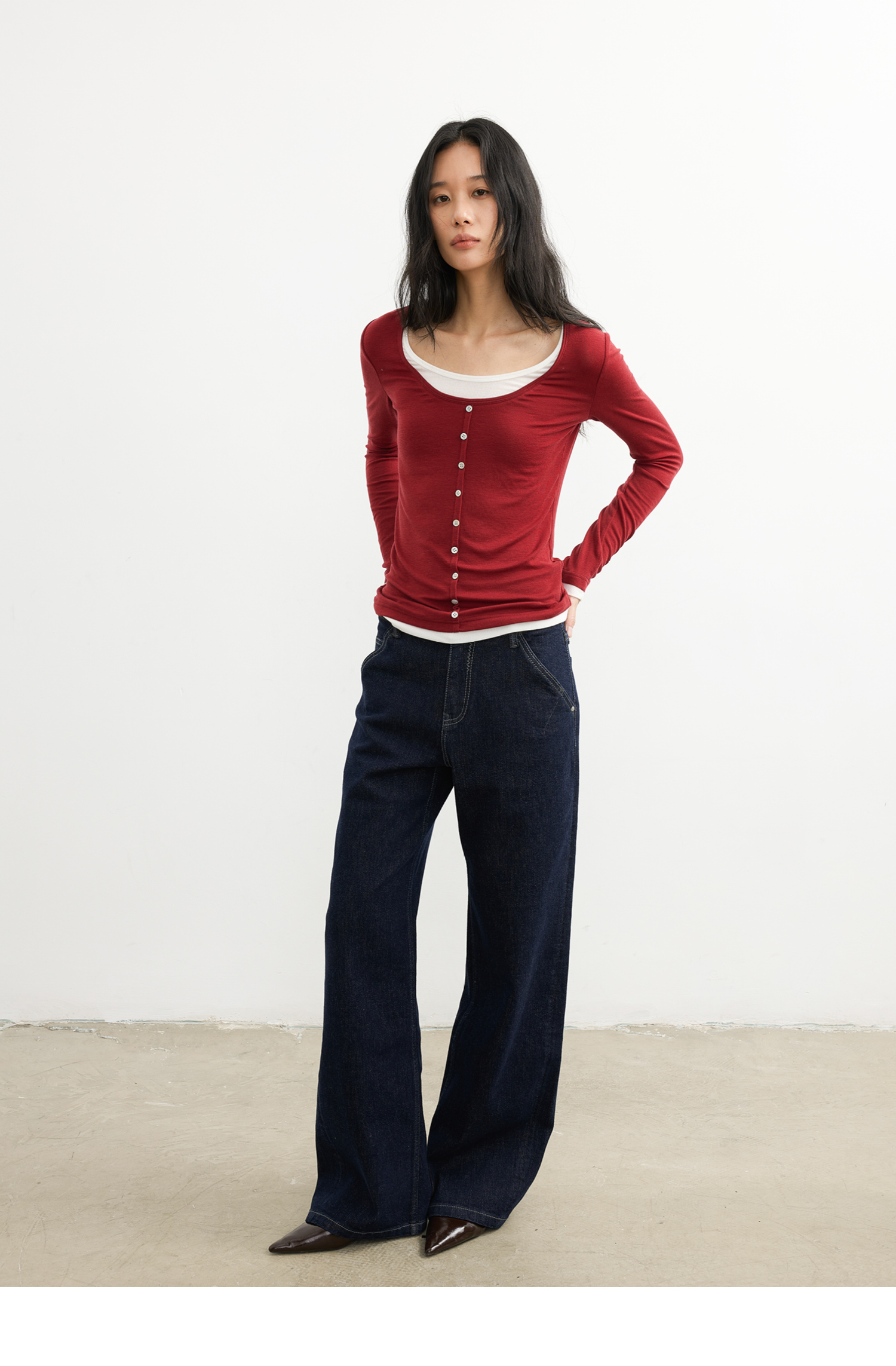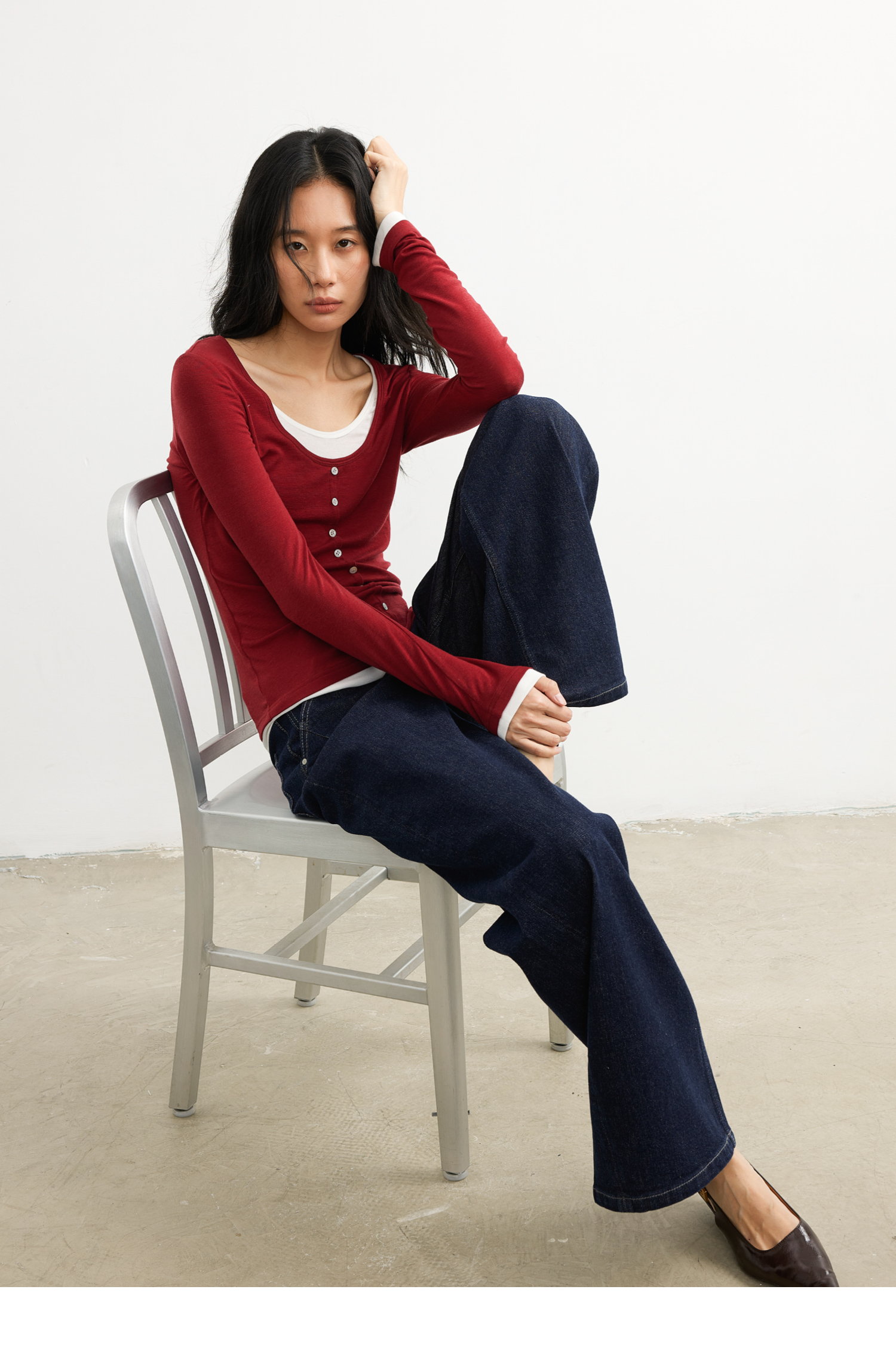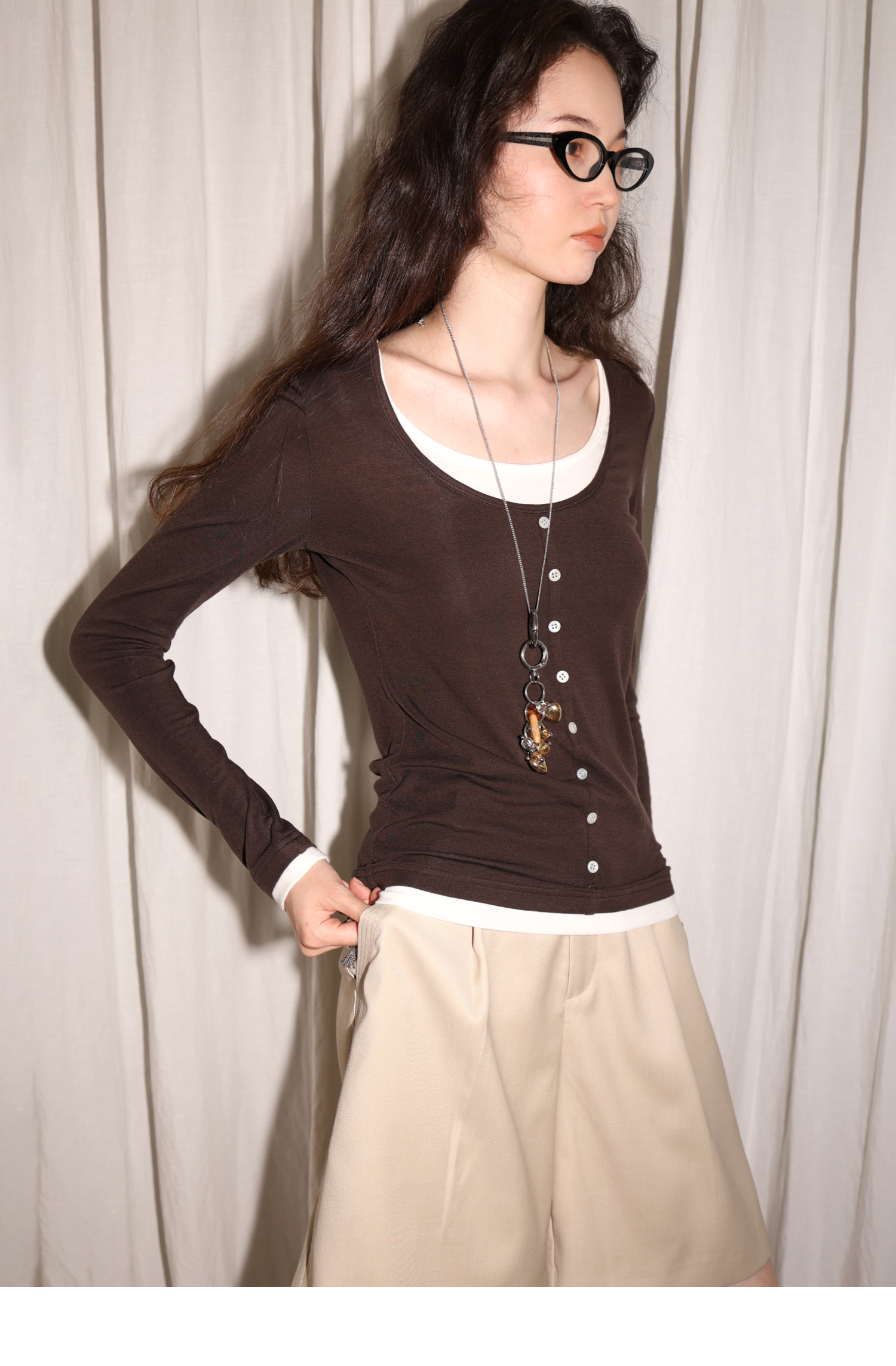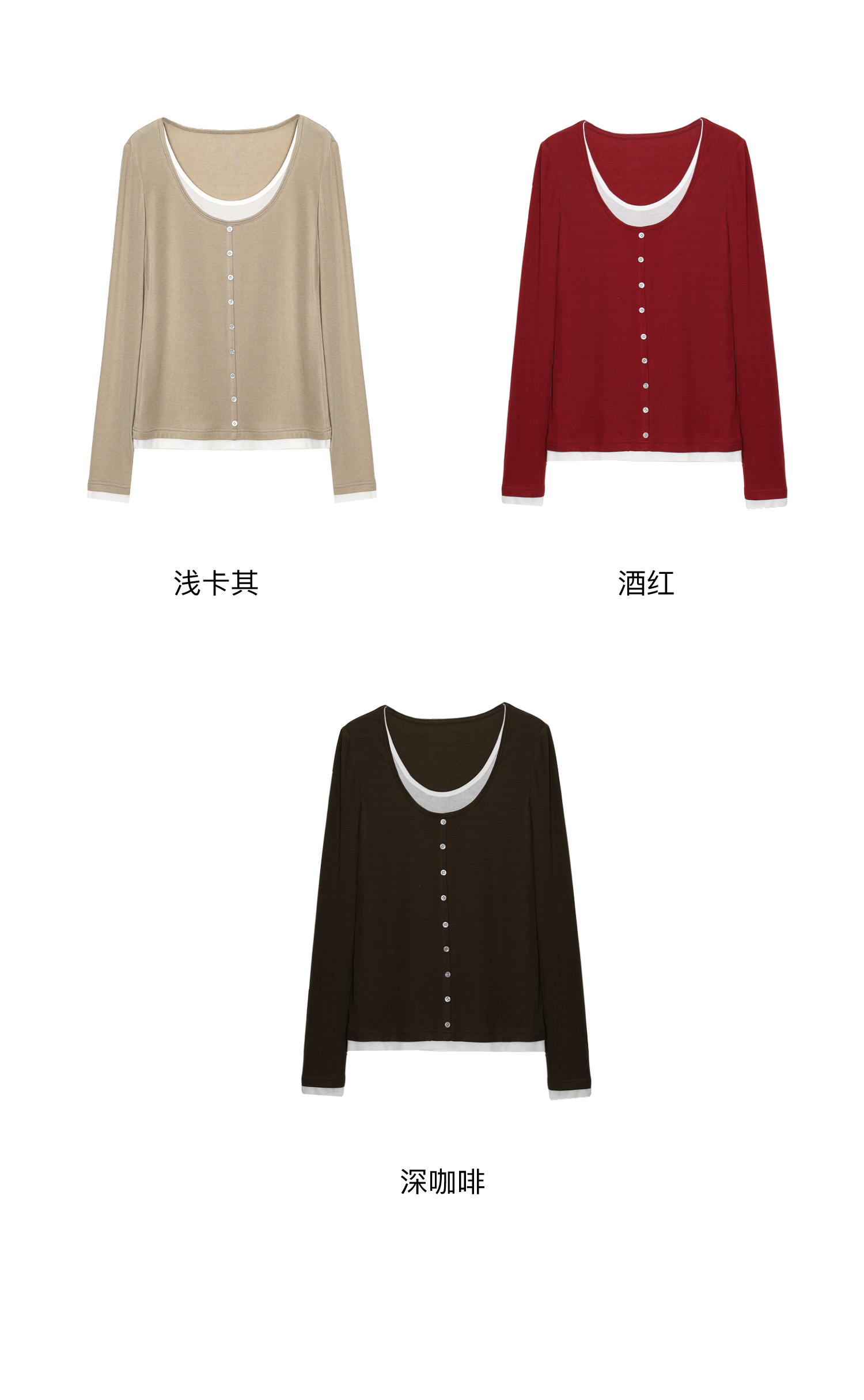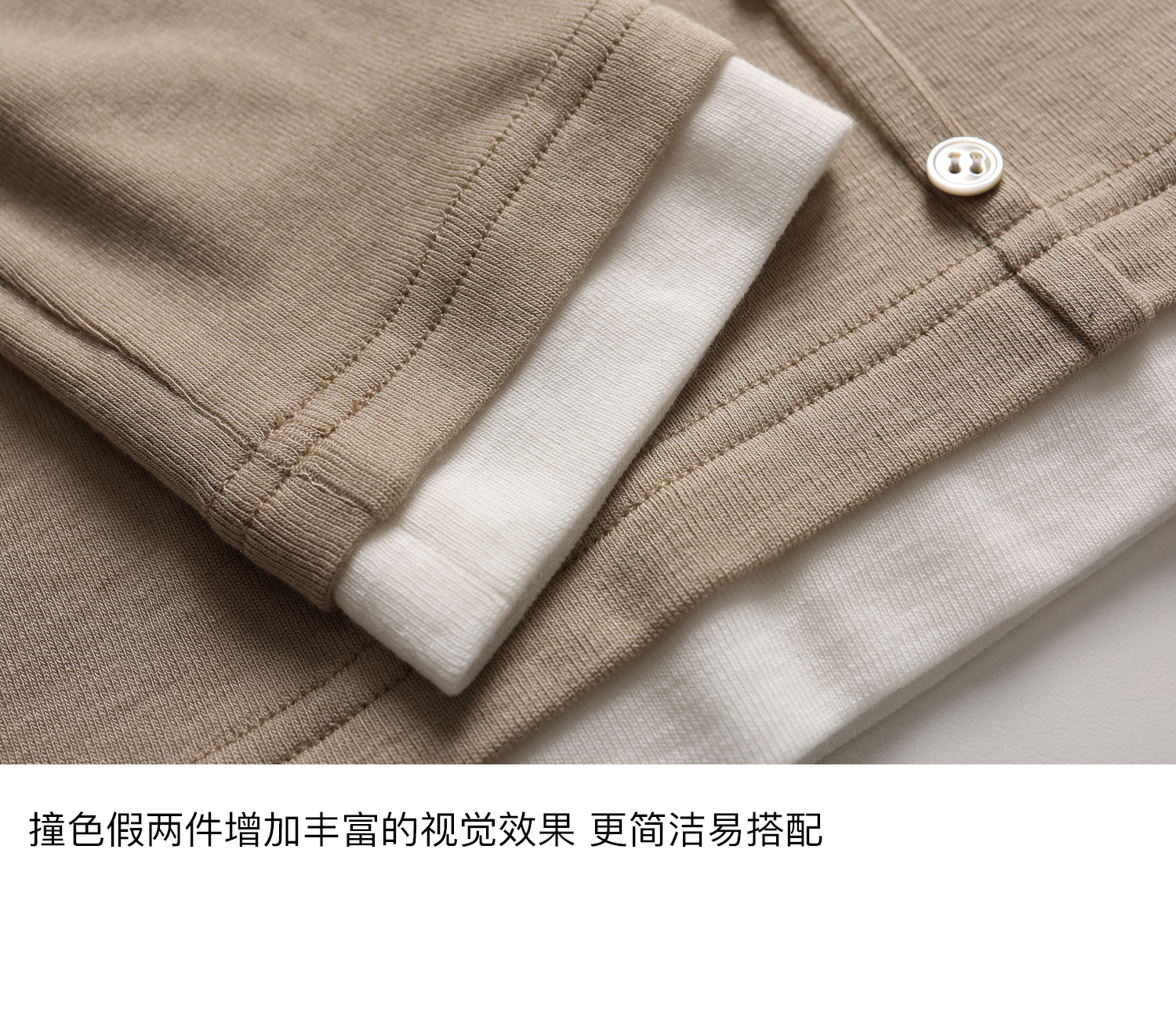 素舶 澳洲美丽诺羊毛莱赛尔亲肤撞色假两件修身显瘦长袖打底衫