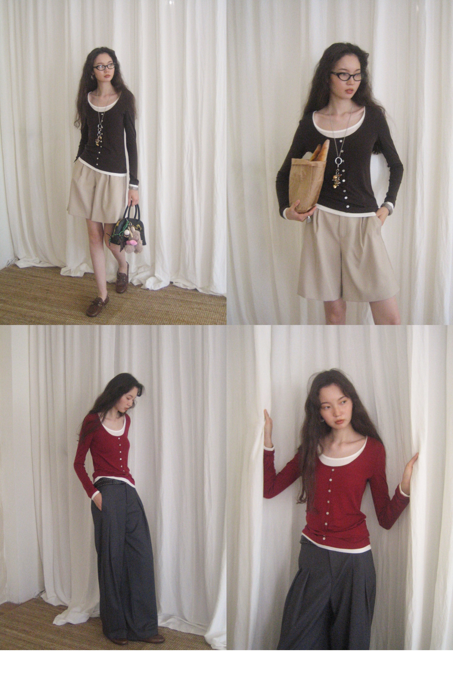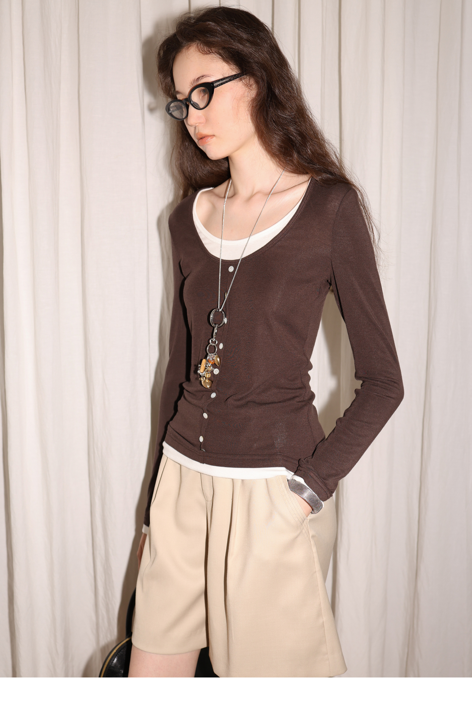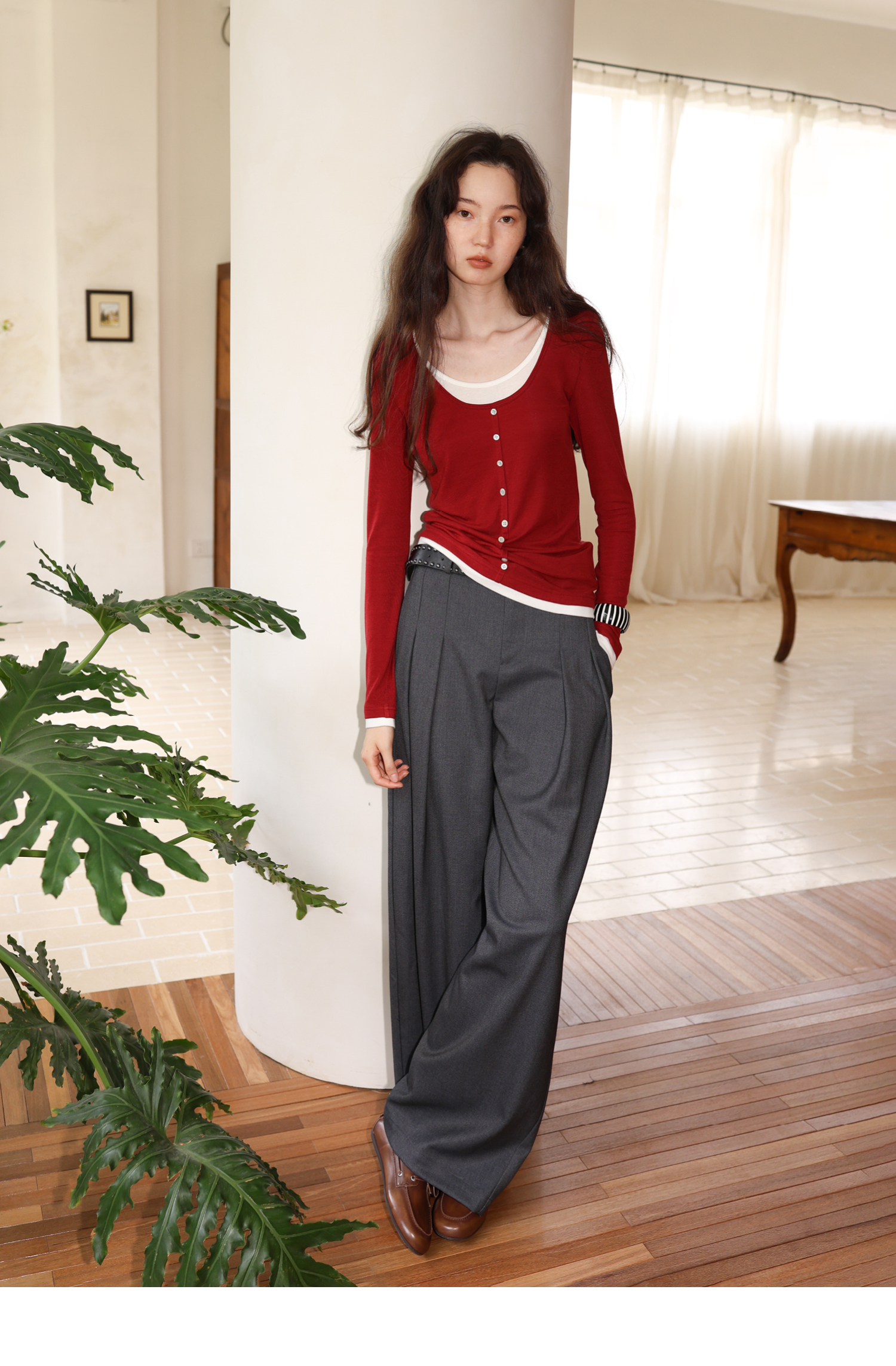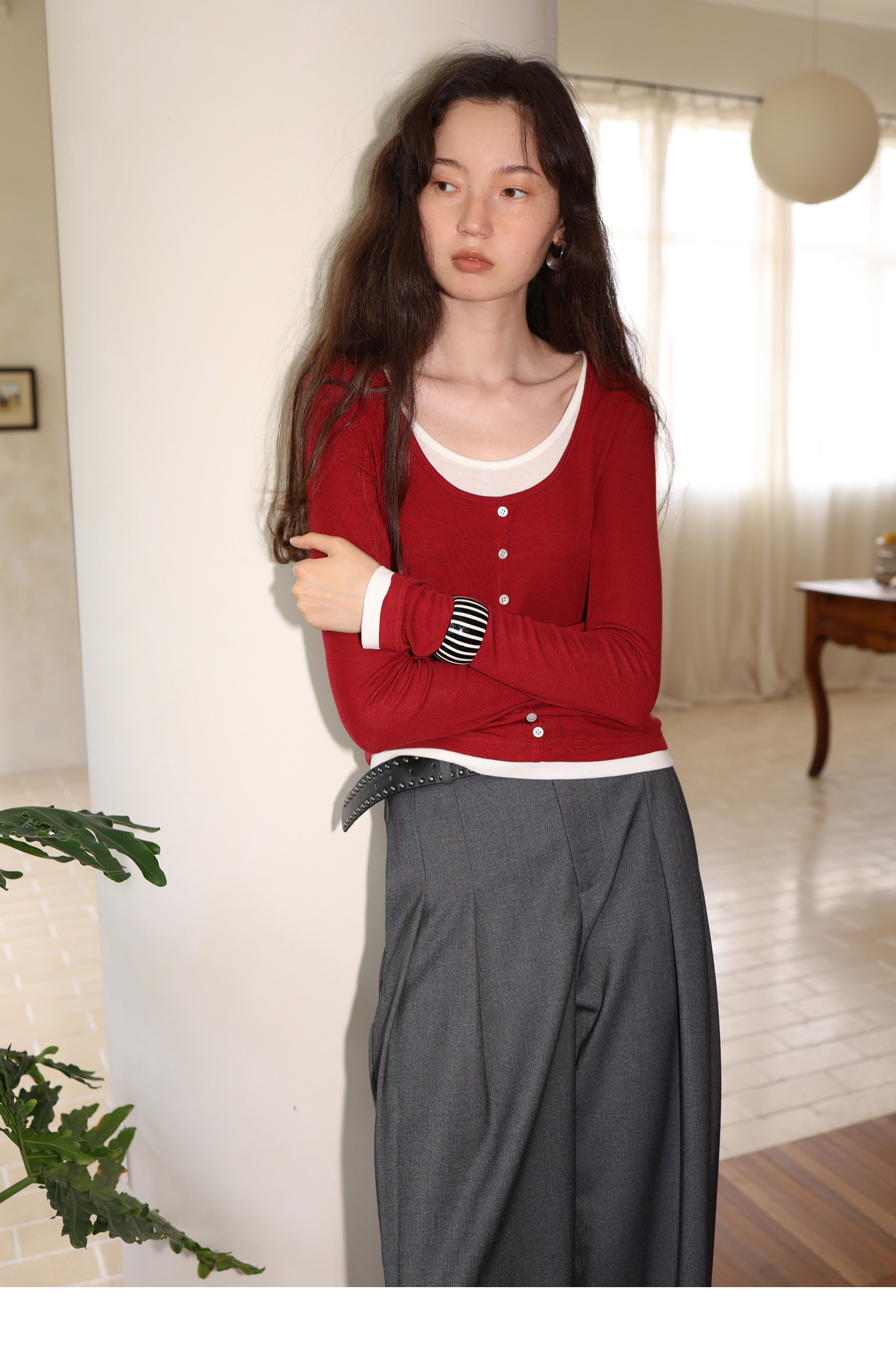 素舶 澳洲美丽诺羊毛莱赛尔亲肤撞色假两件修身显瘦长袖打底衫