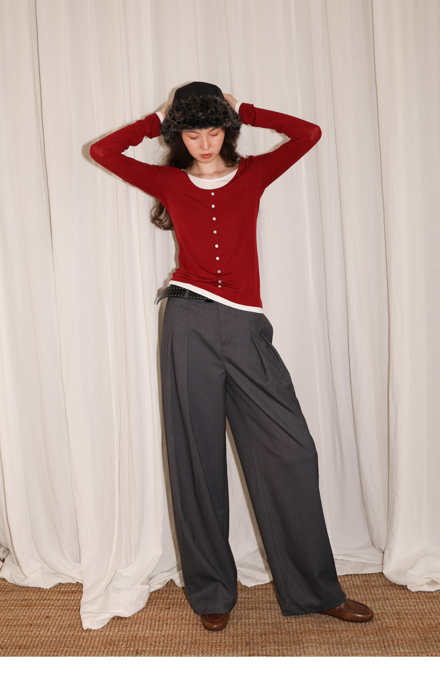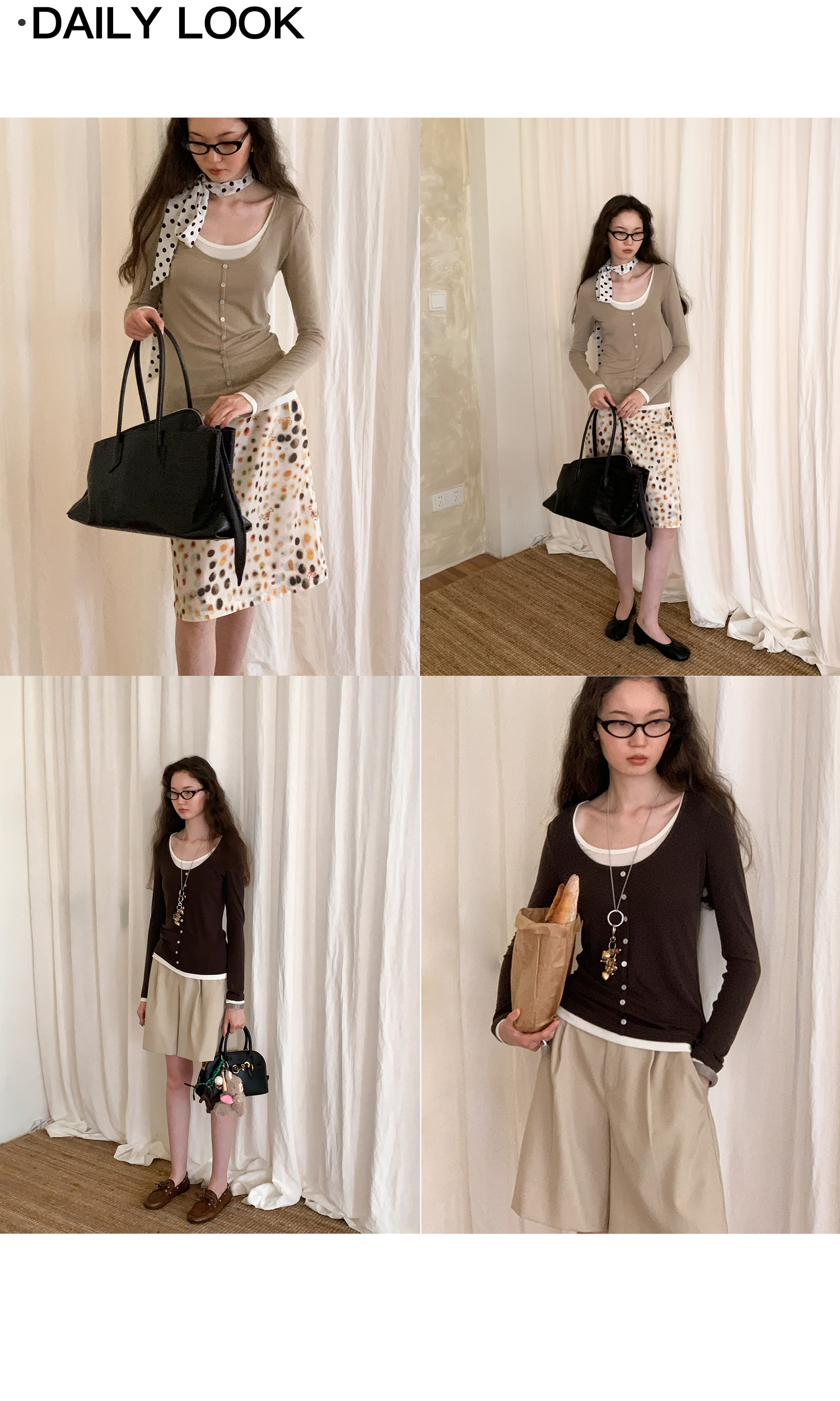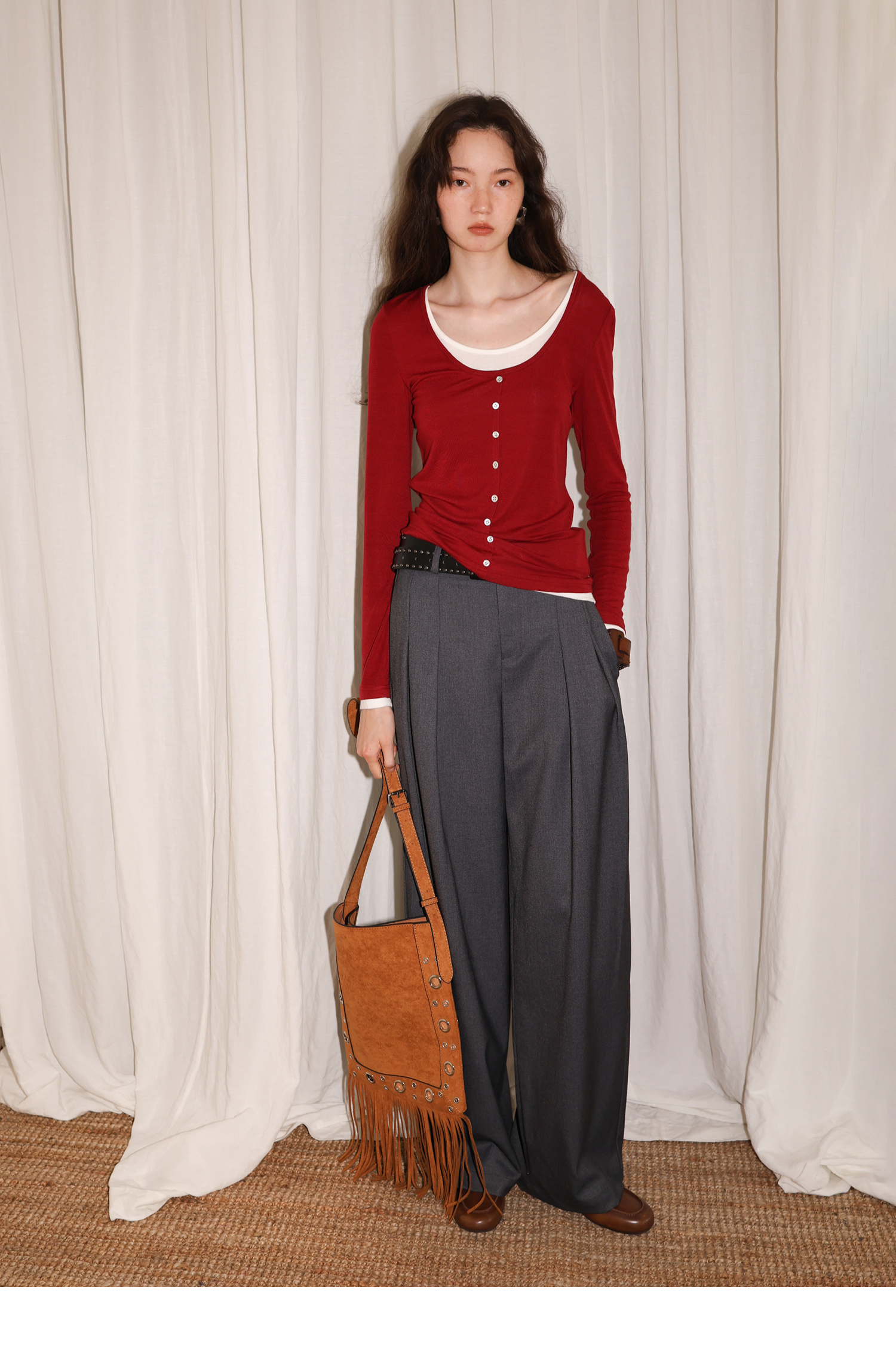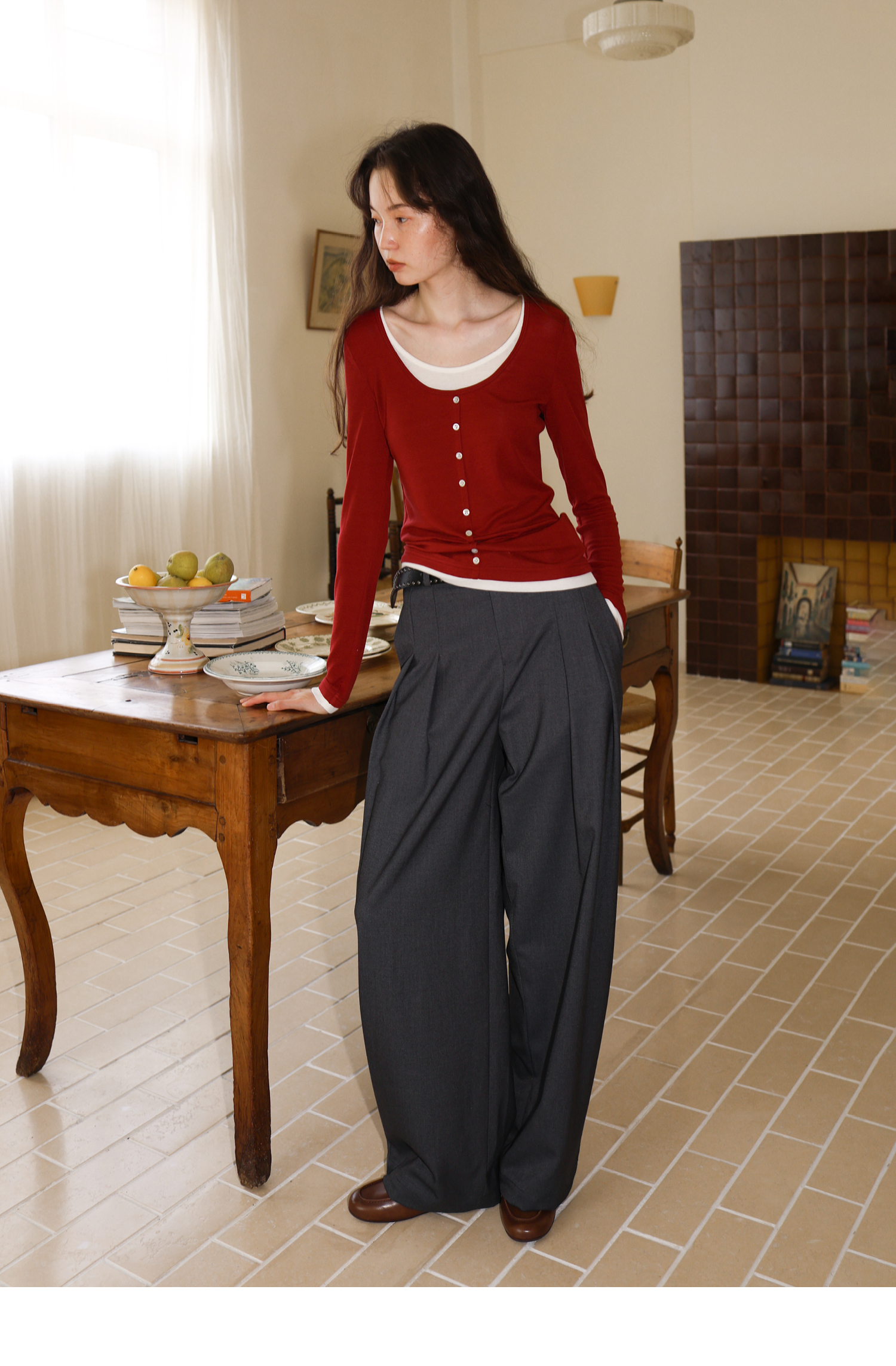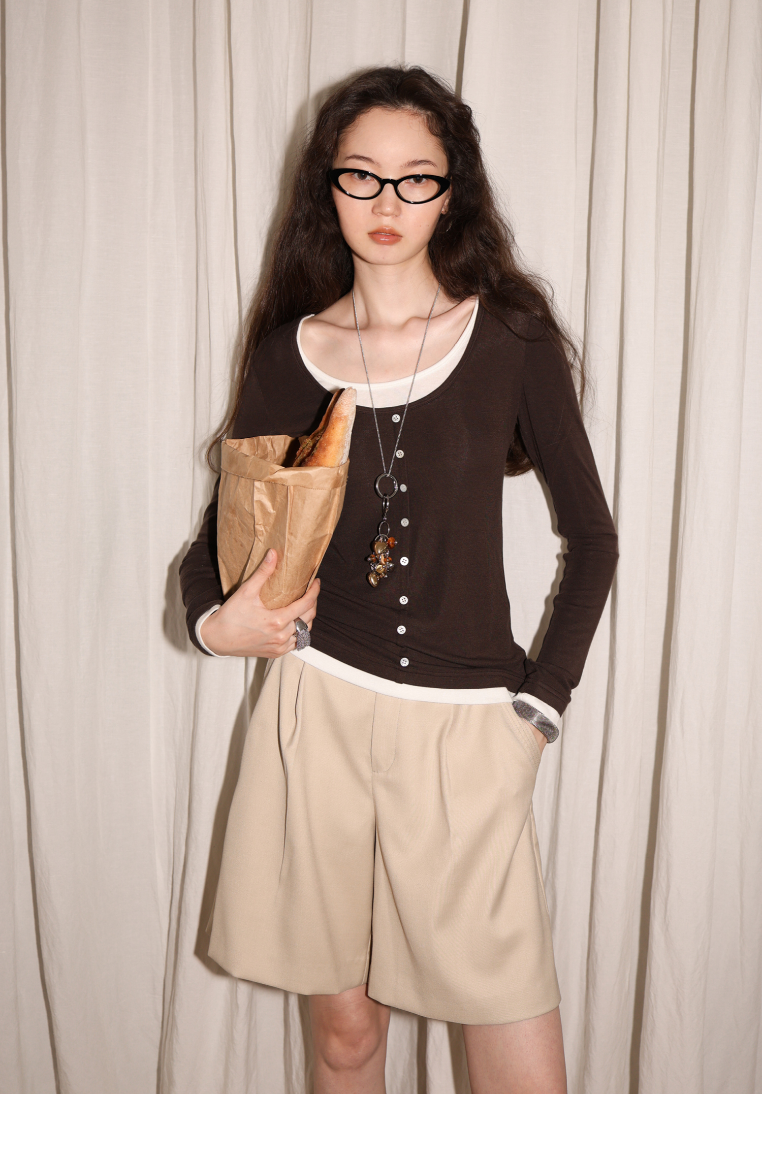 素舶 澳洲美丽诺羊毛莱赛尔亲肤撞色假两件修身显瘦长袖打底衫