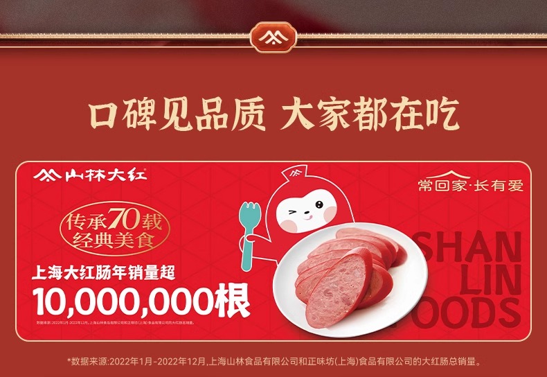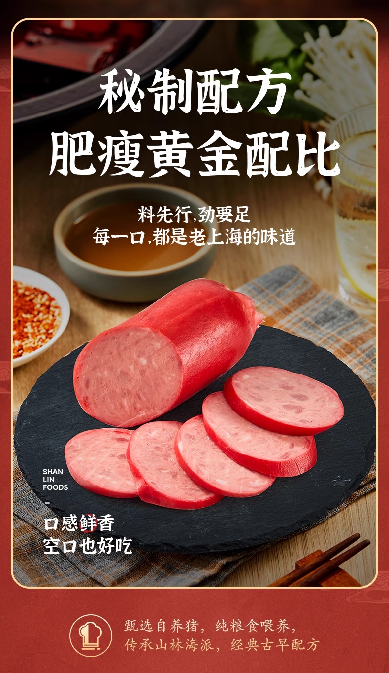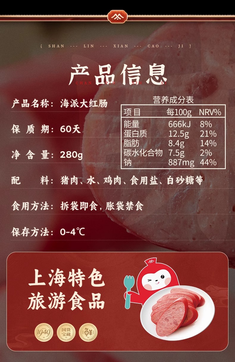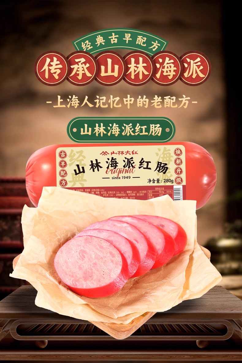 山林大红海派大红肠正宗上海特产风味烤肠肉肠即食火腿肠香肠280g