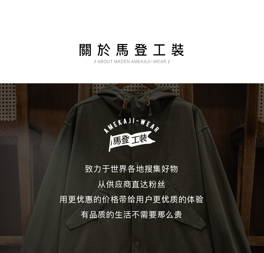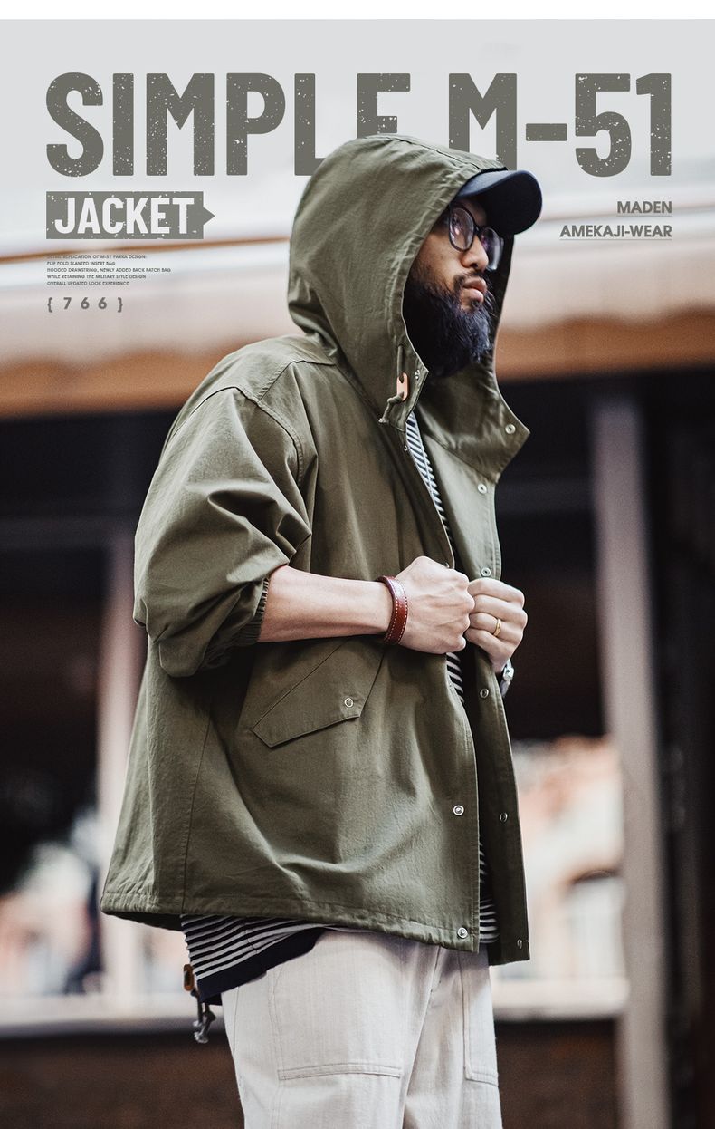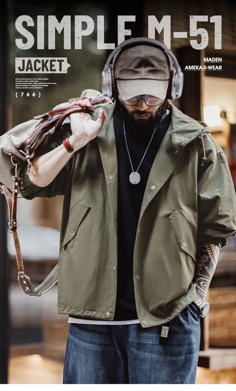 工装优选美式复古M51连帽夹克军事风宽松纯棉鱼尾短款外套男春季