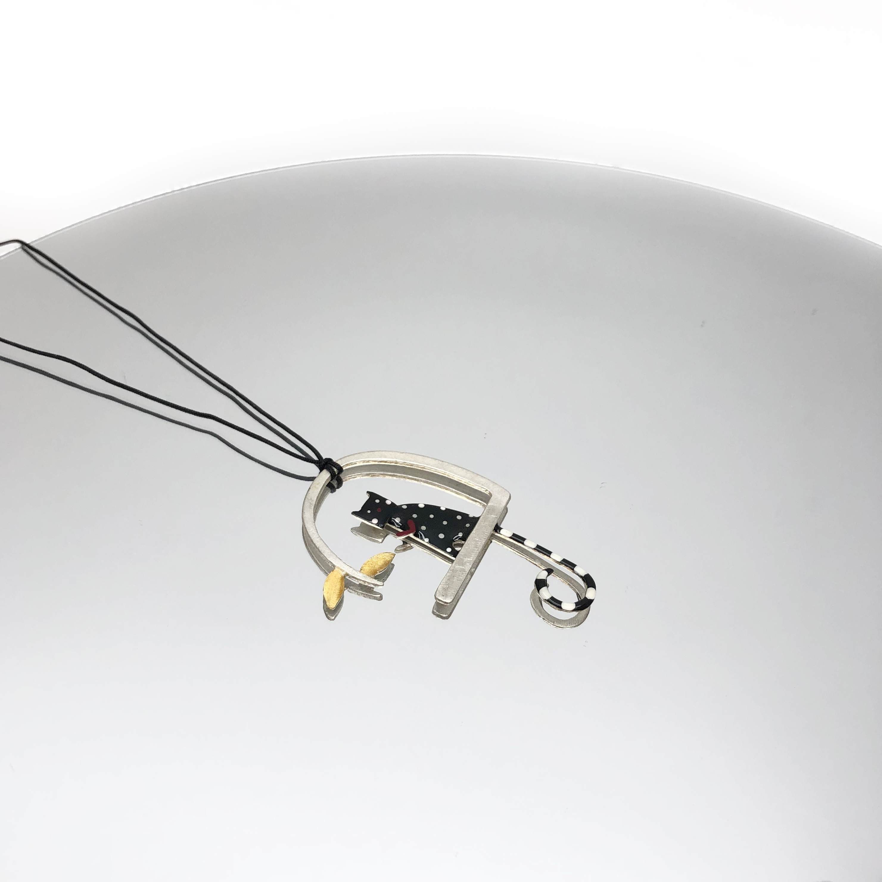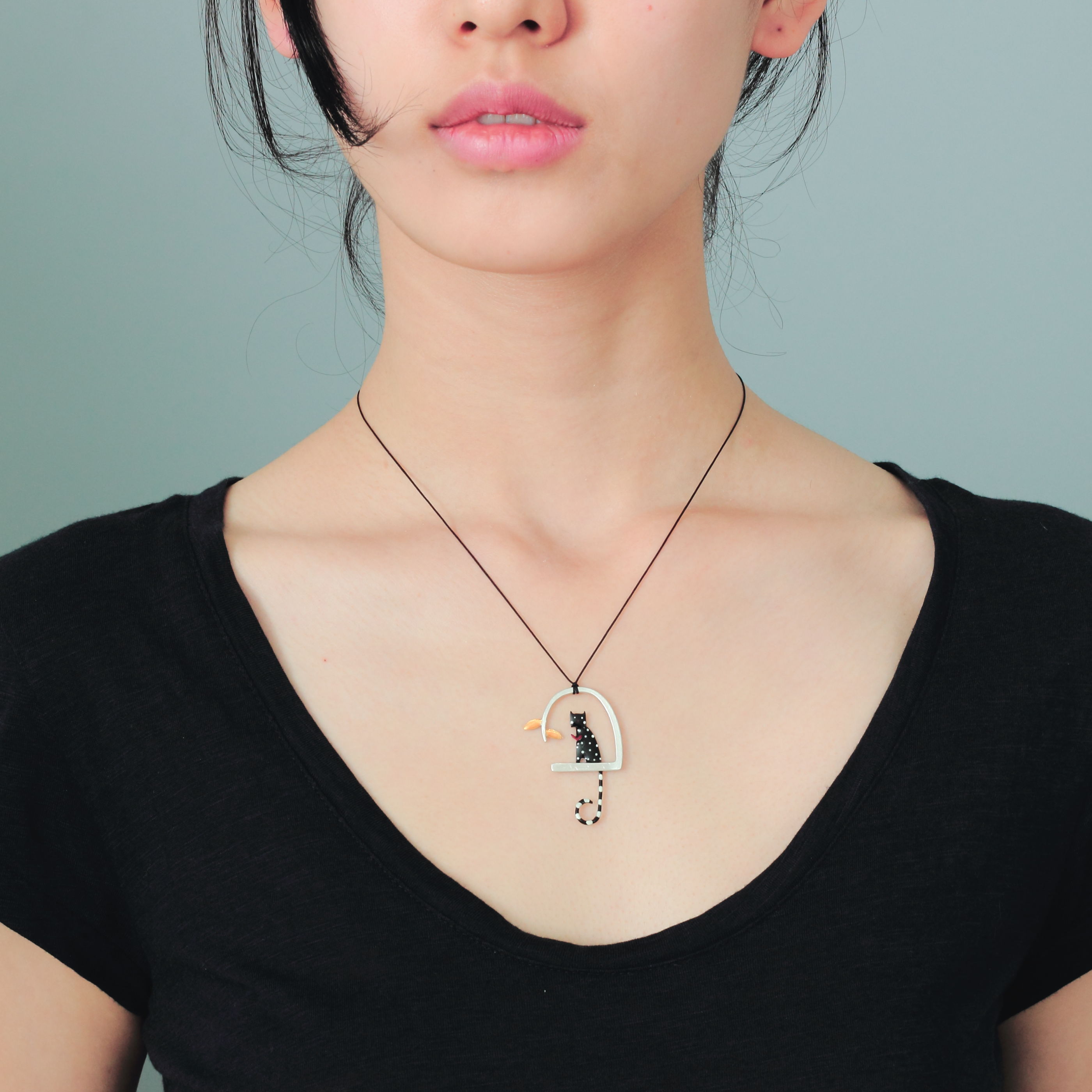 北京仓|Kiss the Frog-树枝上放哨的黑色波点小懒猫 项链(微瑕)[希腊设计师]