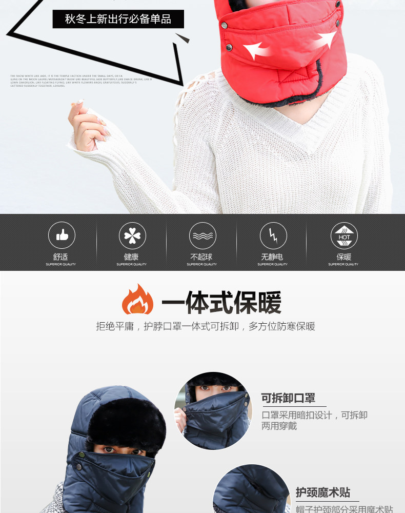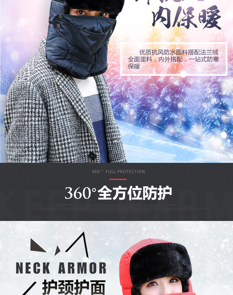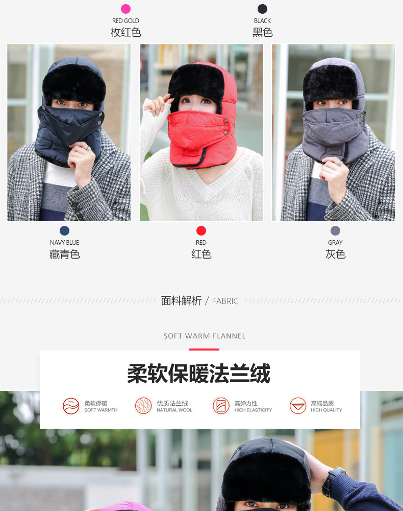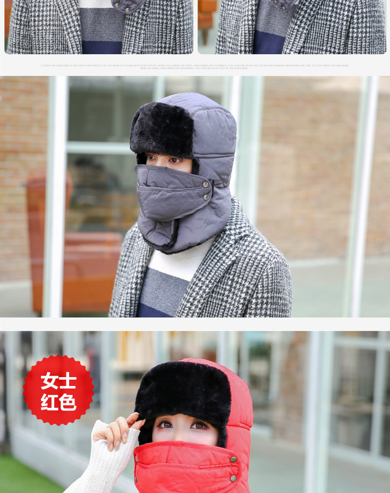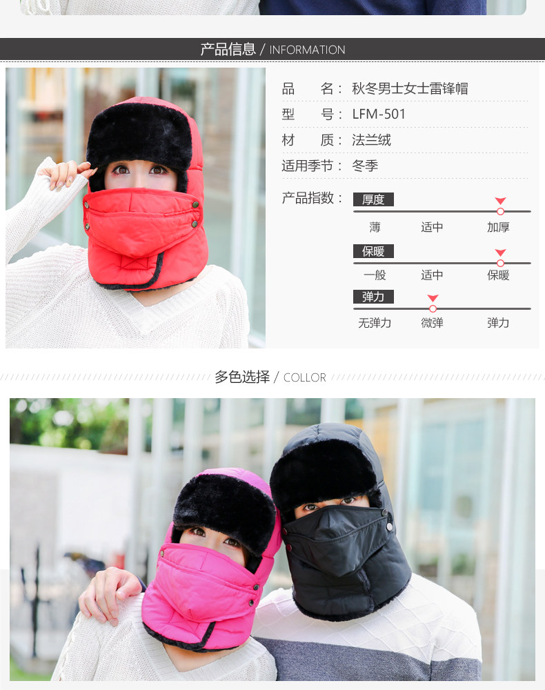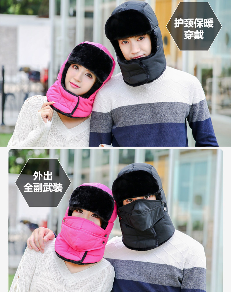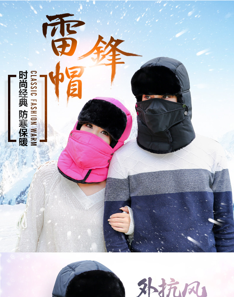 【优美】男女冬天户外骑车防寒中老年棉帽子雷锋帽