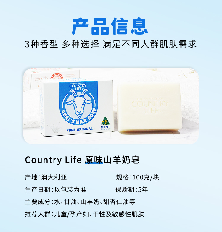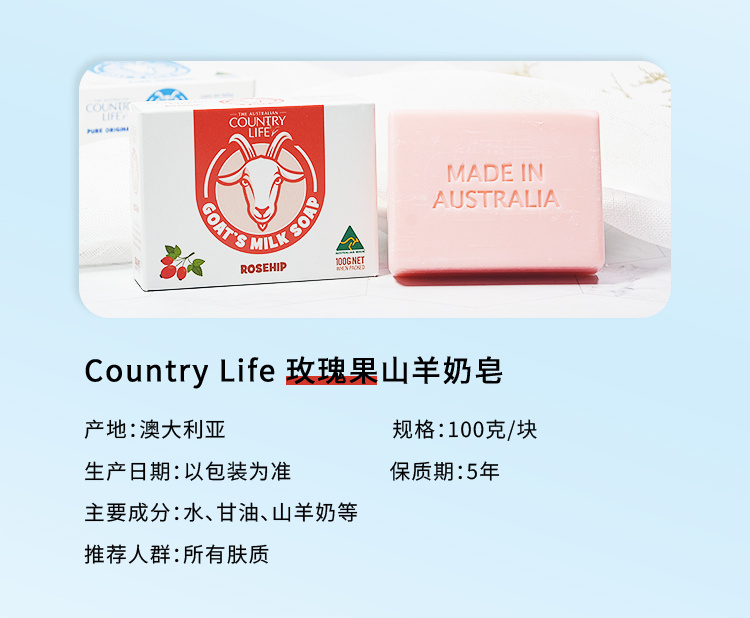【品名】澳洲 Country Life 乡间生活山羊奶皂 【规格】100g/块 【保质期】5年 【发货包装】独立包装盒 【发货地】江苏 【发货快递】韵达、圆通、中通 【不发货区域】新疆、西藏、海南、内蒙古、甘肃、宁夏、青海、港澳台 【发货时效】48-72小时,周末节假日顺延 |