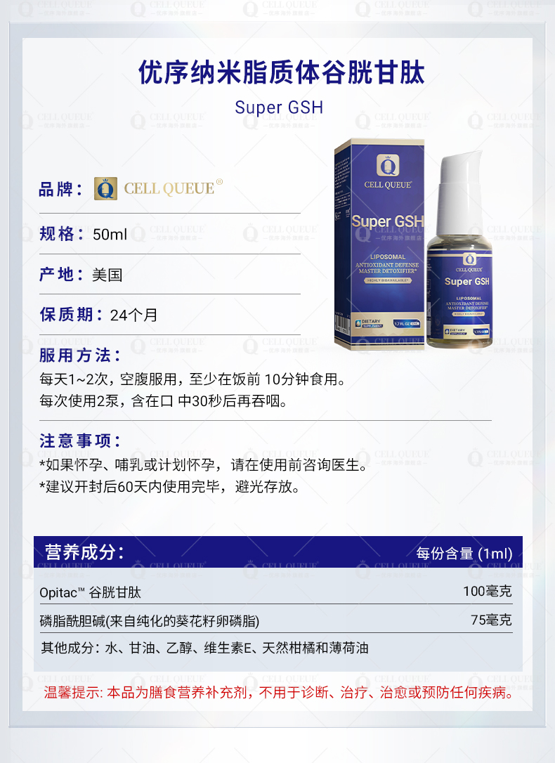 优序CELLQUEUE脂质体谷胱甘肽口服液50ml