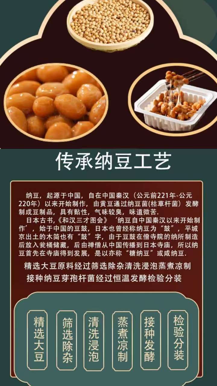 【生产方式】黄豆、黑豆为有机种植,加入饮用水和纳豆 菌发酵,加工过程中不使用任何添加剂。