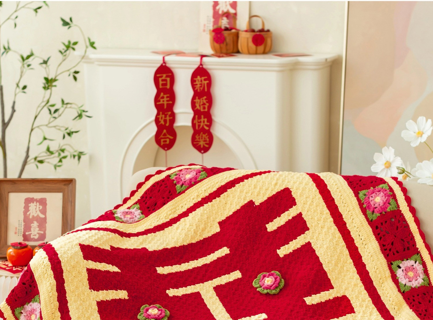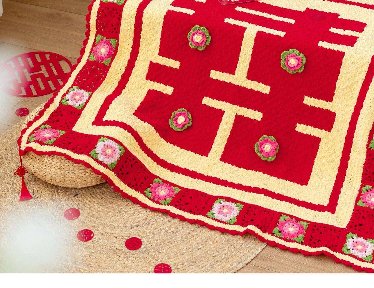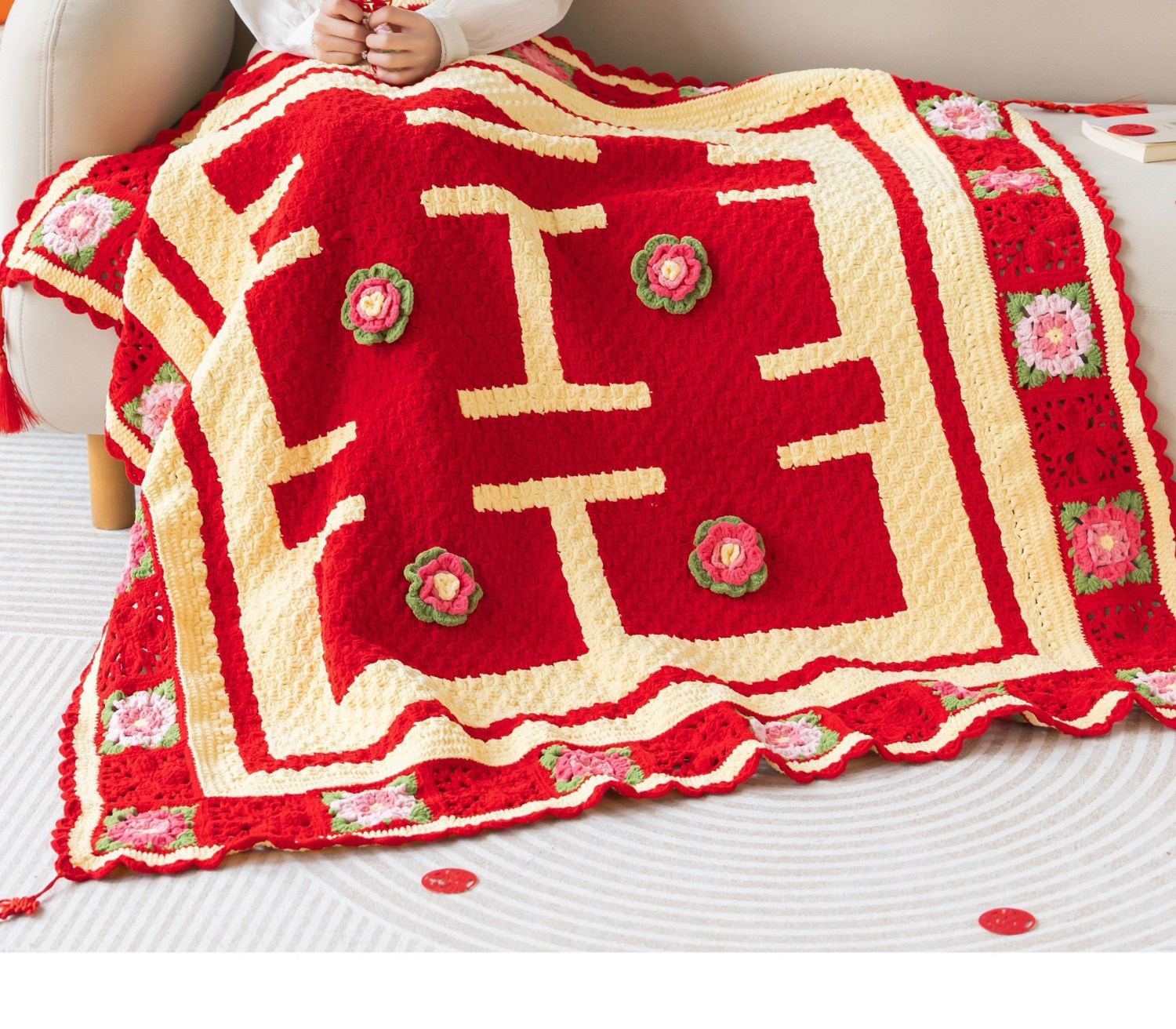 苏苏姐家欢囍盖毯手工diy编织钩针云小朵毛线团自制毯子材料包