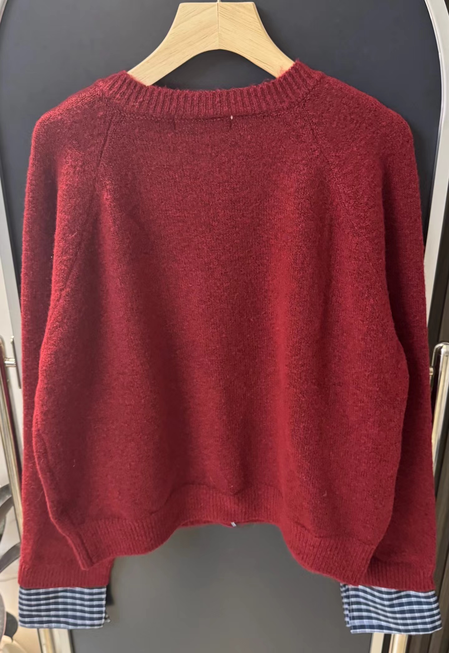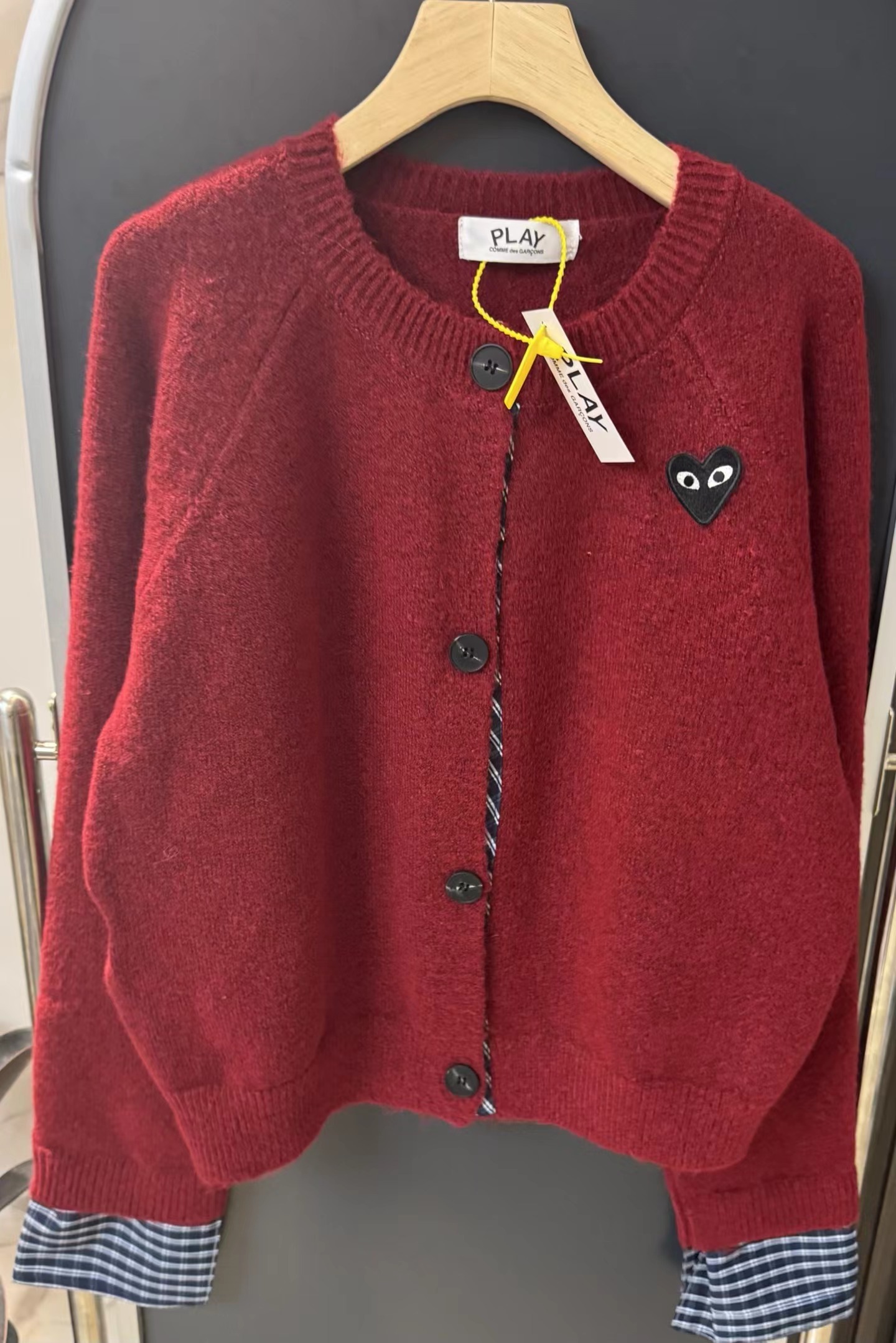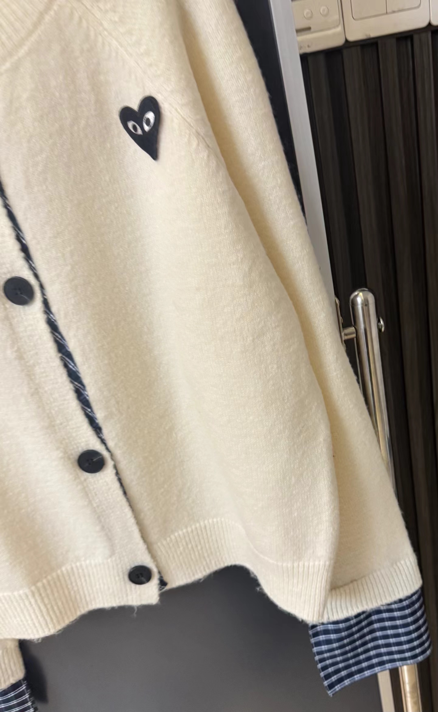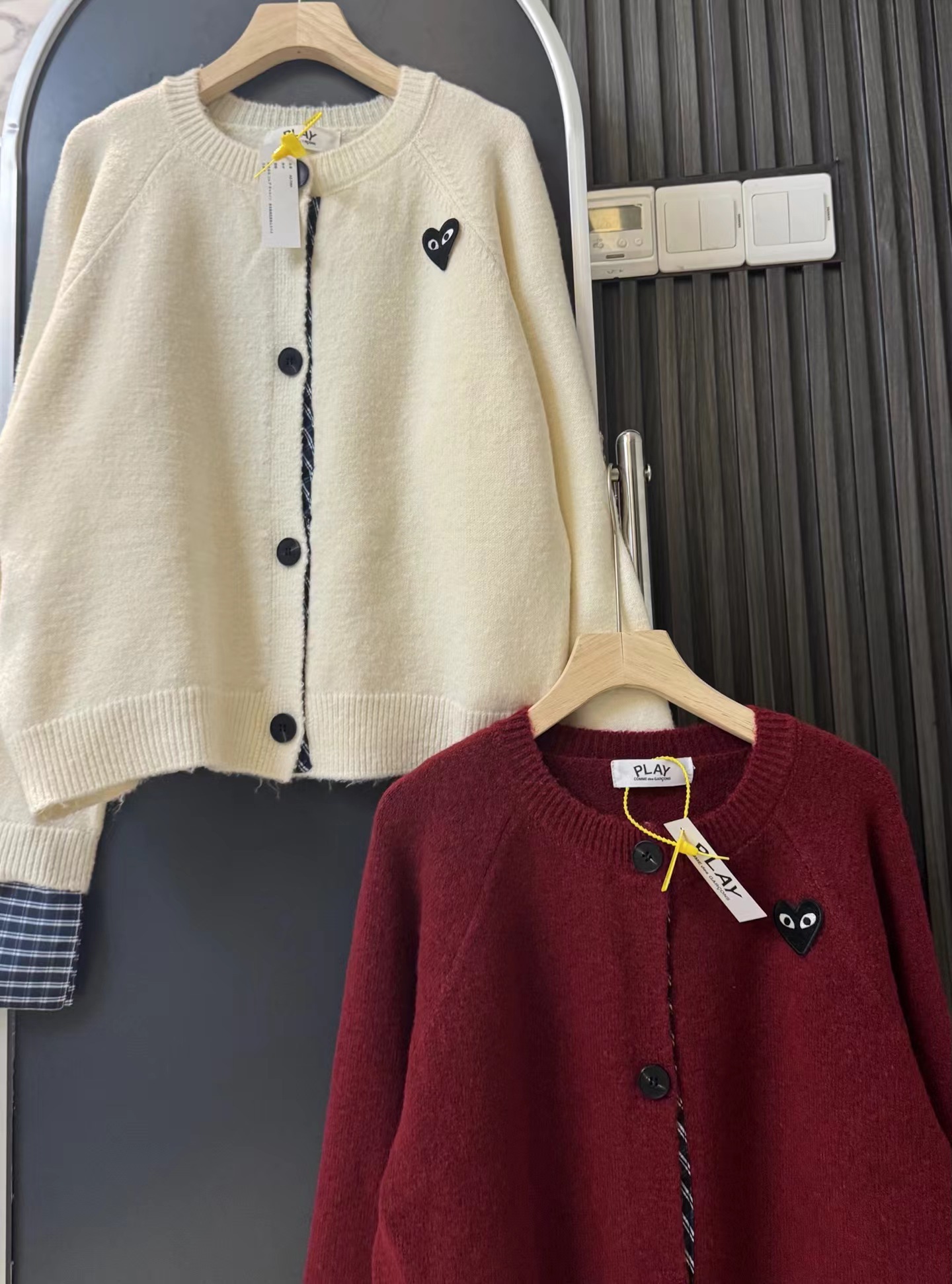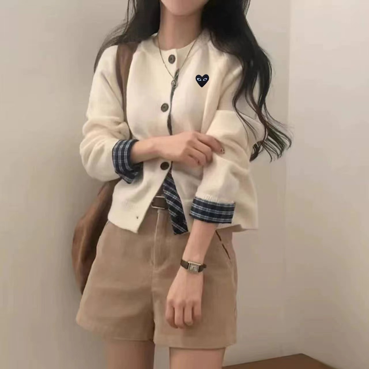 撞色格纹袖口针织开衫,是自带日系松弛感的百搭单品。基础色调干净温柔,袖口拼接的藏青格纹是点睛之笔,让简约版型多了复古学院感;胸口的黑色爱心刺绣小巧精 致,为整体增添了俏皮感;单排扣圆领设计利落大方,短款版型能优化身材比例,显高又显瘦。采用软糯亲肤的针织面料,触感细腻,穿着舒适不扎身,宽松的落肩袖设计对各种身材都很包容,慵懒又藏肉。单穿搭配高腰阔腿裤或百褶裙,轻松打造学院风;叠穿在风衣、大衣里面作为内搭,也能丰富整体层次,是春秋冬三季都能穿的实用款。