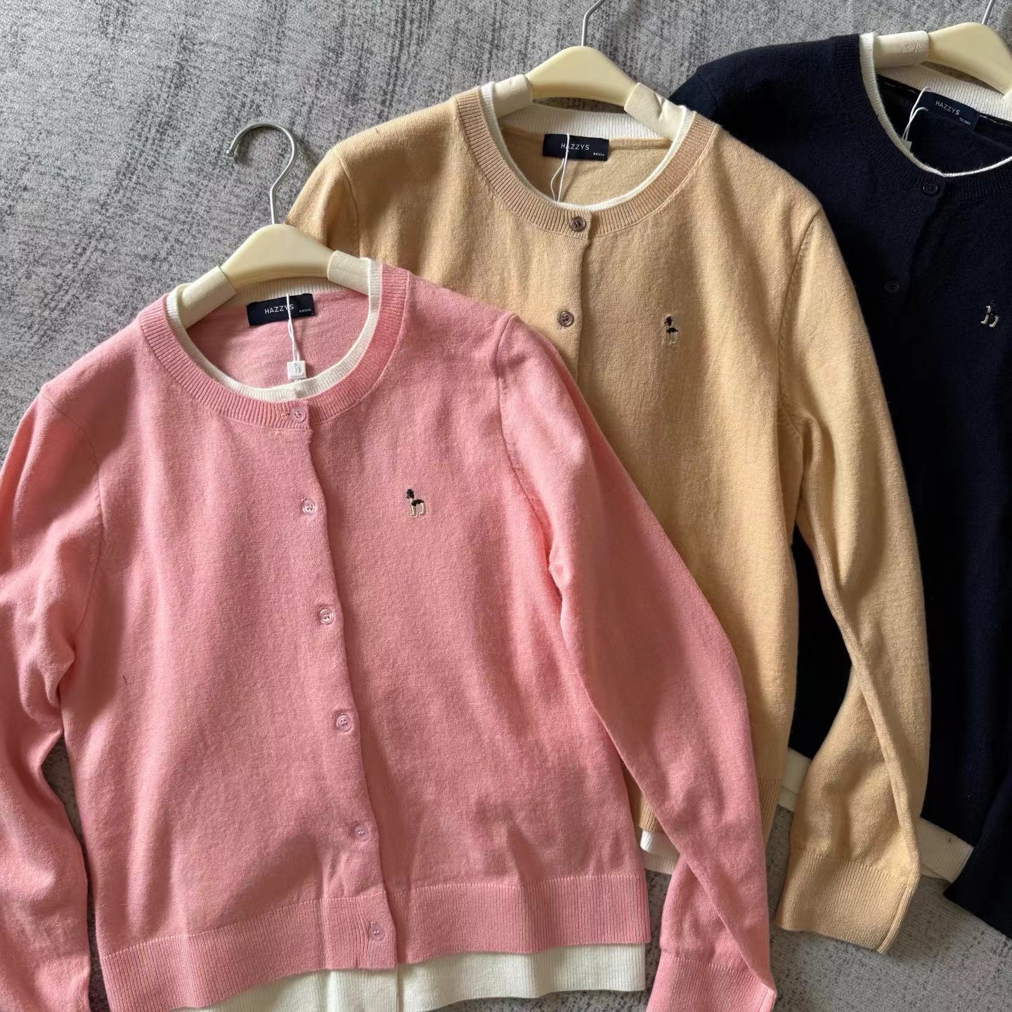 长袖羊毛衫女士纽扣开衫秋季上衣时尚通勤针织衫 让我们拒绝烂大街的款式好吗 有了这件羊毛衫可打底,可外穿,真的会拯救一整天的慵懒感。棉羊毛的混纺材质,手感细腻,柔软又服帖。jing致的狗狗logo刺绣,更是点睛之笔。质感这块儿轻松拿捏~合体的剪裁,配合清晰的肩颈线条,穿出jing致girl的知性优雅!!假两件的设计,单穿也能穿出范儿。让我们姐妹们轻盈入秋,告别繁重!!