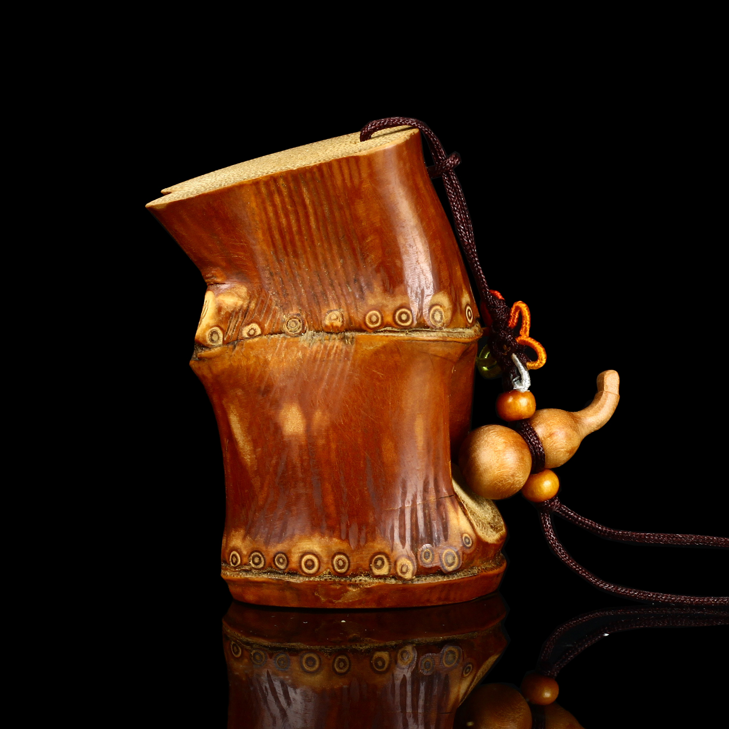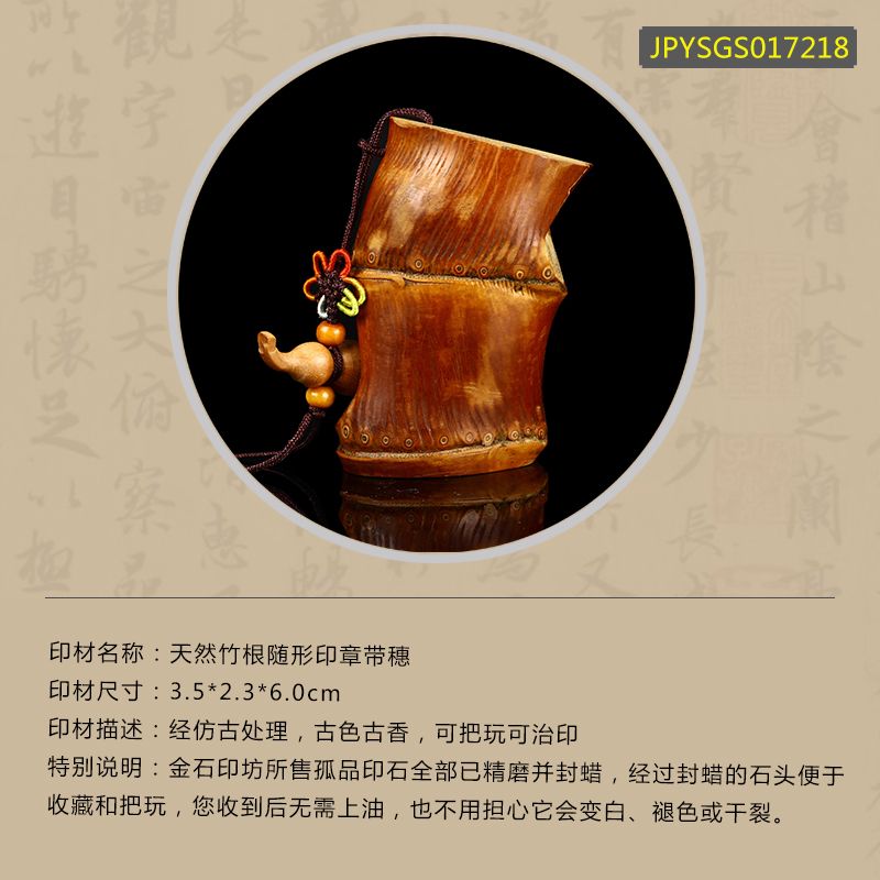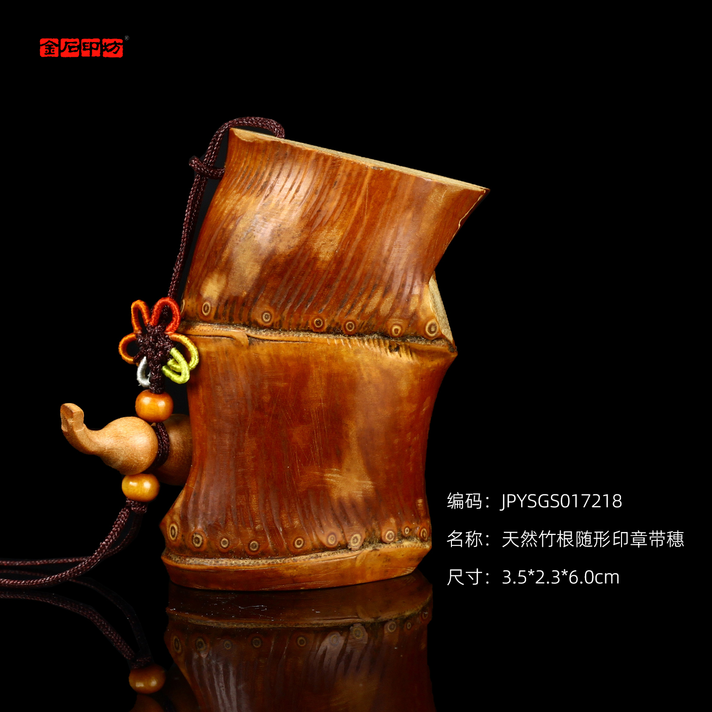孤品017218天然竹根随形印章带穗-3.5*2.3*6.0cm