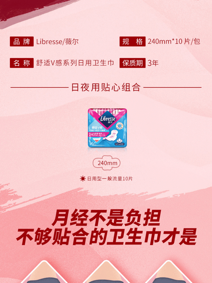 薇尔舒适V感日用极薄棉柔卫生巾240mm*10片*2 易好