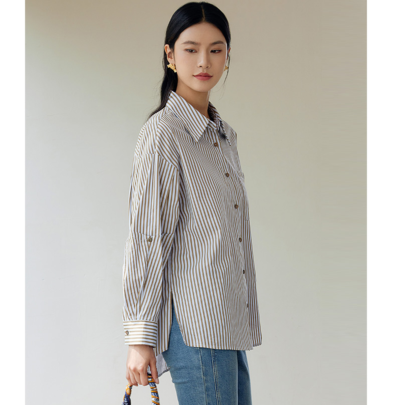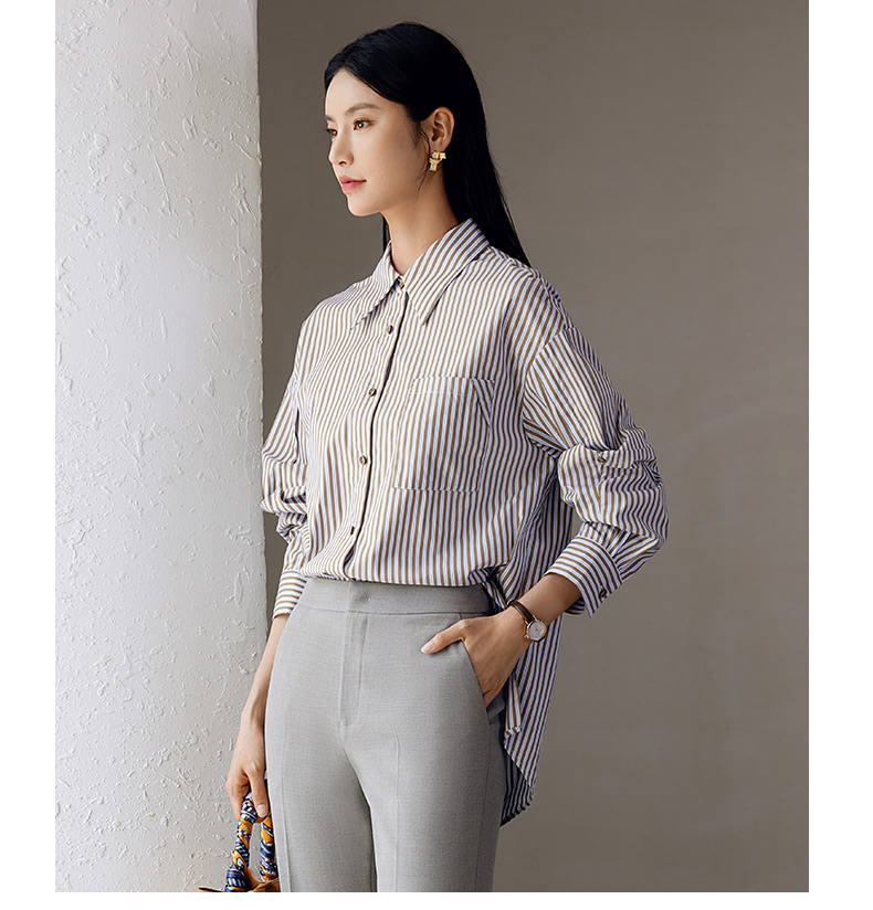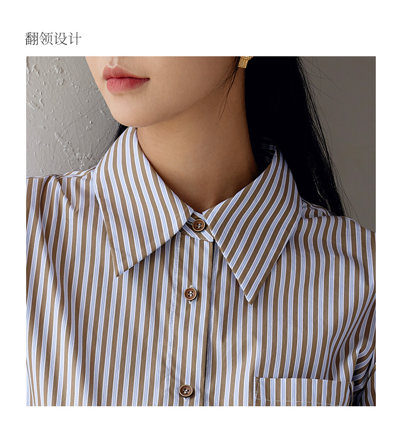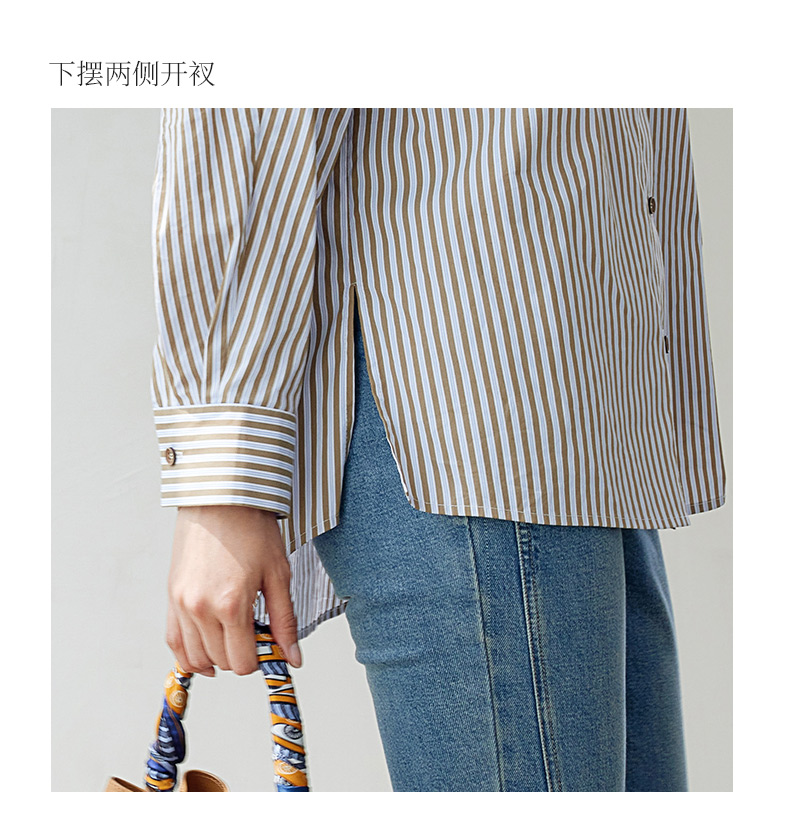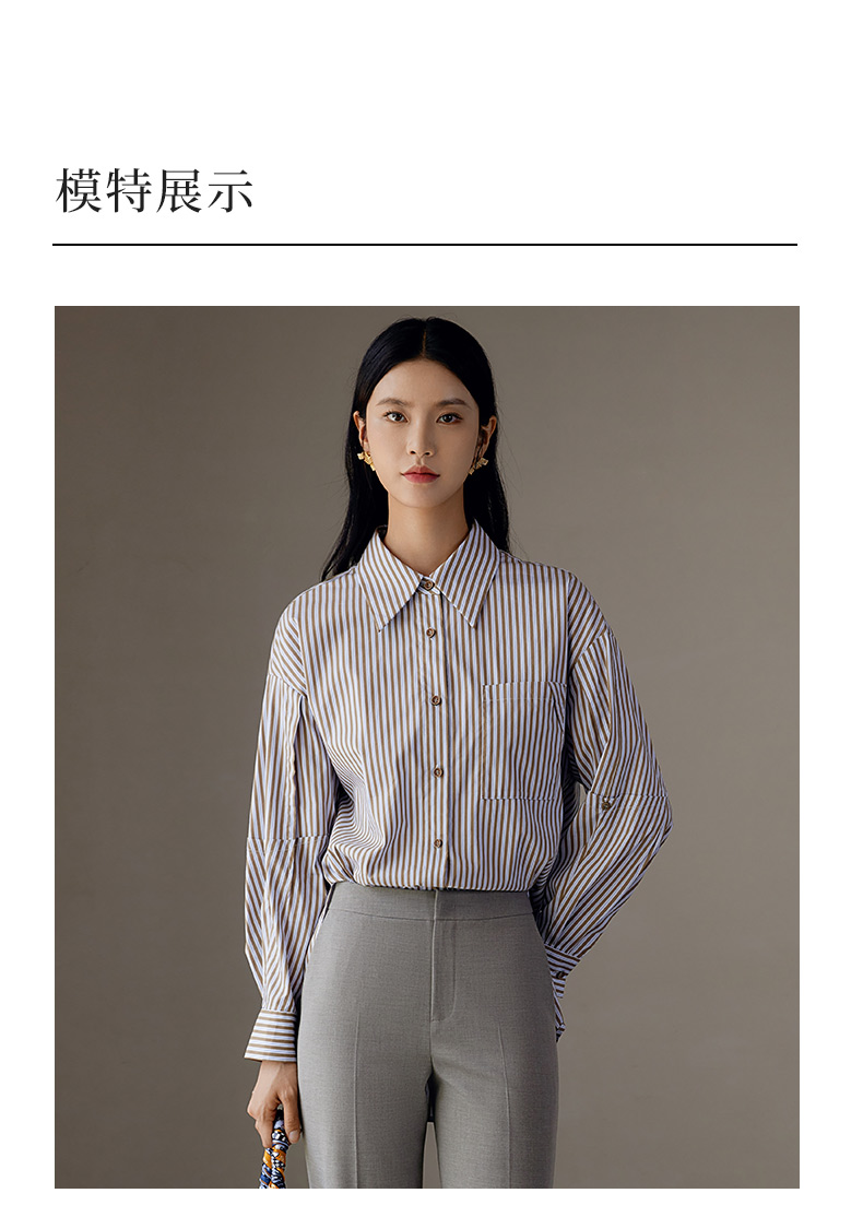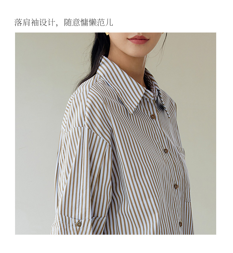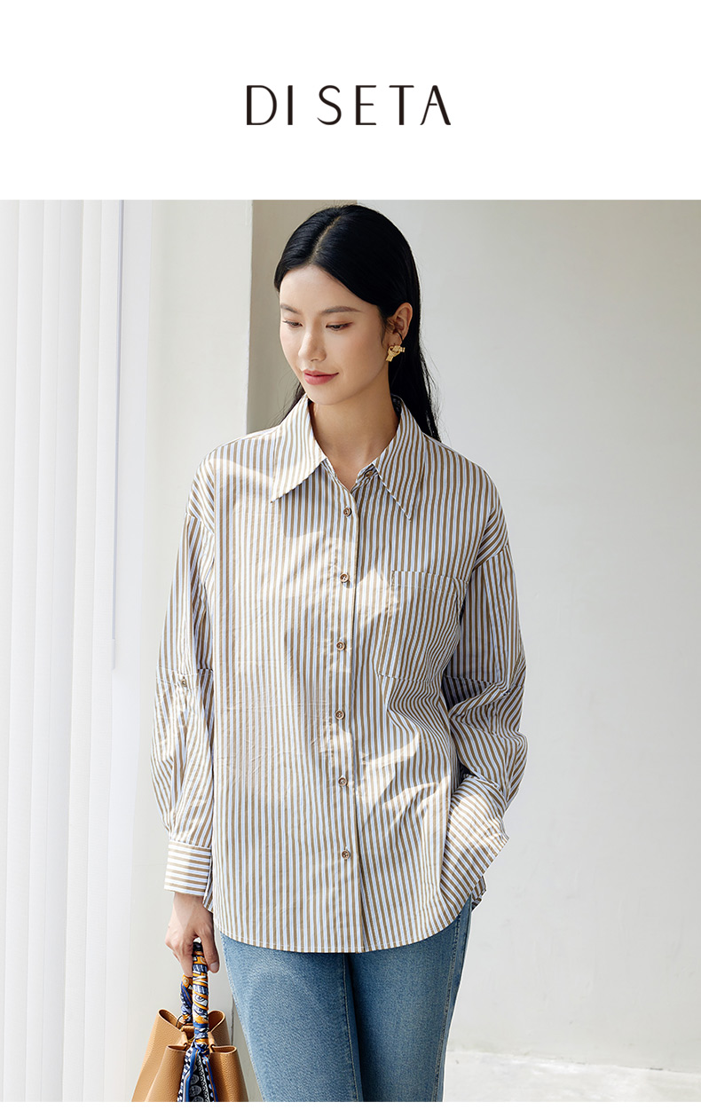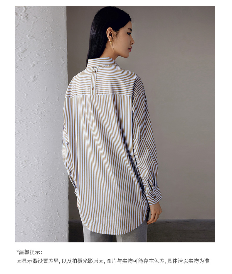 玳莎设计感条纹宽松衬衫女秋季新款百搭休闲慵懒风长袖上衣 EC31307