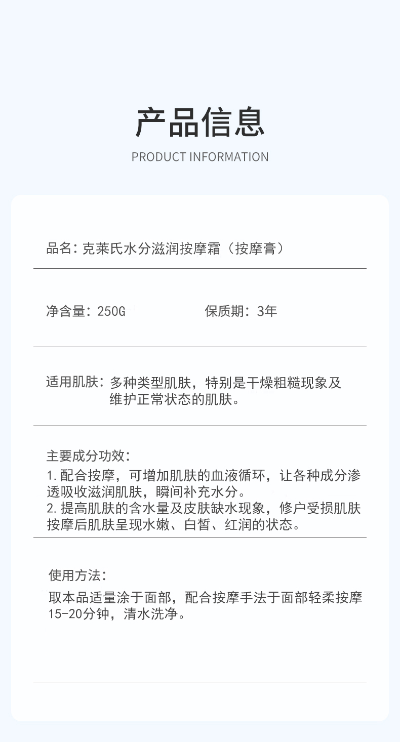 克莱氏水分滋润按摩霜250g补水滋润