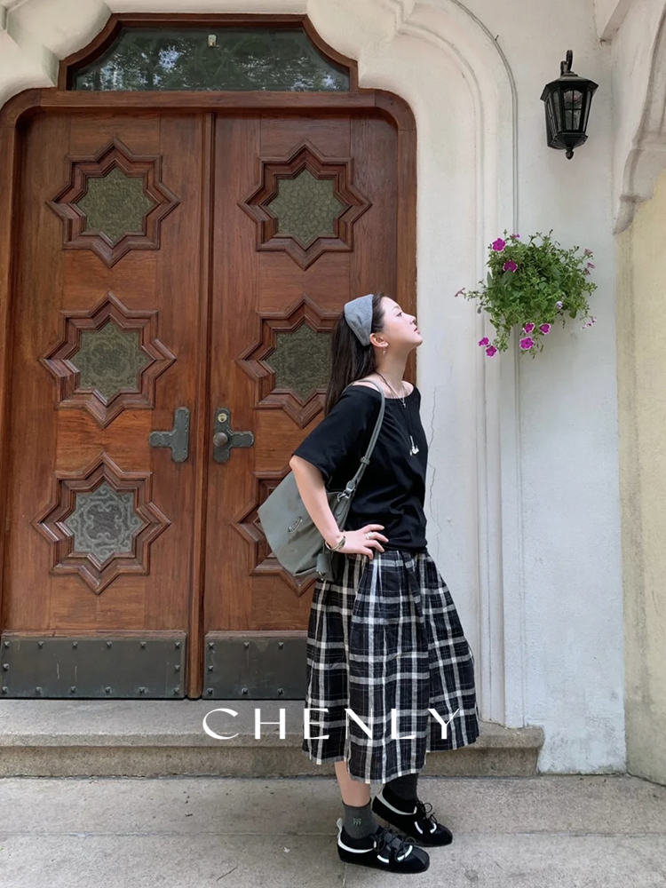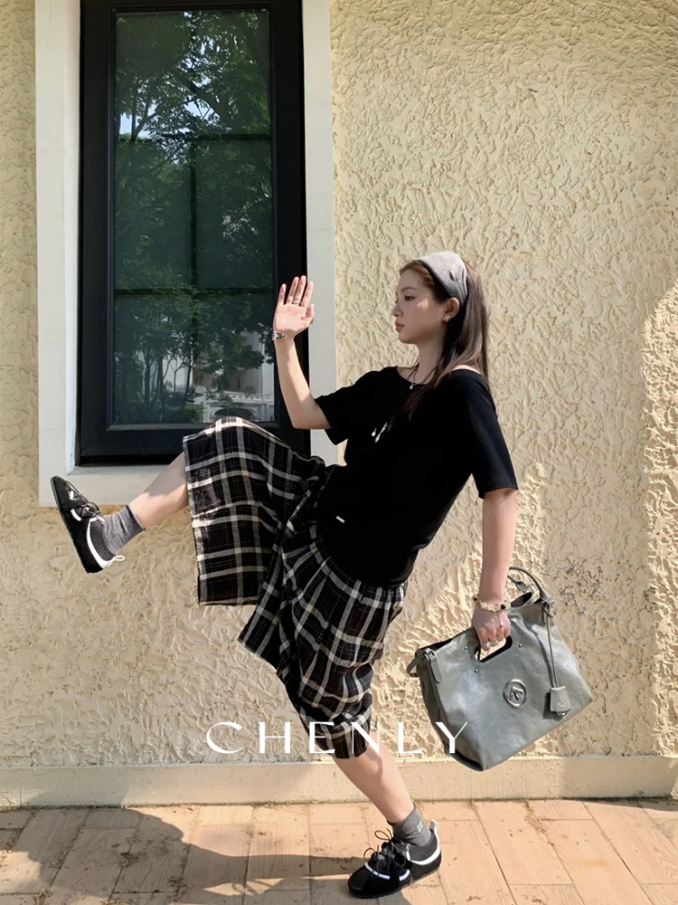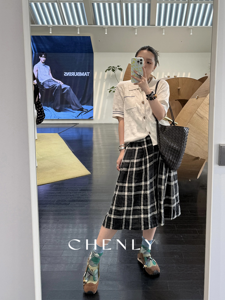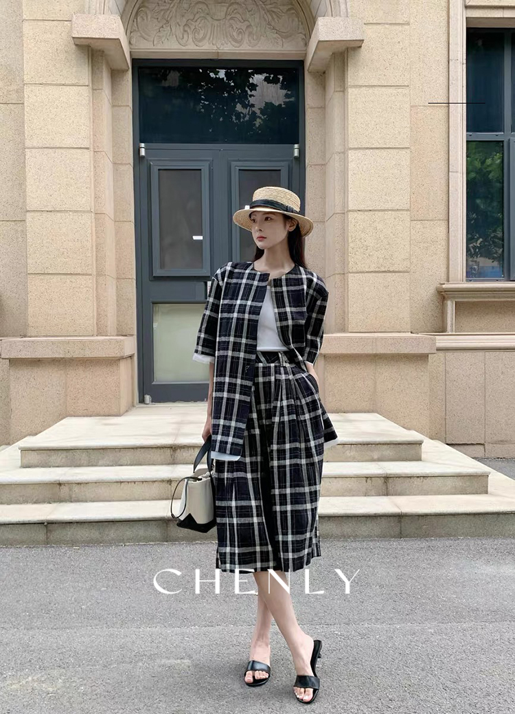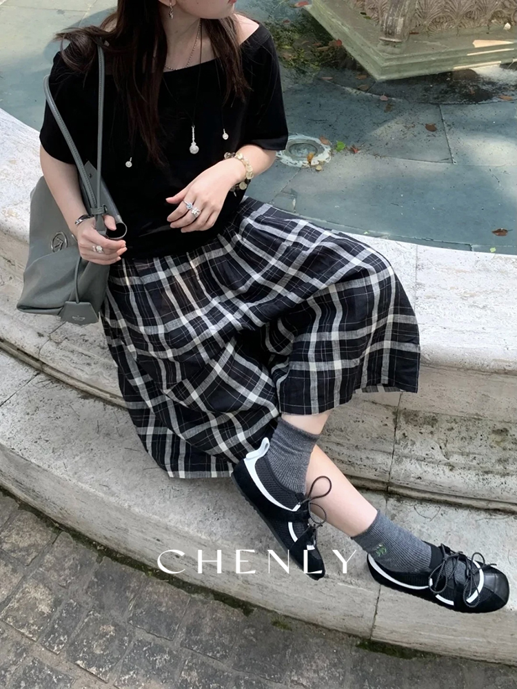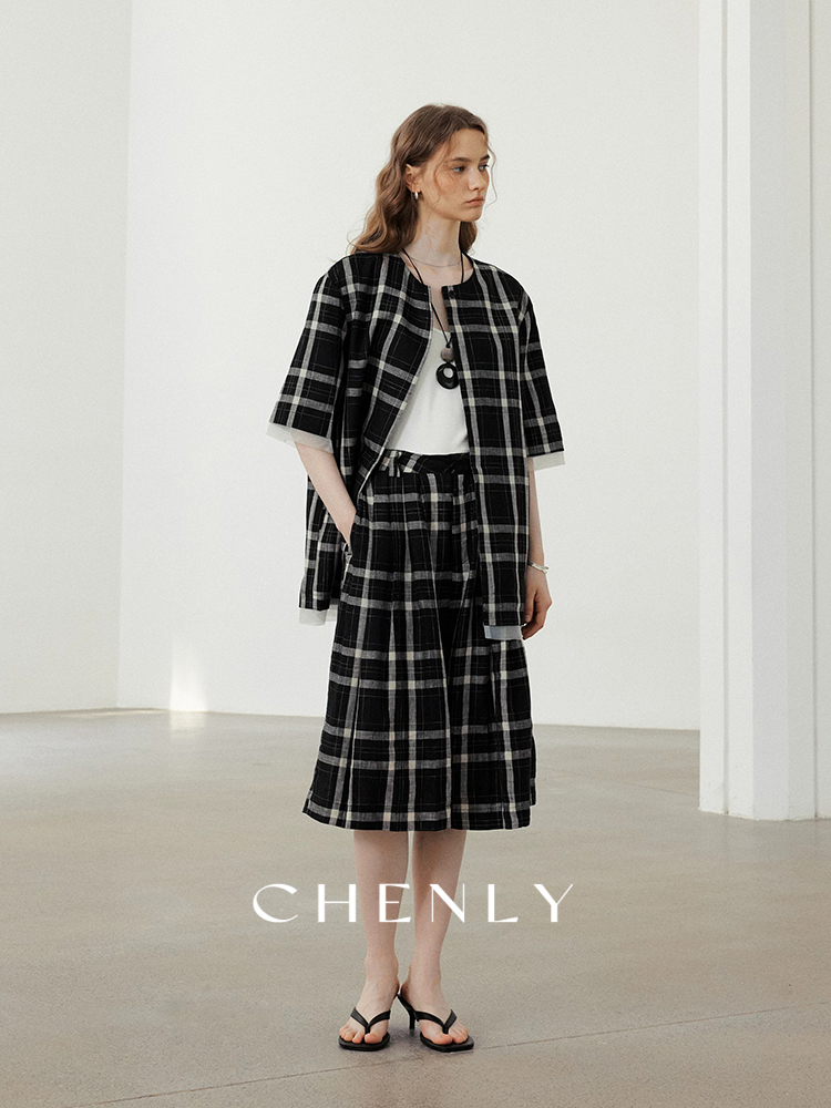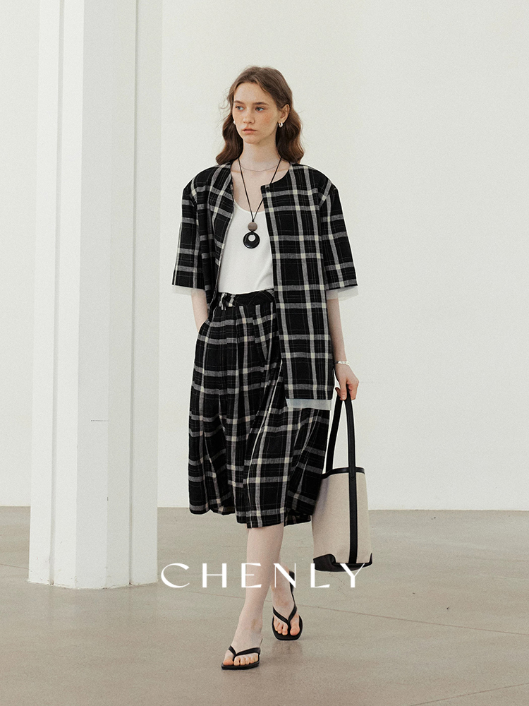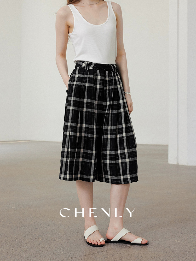 不退不换!尘衣|25春夏高腰A字立裁宽松格子阔腿裤