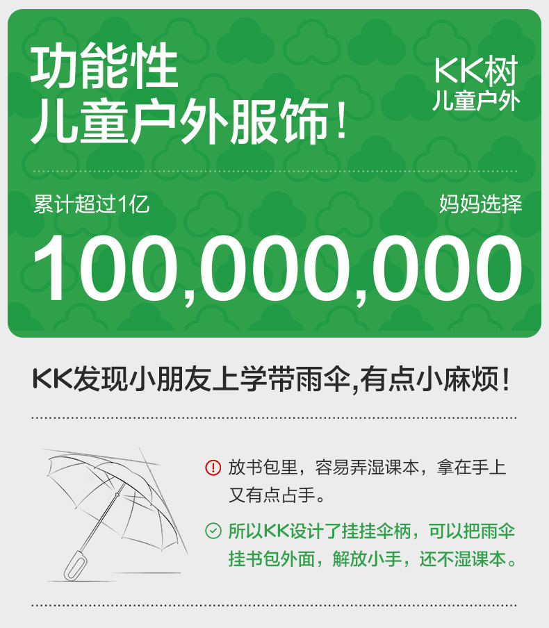[屁侠推荐]KK树儿童雨伞 防晒晴雨两用挂挂伞 男童女孩全自动折叠伞小彩虹挂挂伞