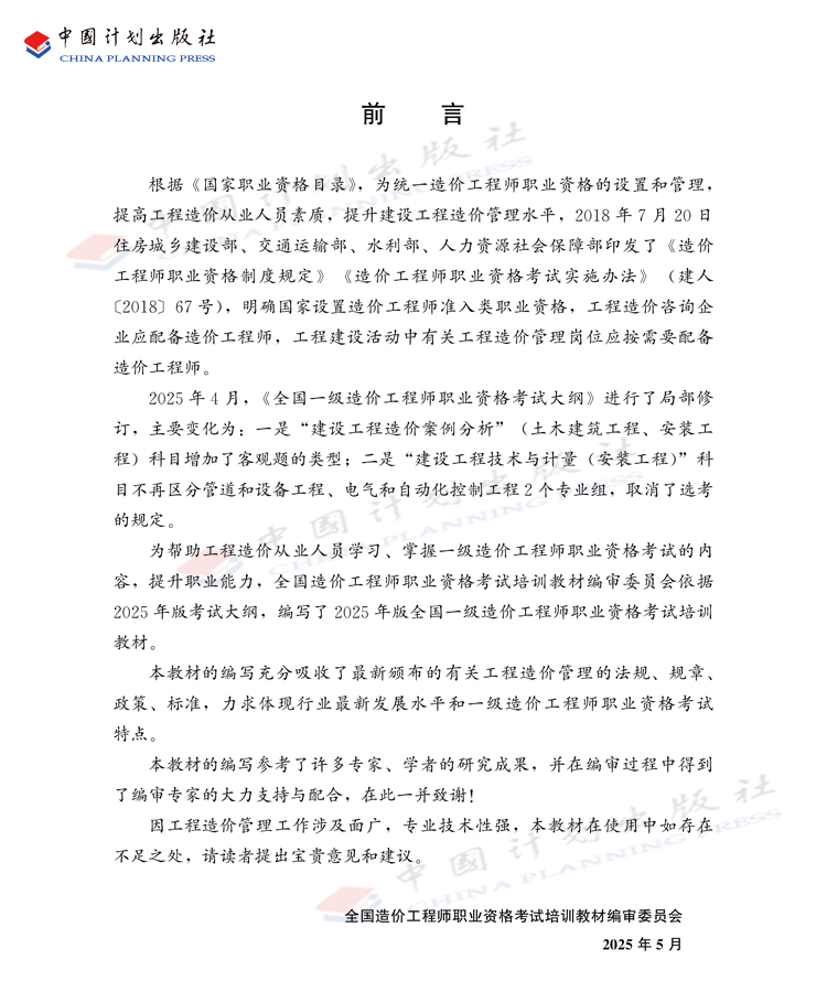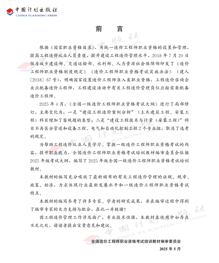 2025年全国一级造价工程师执业资格考试教材--土建/安装专业(套装及单本)