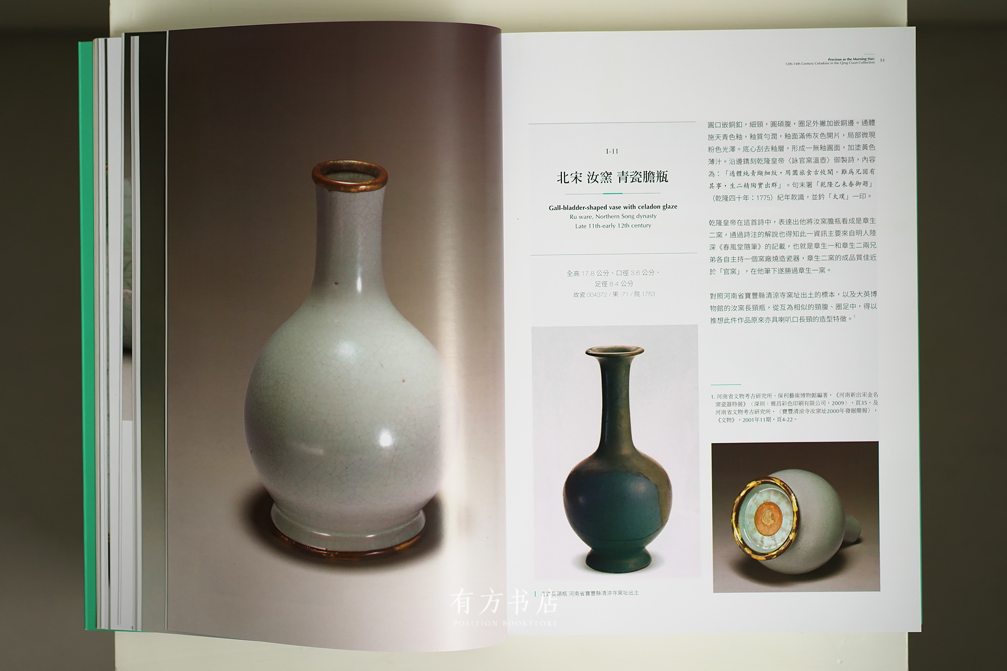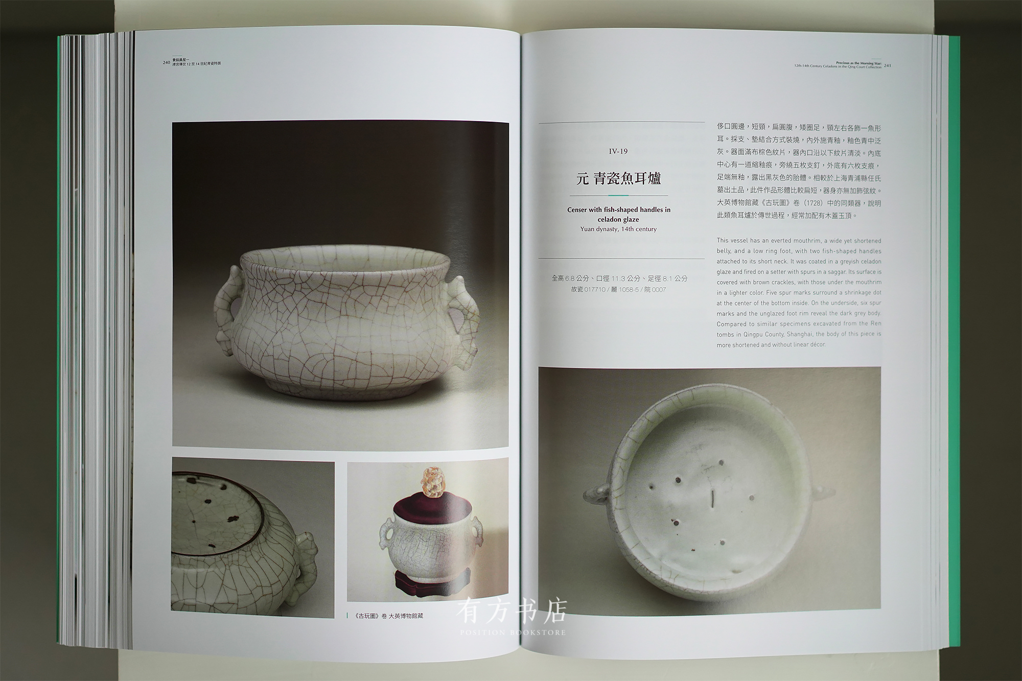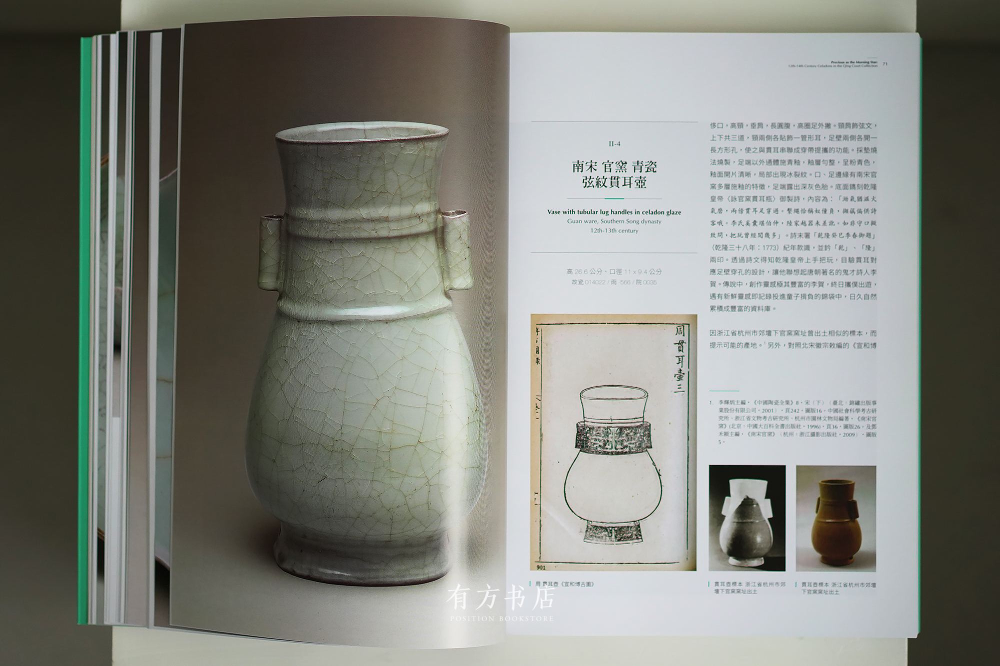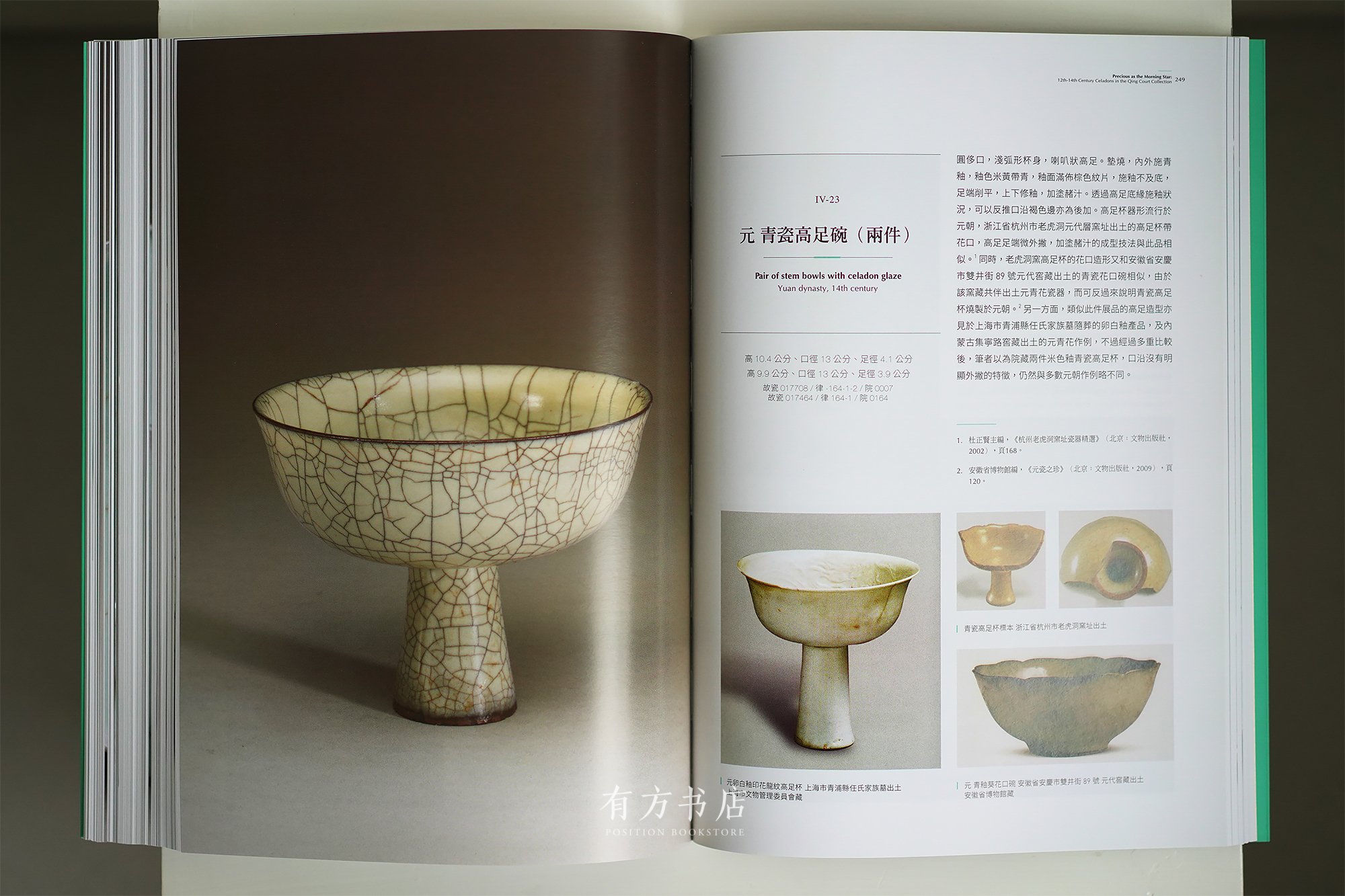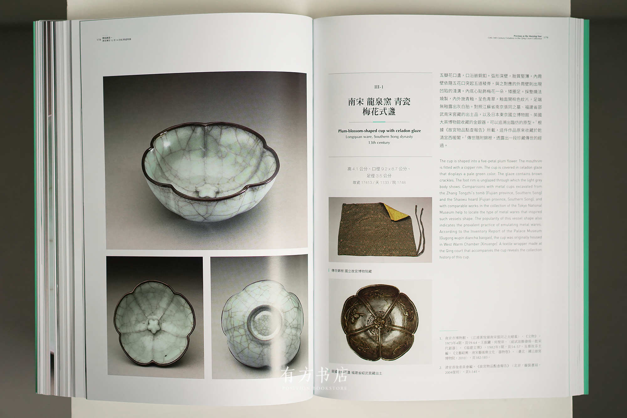 书中另附一篇专论“清宫传世宋元青瓷及相关问题”,针对学界对宋代青瓷存在的许多问题进行一一解答。因此本图录可视为一本结合了展览与研究实力的出版物,非常值得对宋元青瓷感兴趣者收藏。