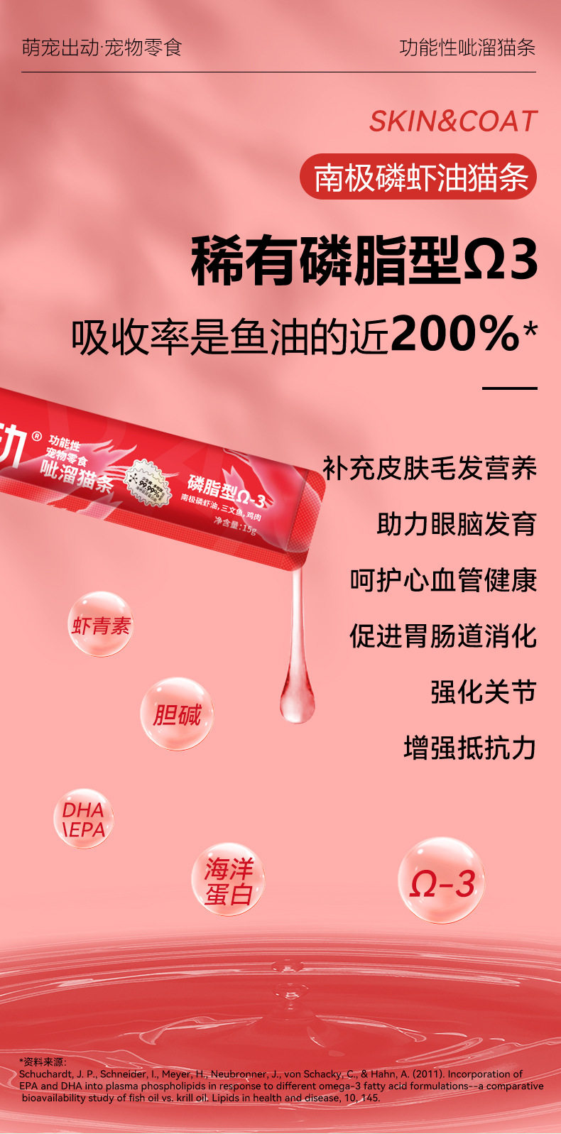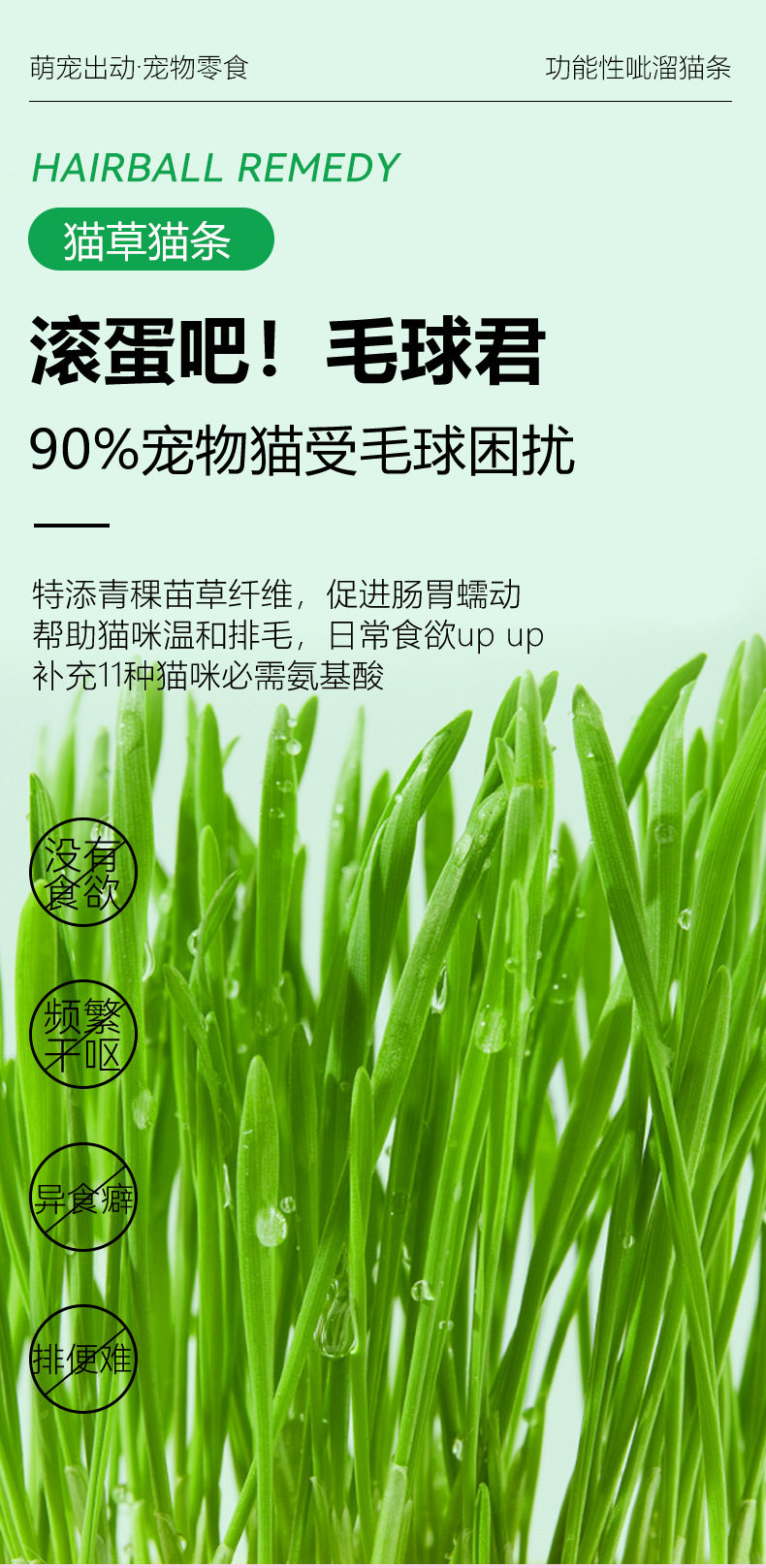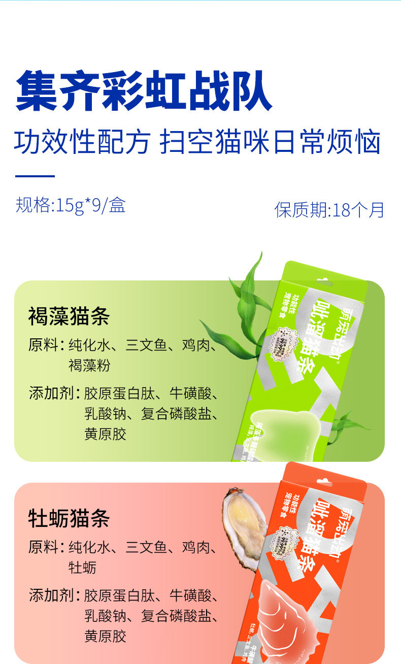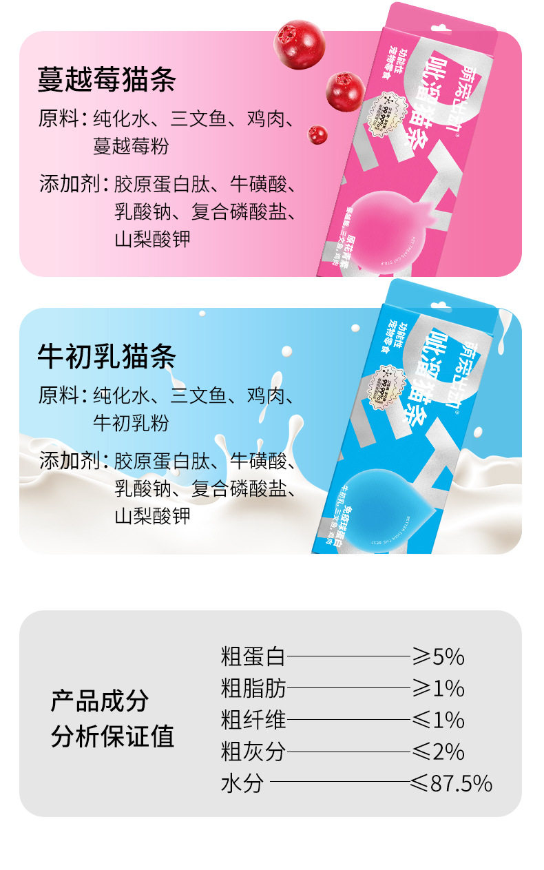 萌宠出动呲溜猫条功能性猫草去毛球美毛亮肤猫咪湿粮零食