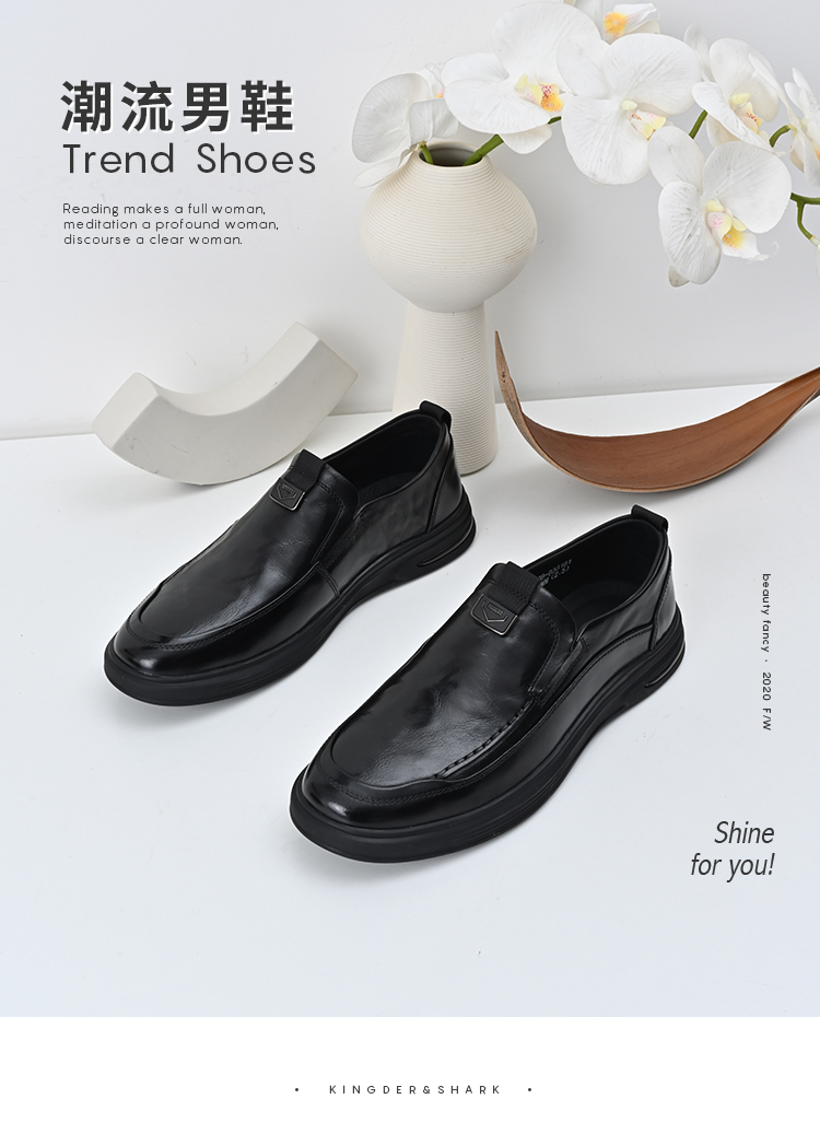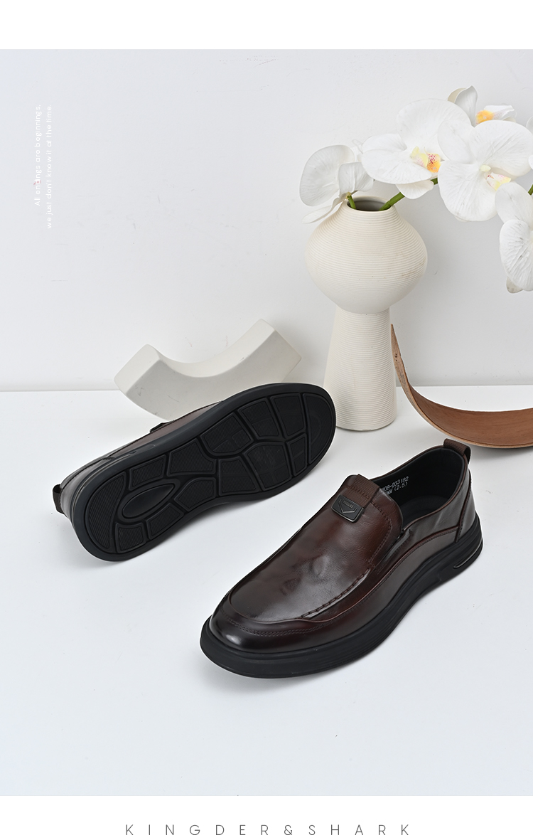 经典鲨2024年秋季新款男士一脚蹬平底舒适正装商务皮鞋KW08-D33181