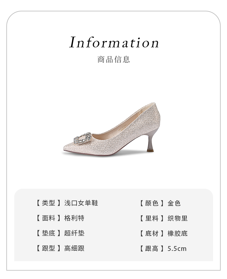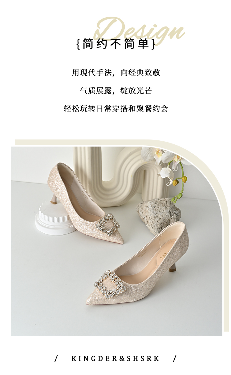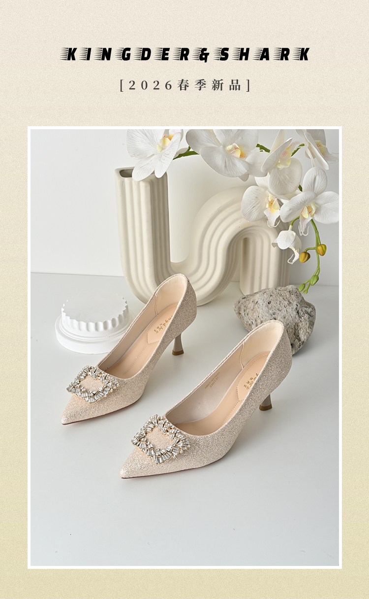 经典鲨2026年春季专柜新品优雅尖头5.5cm高细跟婚鞋高跟鞋女KW87-617031