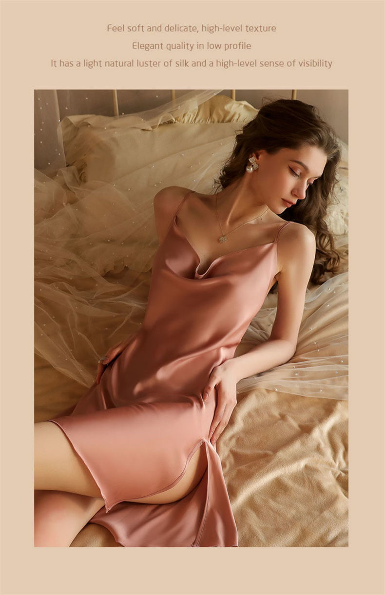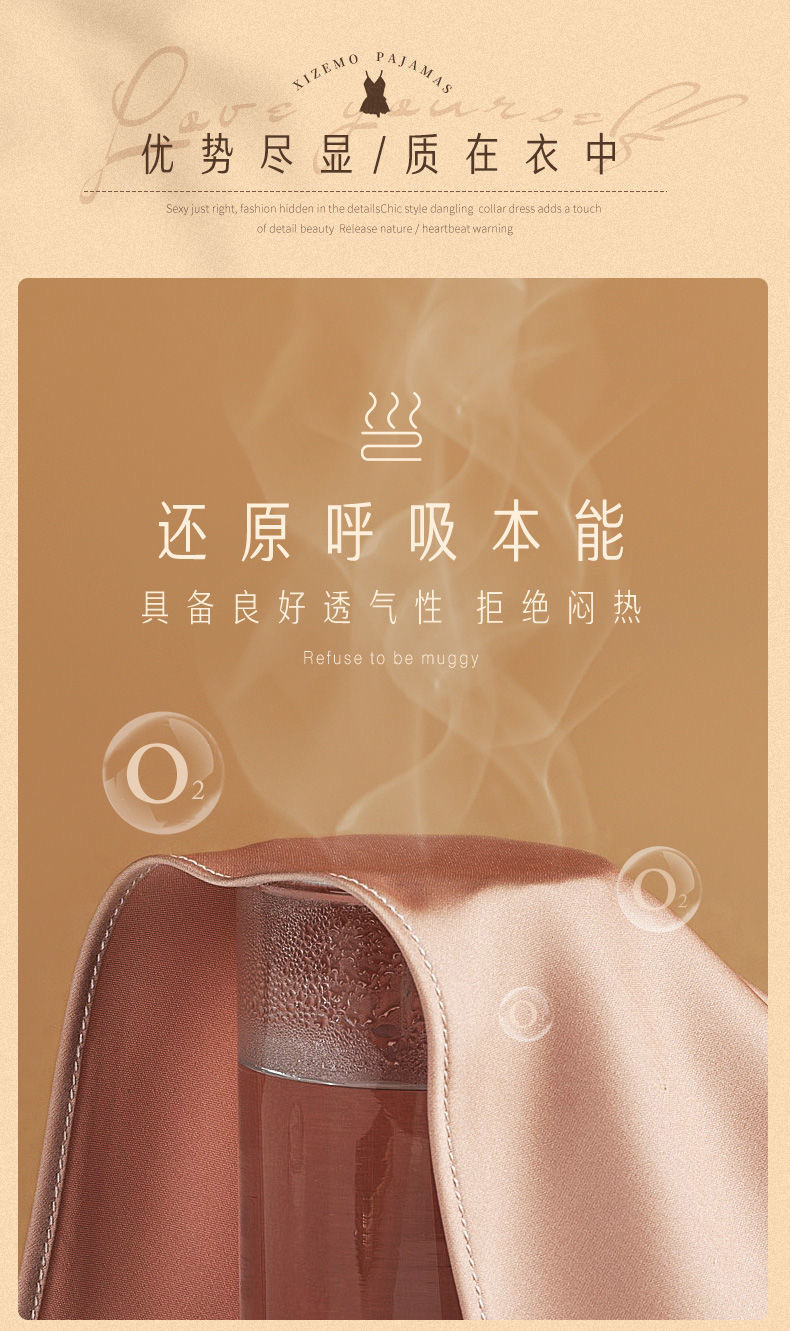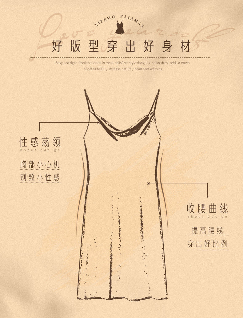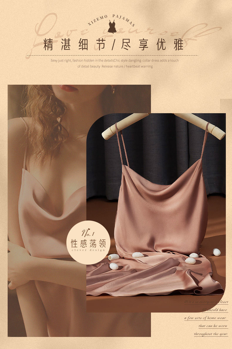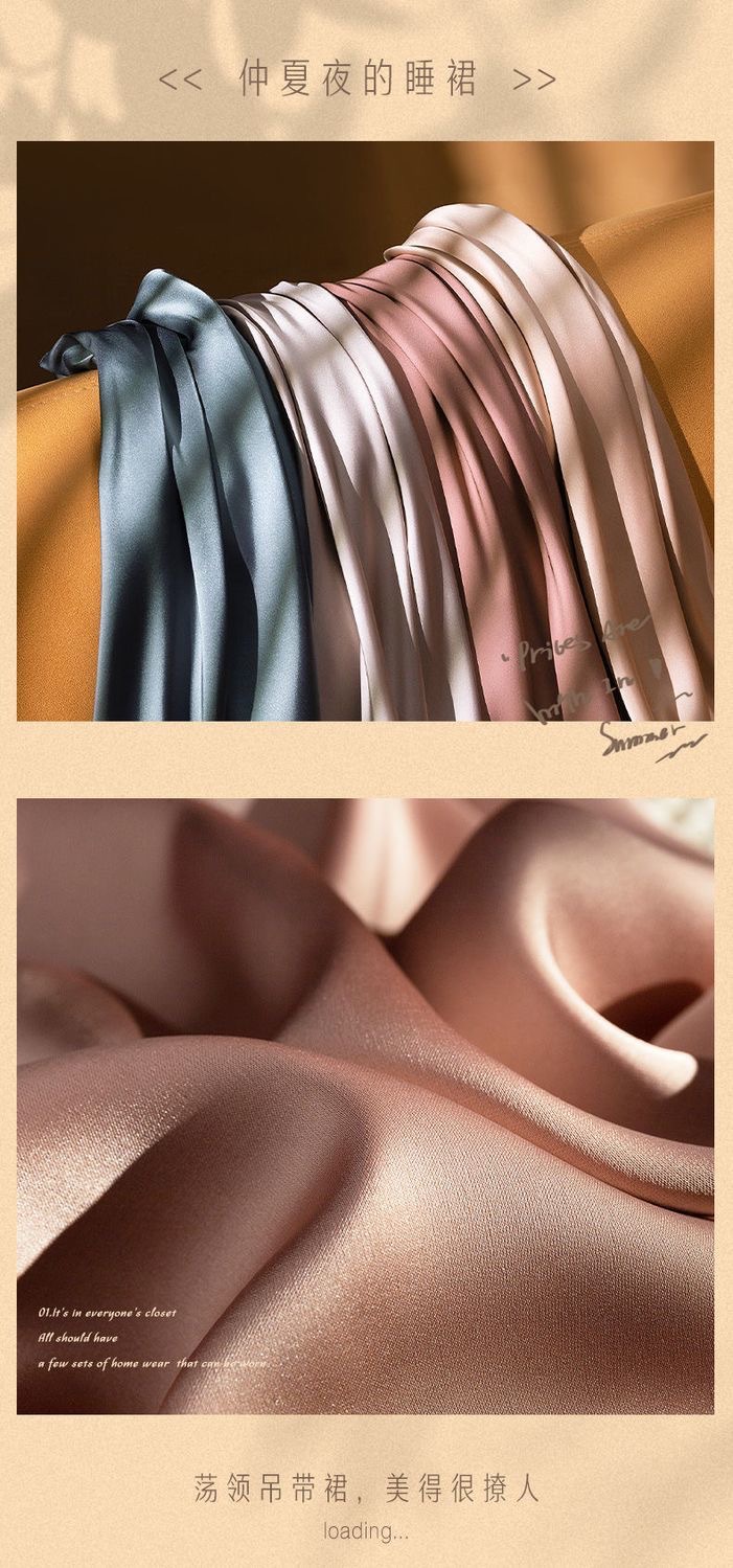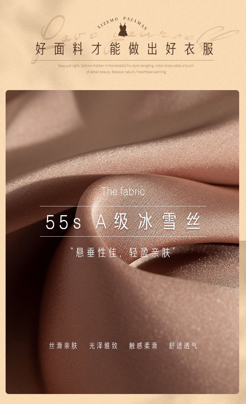 【显气质!超轻盈冰雪丝睡裙】丝滑亲肤,光泽雅致,触感柔滑,舒适透气,锻面丝绸冰丝睡衣女夏仿真吊带荡领家居服