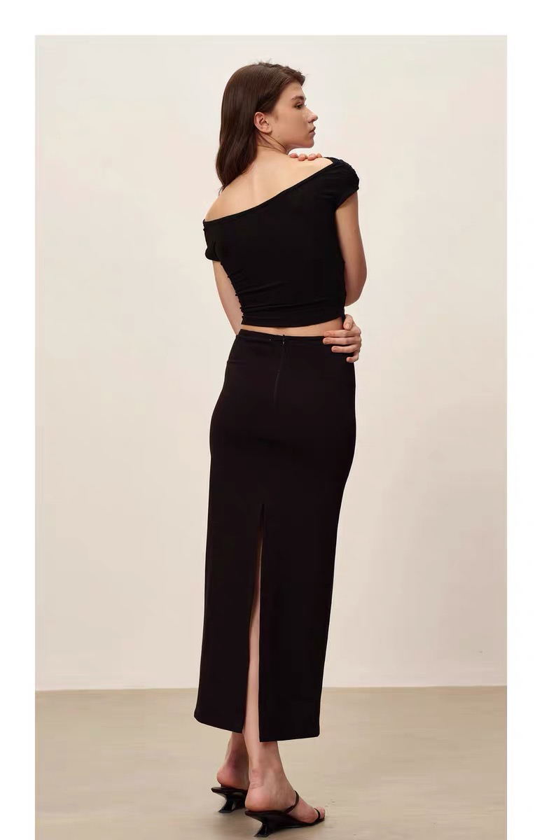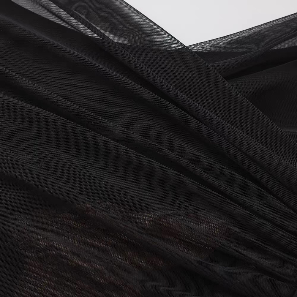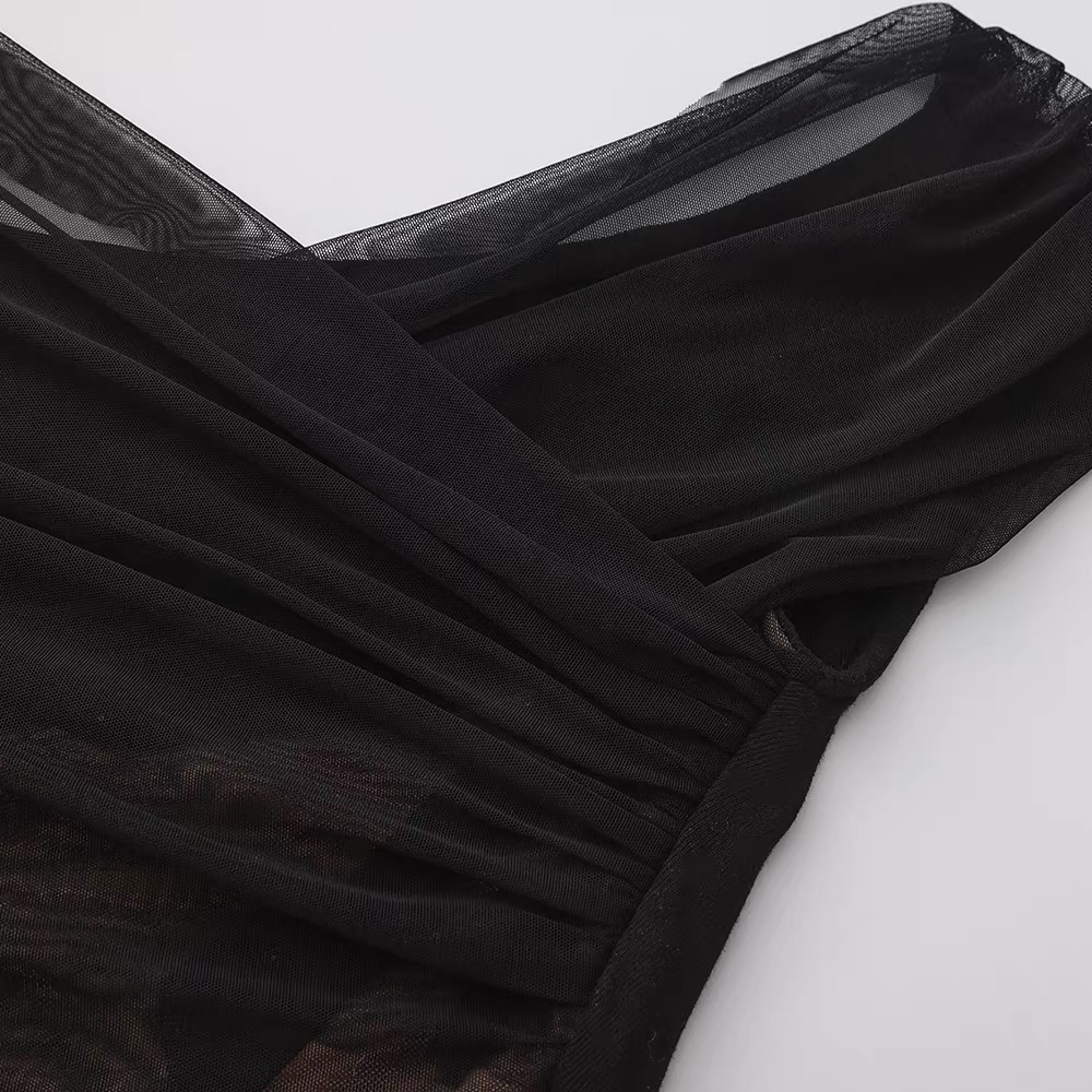SIJIA|黑色一字肩褶皱网纱T [ 黑SS2510 ]