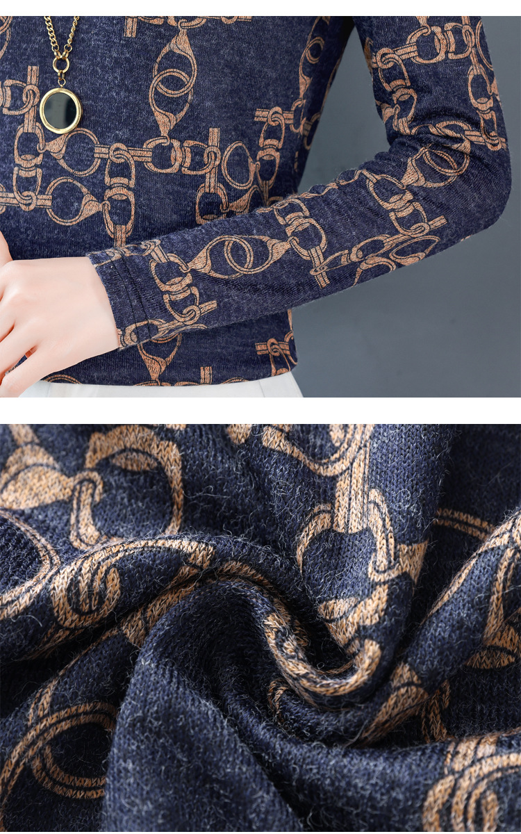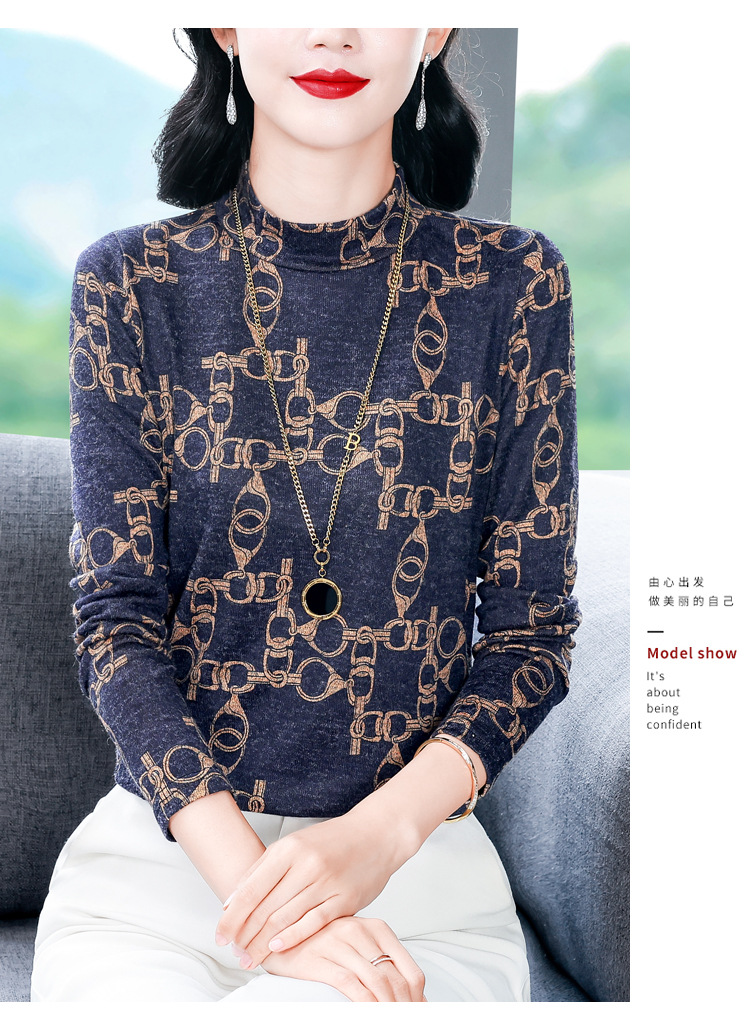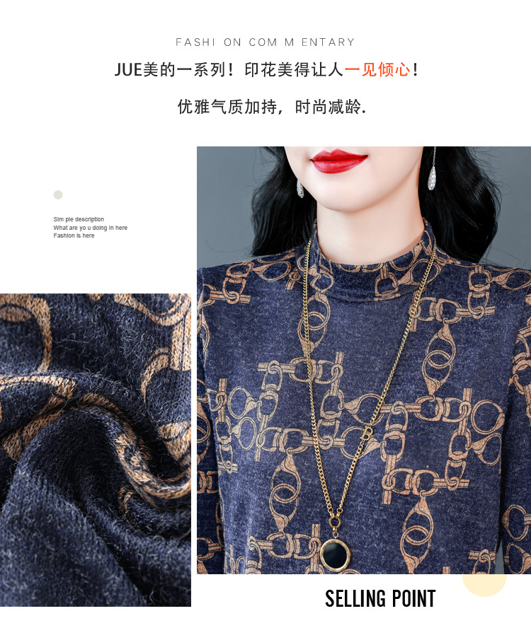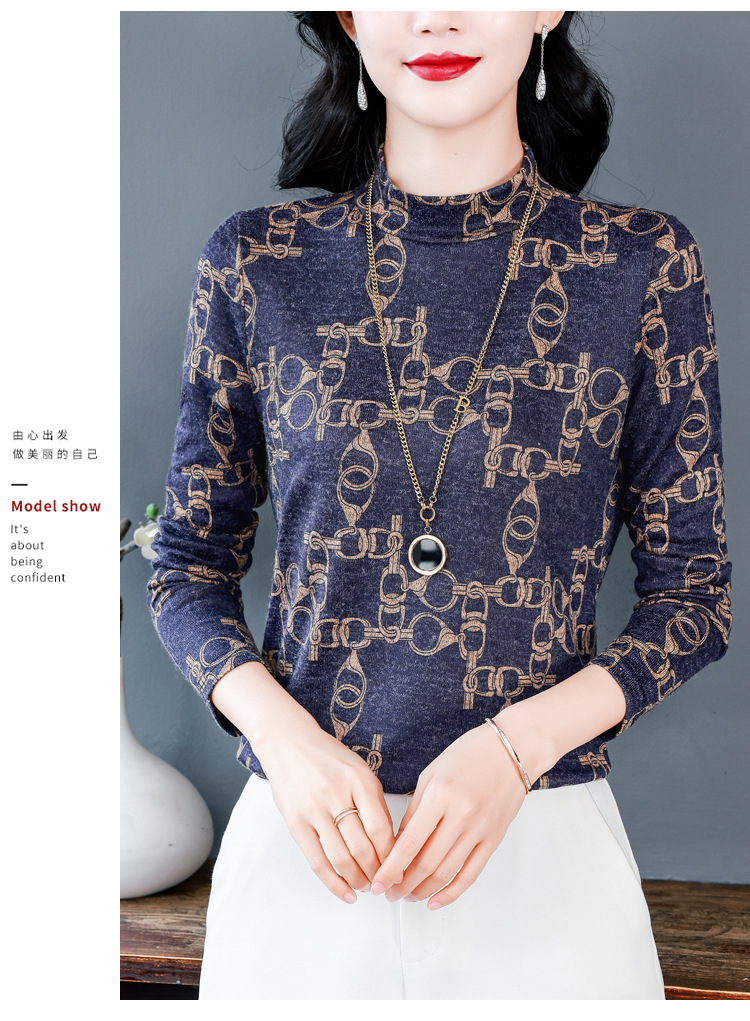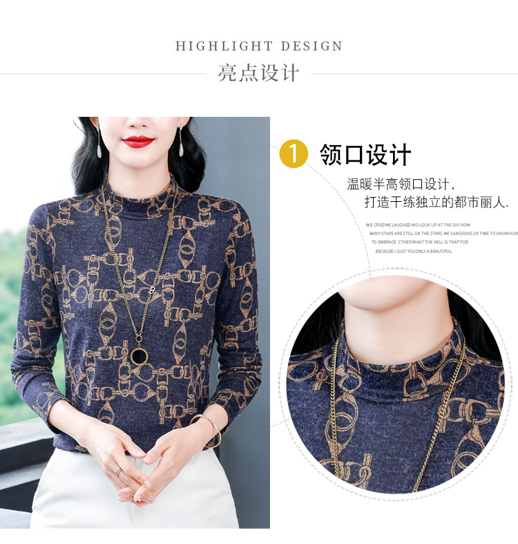 KQL 644G9238半高领长袖印花T恤上衣修身显瘦洋气小衫