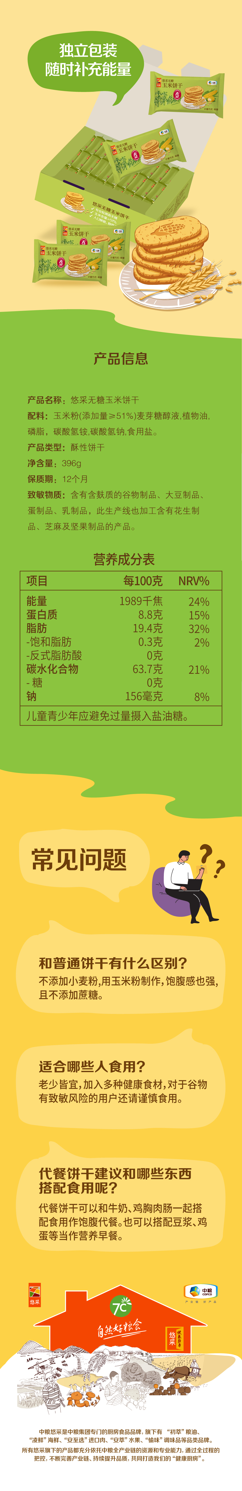 【抢购中!】中粮悠采无糖玉米饼396g 玉米添加量51% 可冲泡玉米糊 糖友老人孕妈可食