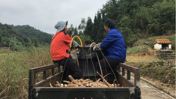 过去在集体时代,很多低矮的半山腰都种满了木薯、番薯,用作粮食,很多年纪大的人都有过吃木薯充饥的记忆。但是随着经济条件的好转,木薯的消费需求越来越低,木薯也变得越来越小众化,甚至村里的年轻一代不太认识木薯了,收获的木薯慢慢转为打粉后作为木薯淀粉使用。