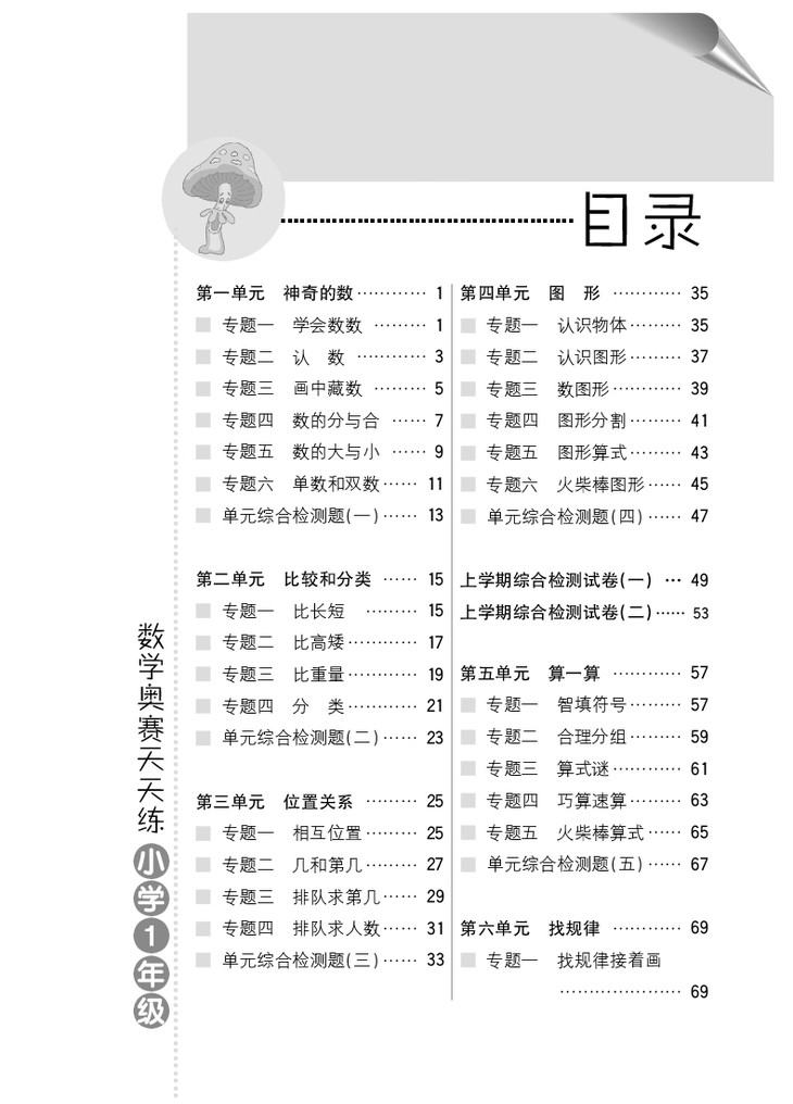 本书在第五版的基础上,进行了修订。基本体例不变,在例题的解析过程中更加注重解题方法的指引,并且有解题技巧总结。较难题目后面加了“提示”,让学生思考题目时有一个正确的方向。目录上把专题进行了归类,分单元呈现,每一单元后设单元综合检测题,上下学期结束各设2套综合检测试卷,以便学生、老师及家长检测自己、督促孩子。参考答案也更加细致周全。