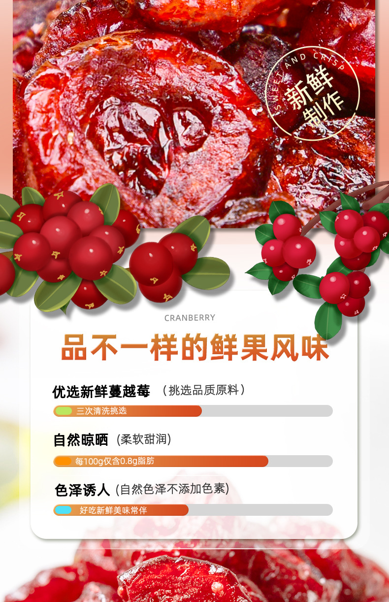【酸甜“红宝石”,当季鲜采】懂果嫲嫲蔓越莓干 500g散装烘焙原料果脯蜜饯 即食追剧休闲零食年货-QQ