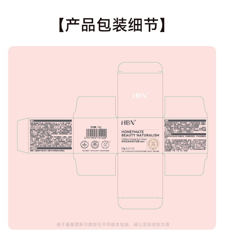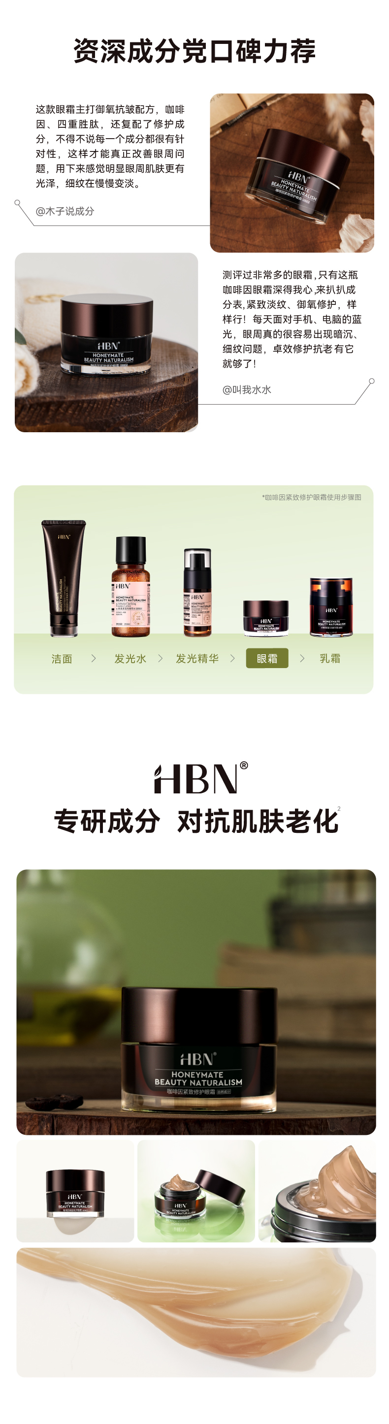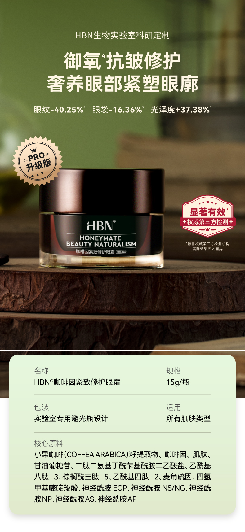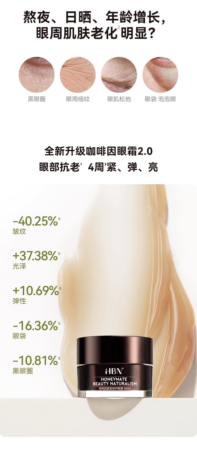 2025【咖啡因眼霜2.0】HBN 咖啡因紧致修护眼霜 一罐三效 黑眼圈眼纹呵护