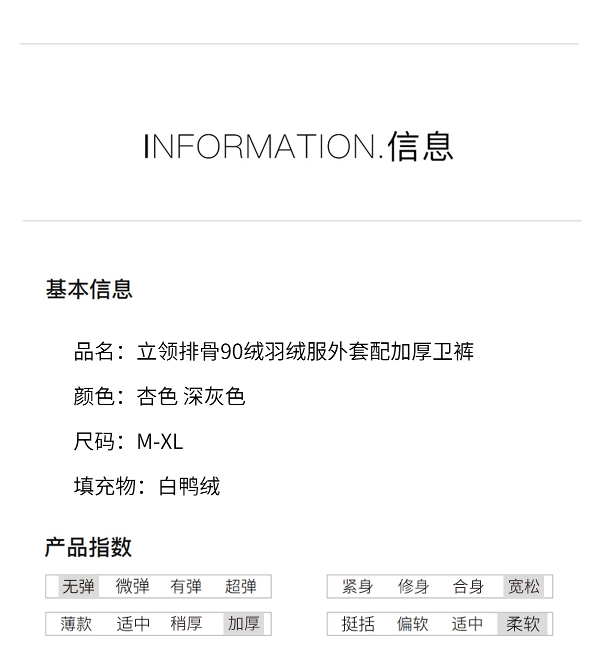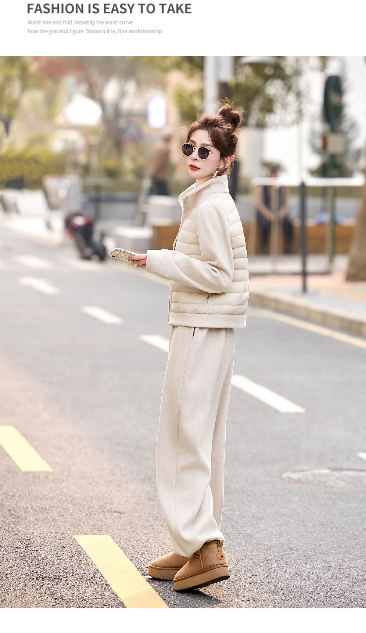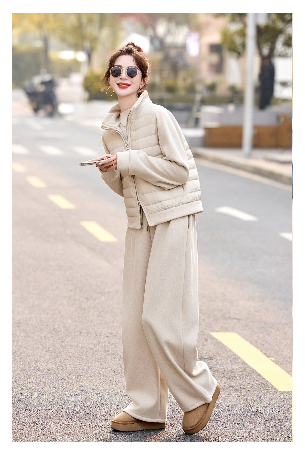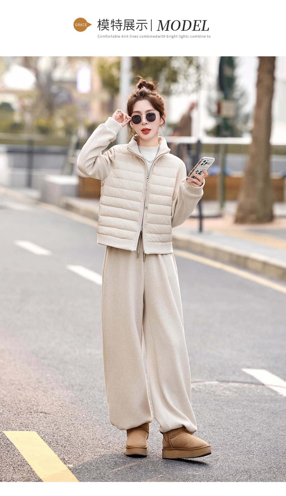韩版拼接立领排骨90绒羽绒服外套,配加厚松紧腰卫裤套装HR-YDYX9511